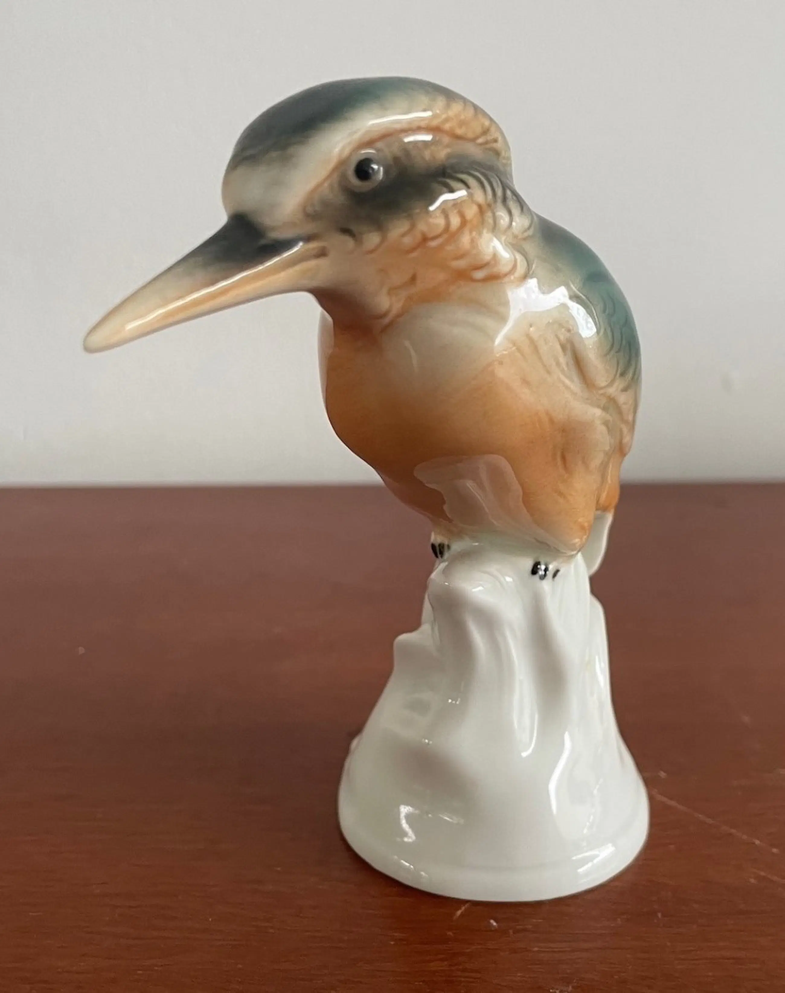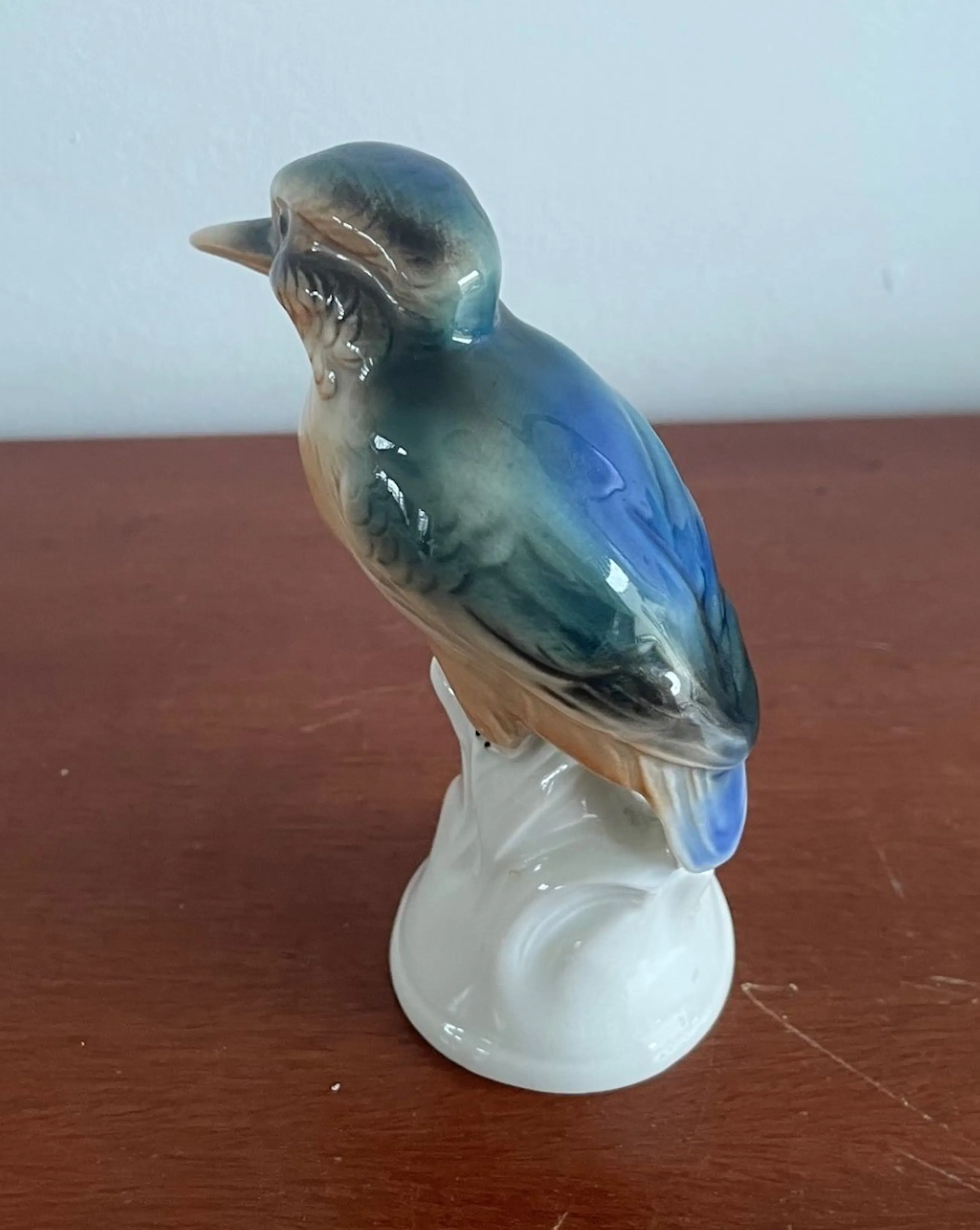 Porseleinen figuur van een IJsvogel model 2626 uitgevoerd bij de Duitse porseleinfabriek van Wagner & Apel uit Lippensdorf. In prima conditie. Gemerkt aan de onderzijde. In prima onbeschadigde conditie.