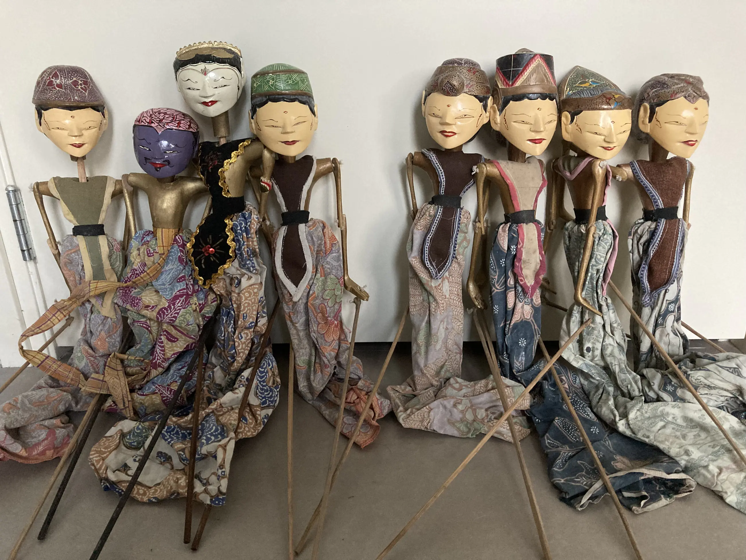 Wajong golek. Acht handgemaakte originele driedimensionale wajangpoppen uit Indonesië.