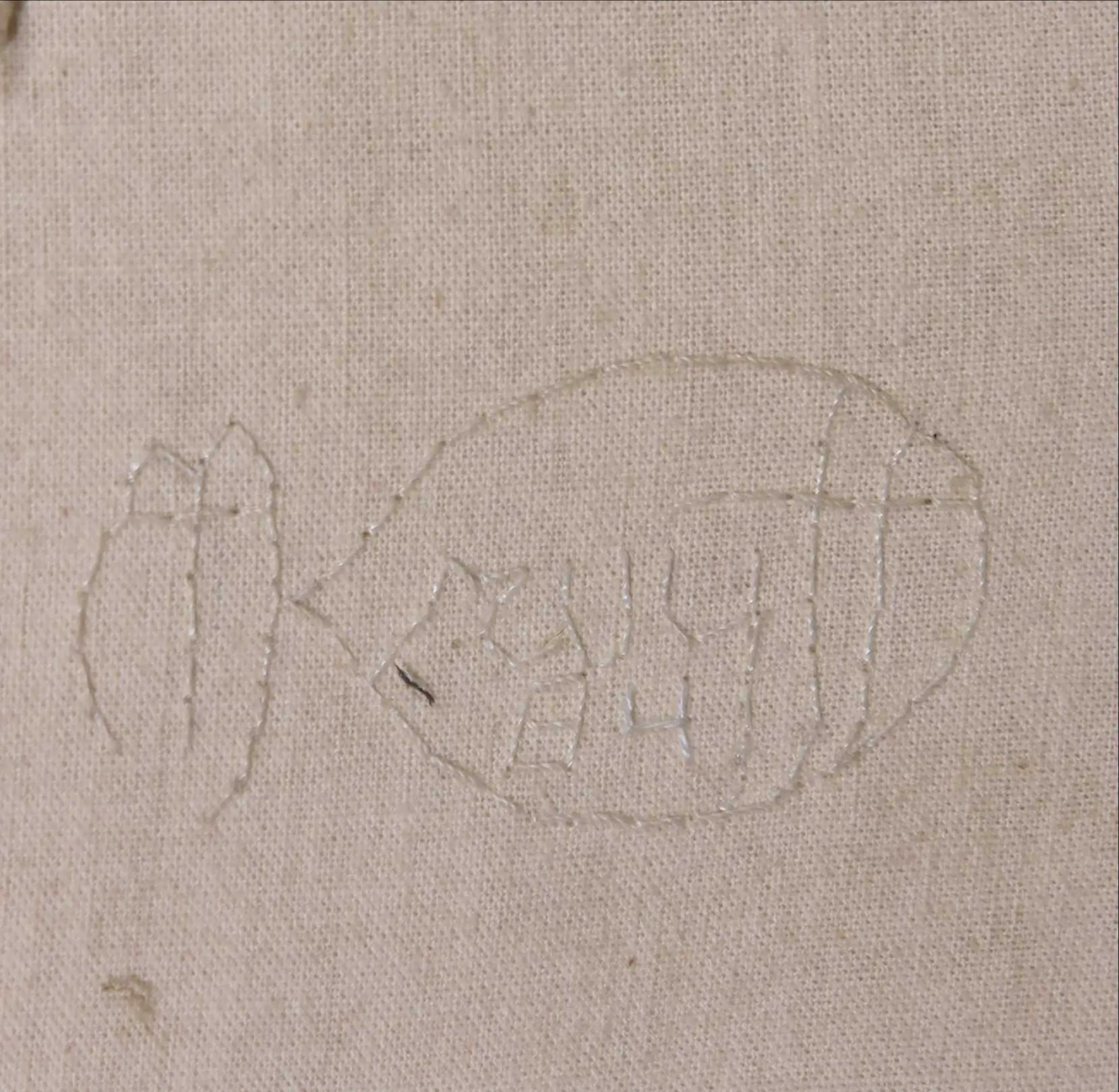 Wat vegen en vlekken in het omliggende witte raster. Omdat het textiel betreft zijn deze er wellicht uit te halen. | |
