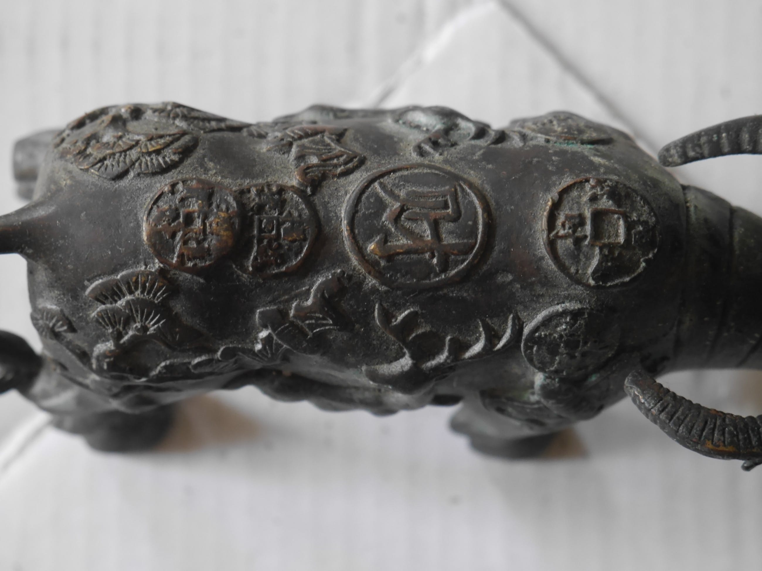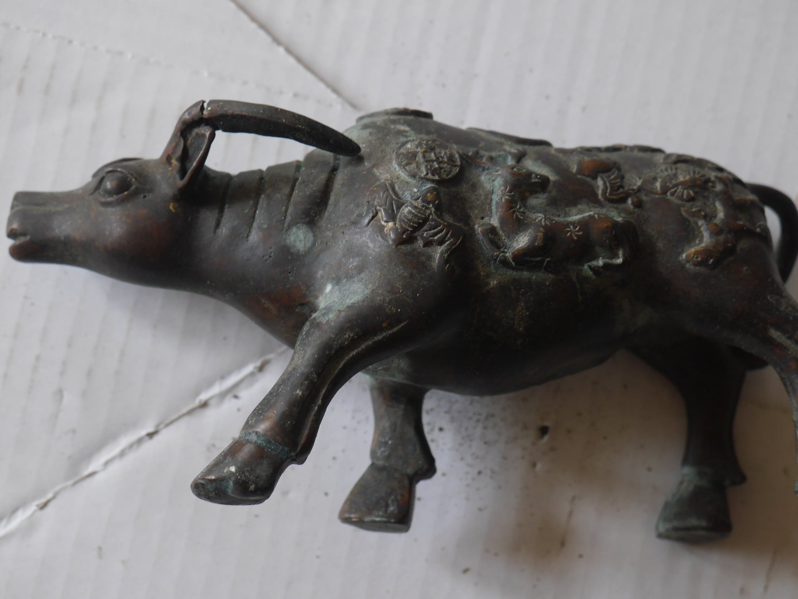 TIBETAANS beeldje van een WATERBUFFELveel dierenriem tekens op het beeld....kloosteratribuut