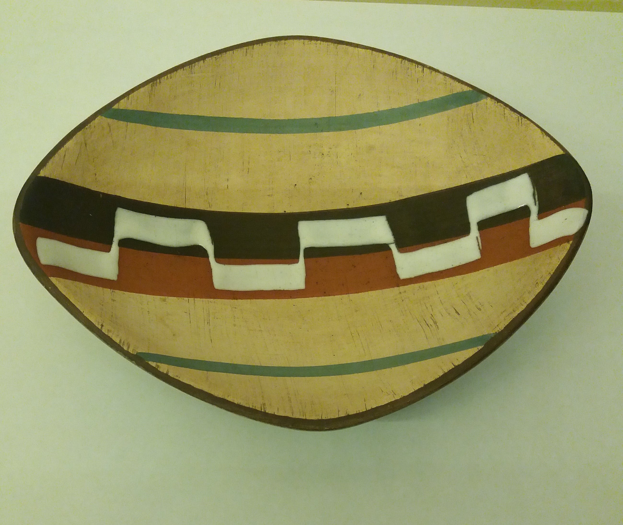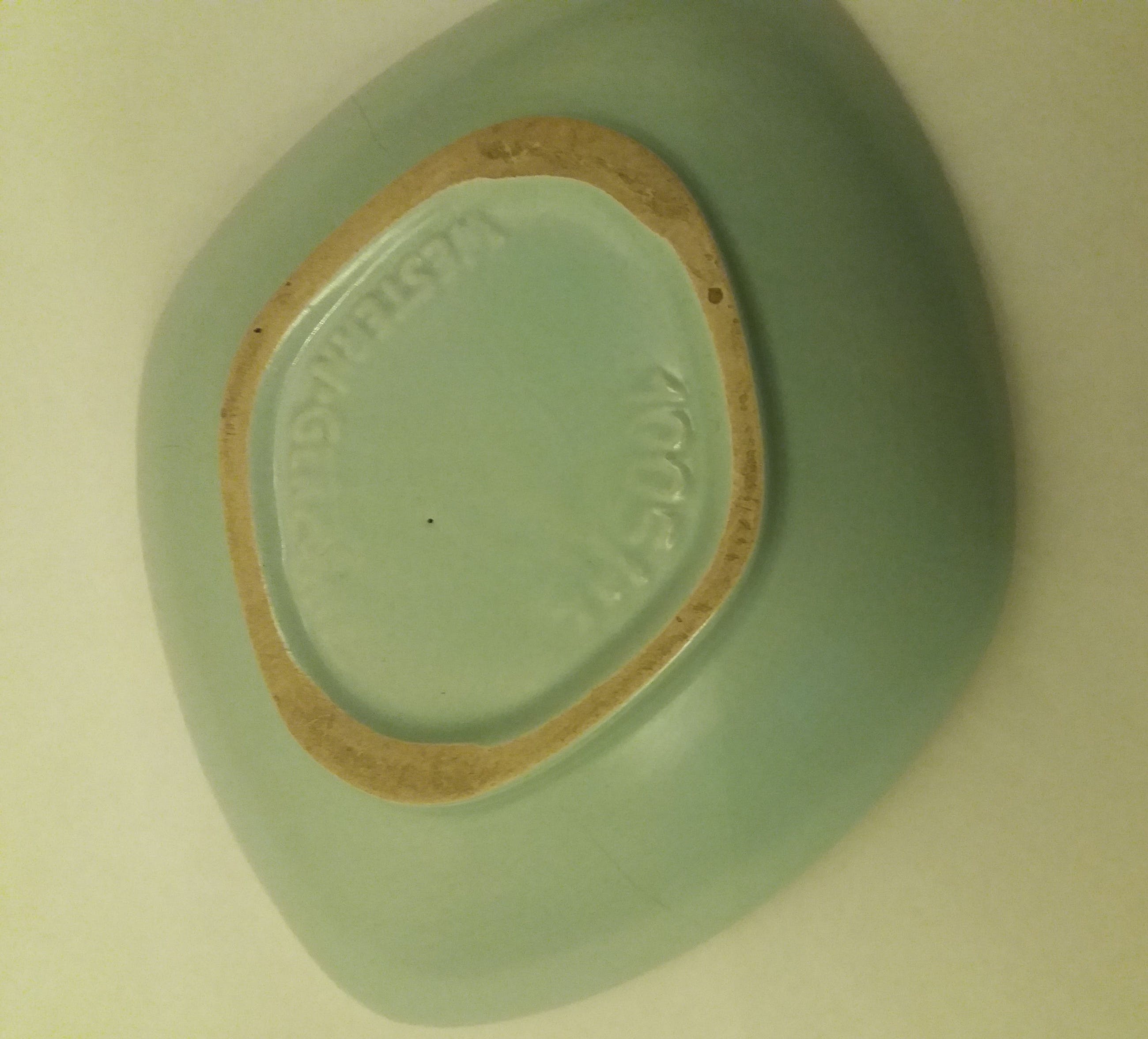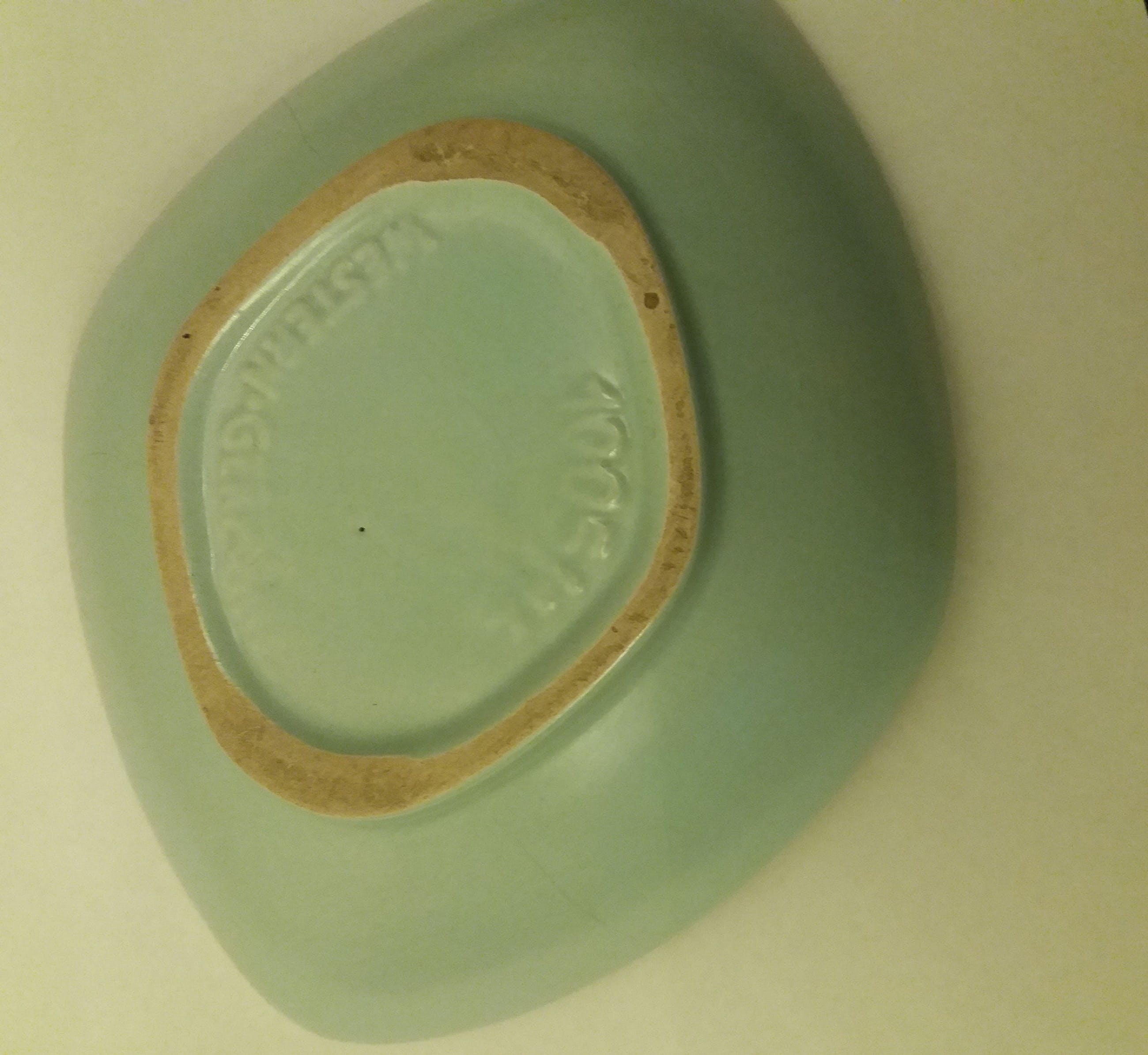 Western Germany schaaltje van de jaren 1950 - 1960 West-Duitsland. Kleur Beige - zwart - terracotta - wit met groene strepen en half eeuw moderne decoratie van lijnen en gekleurde vormen . Blauw mat glaze aan de onderkant . Gemarkeerd op de base 1005- en nog iets, kleine haarscheurtjes aan de onderkant maar niet doorheen ,word goed verpakt voor verzending