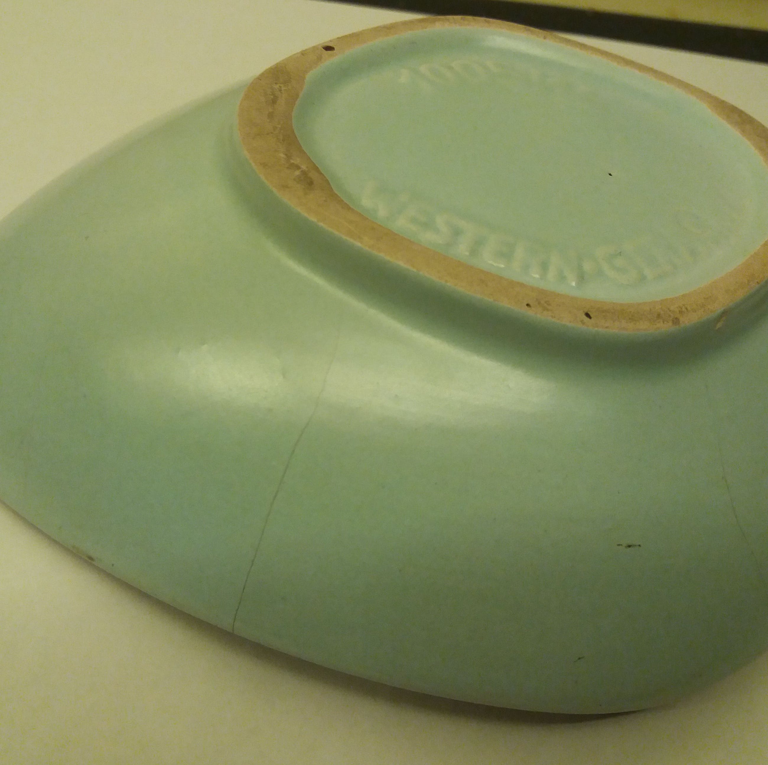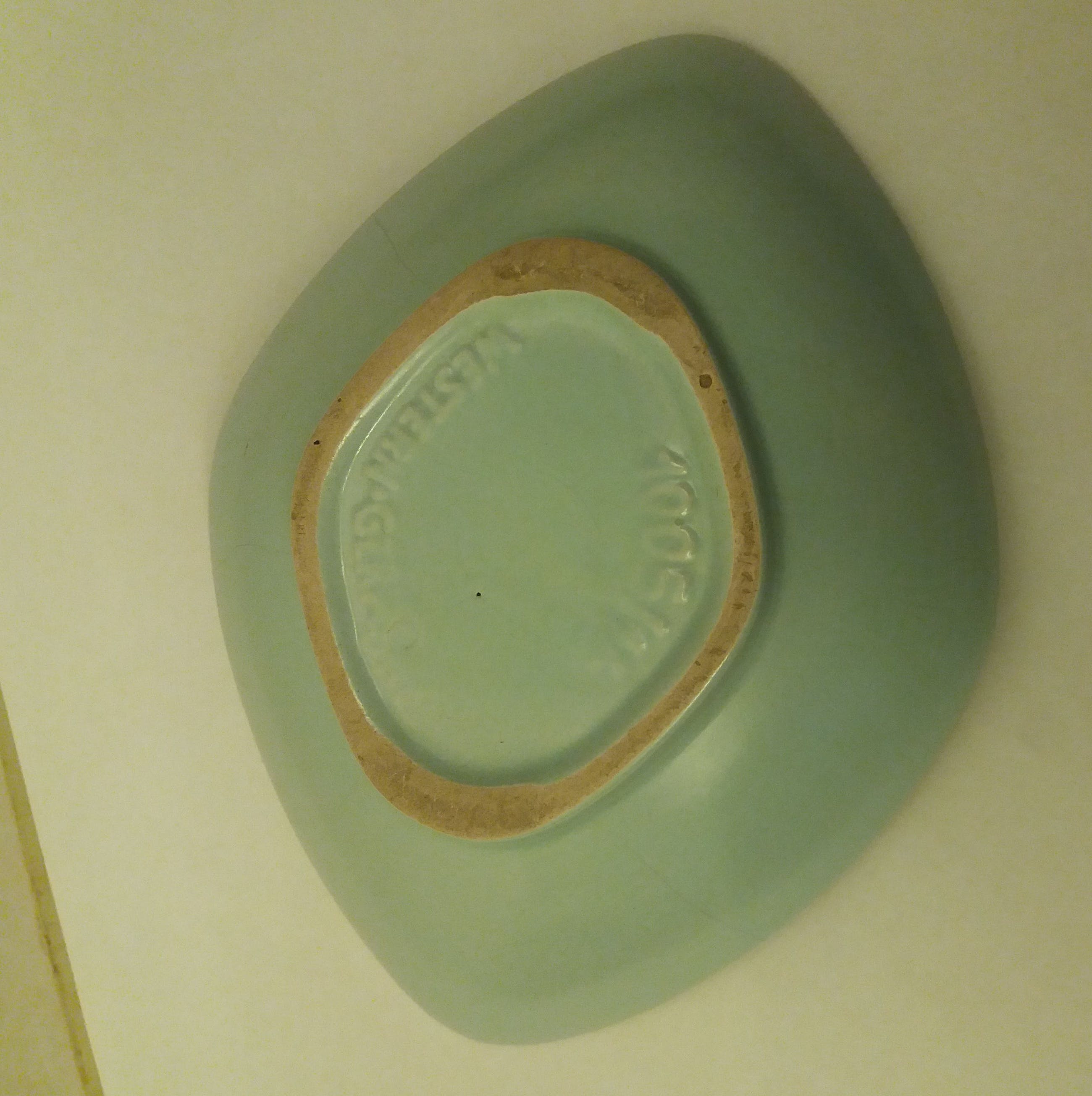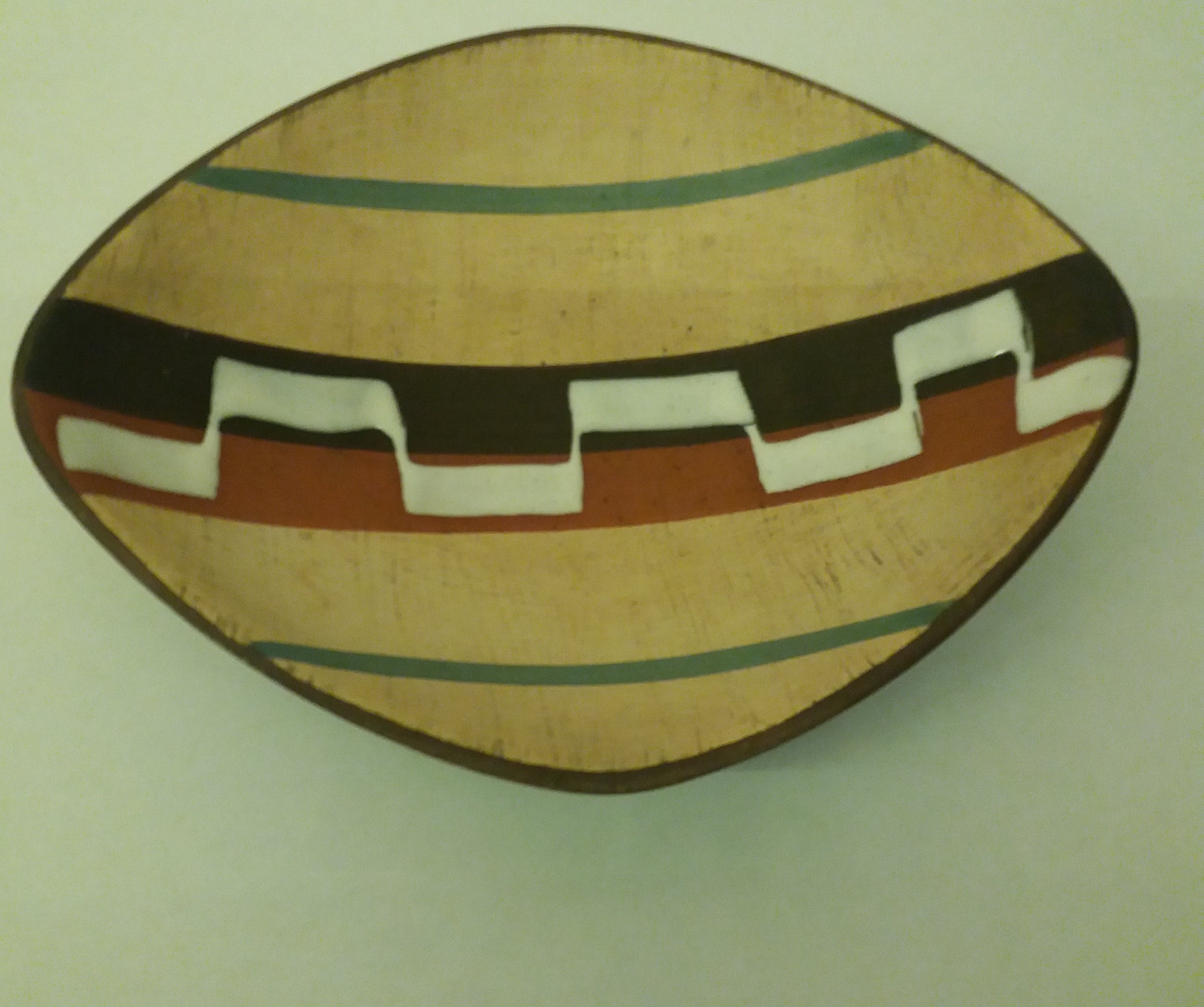 Western Germany schaaltje van de jaren 1950 - 1960 West-Duitsland. Kleur Beige - zwart - terracotta - wit met groene strepen en half eeuw moderne decoratie van lijnen en gekleurde vormen . Blauw mat glaze aan de onderkant . Gemarkeerd op de base 1005- en nog iets, kleine haarscheurtjes aan de onderkant maar niet doorheen ,word goed verpakt voor verzending