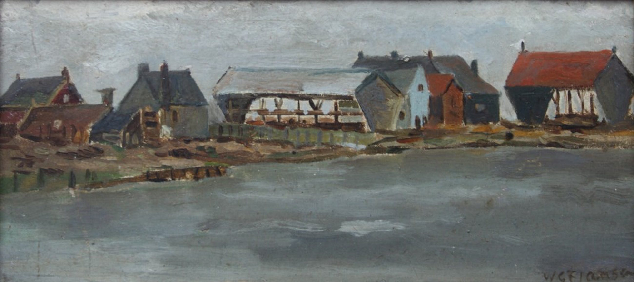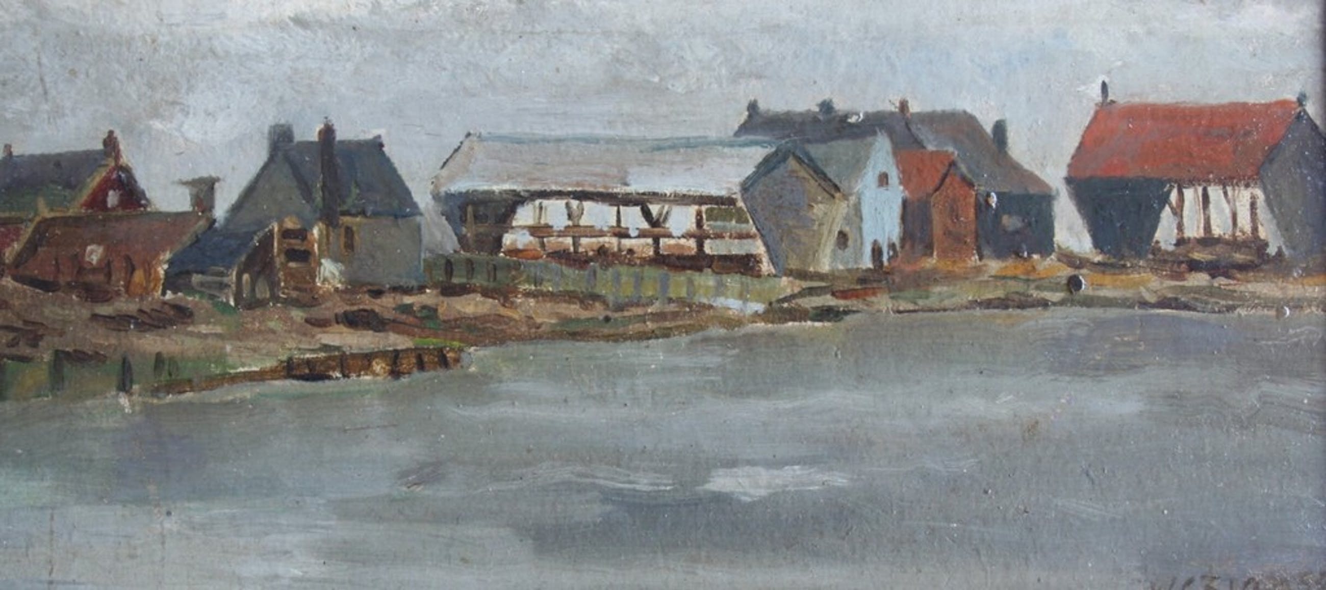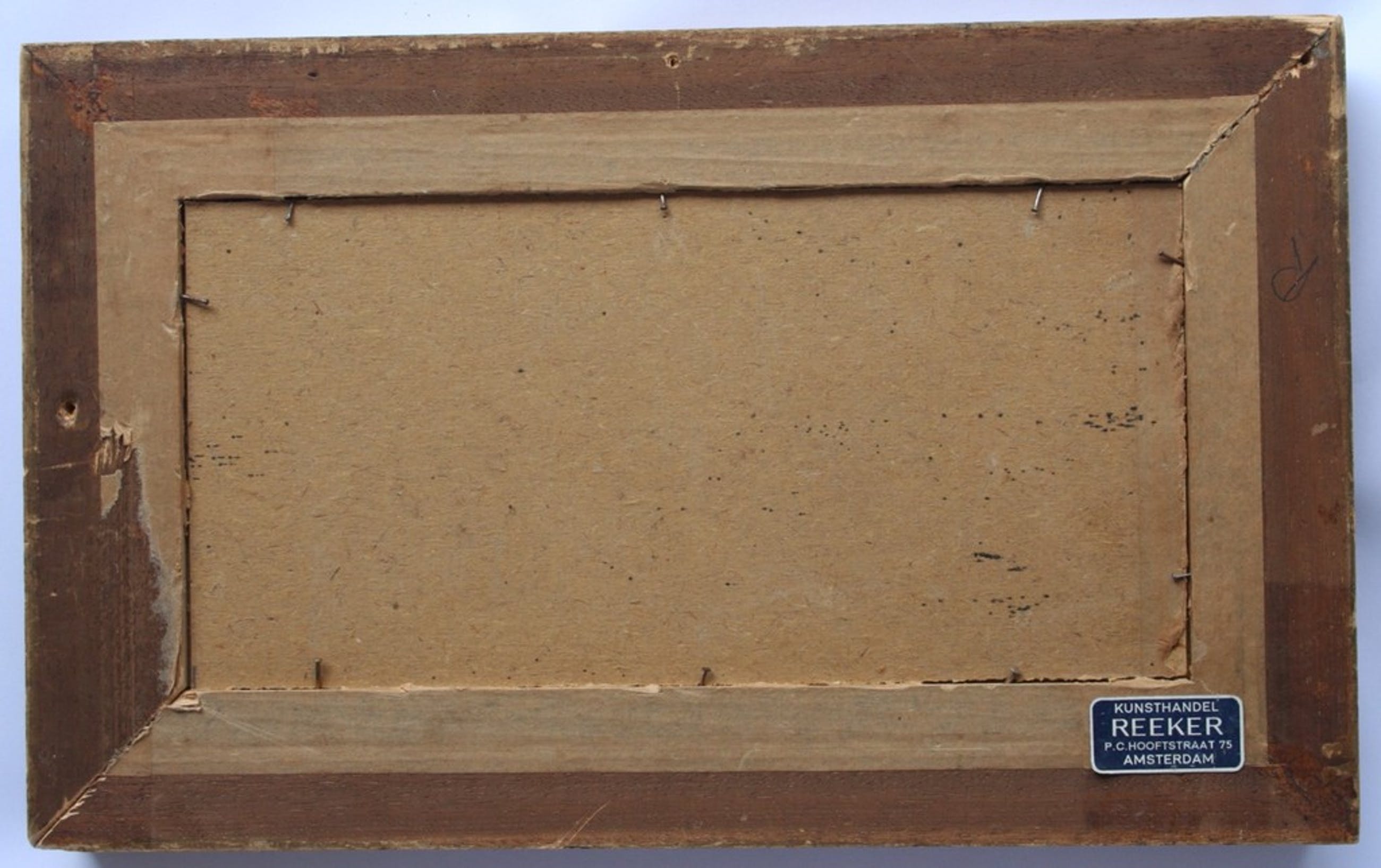 Klein impressionistisch schilderij in een houten lijst. Gesigneerd W.G.F. Jansen rechtsonder. Afmeting 26 bij 13 cm. met lijst 34,5 bij 21 cm.