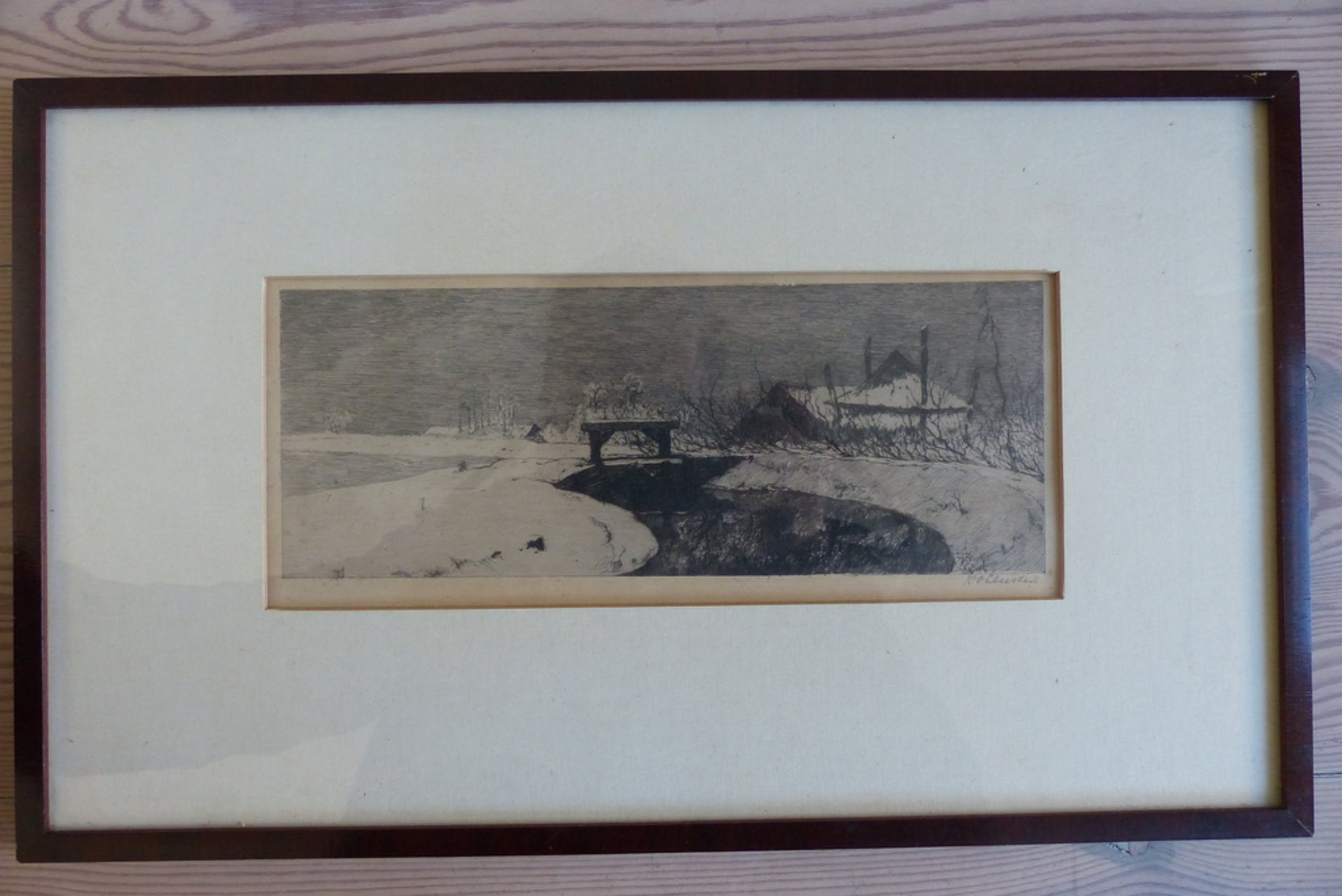 Afmetingen: Ets 26 x 10, passe partout 27 x 11 en Eikenhouten lijst 44 x 26,4 cm