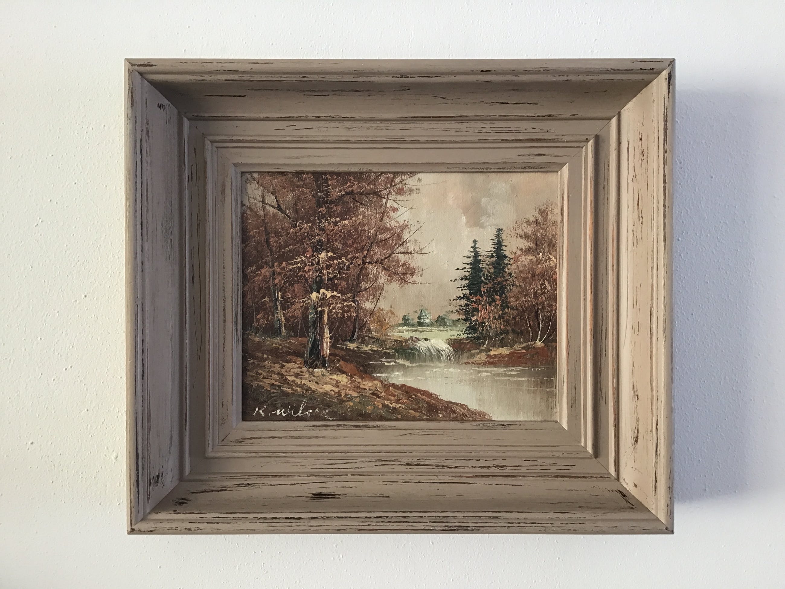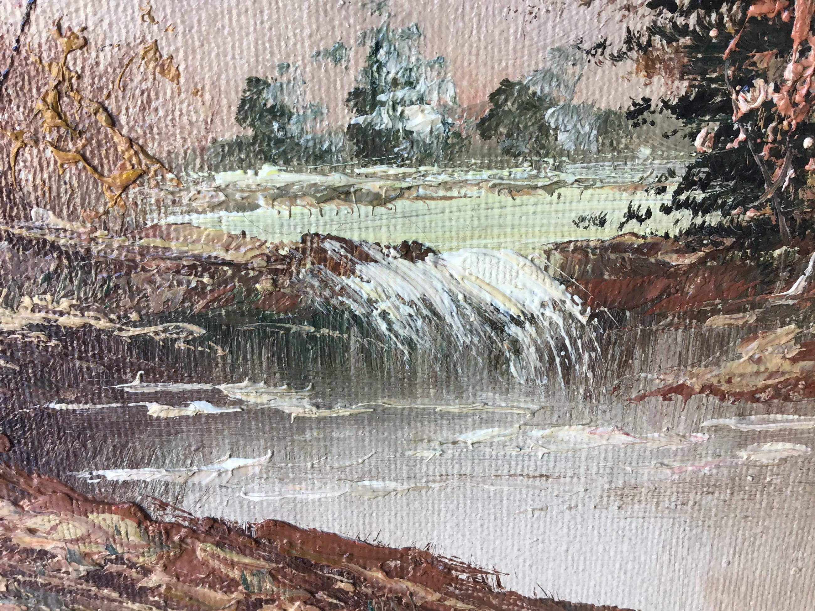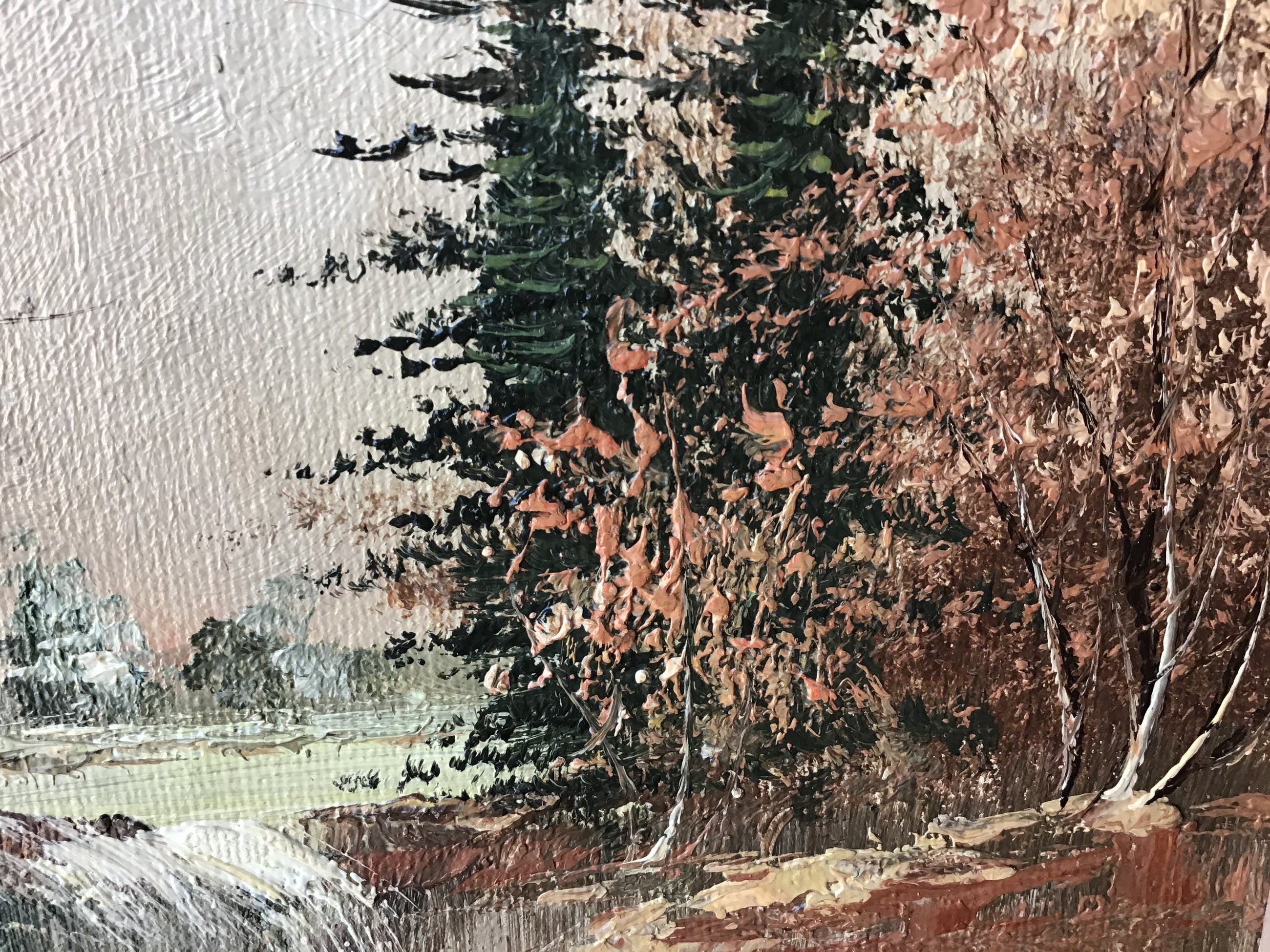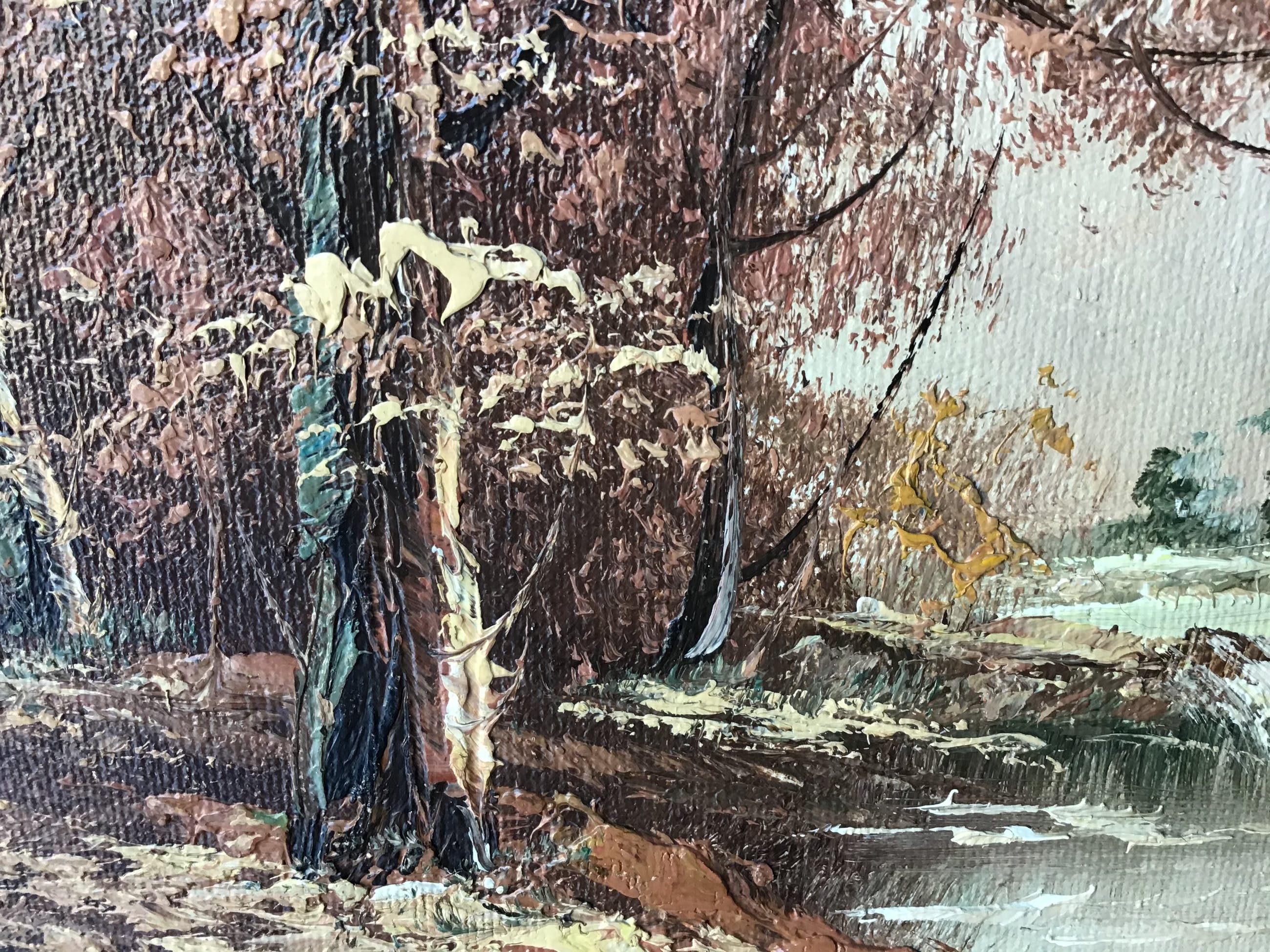 Boslandschap met een stroomversnellinkje bij winter. Linksonder gesigneerd. Jaren 80 van de vorige eeuw. In prima conditie.
