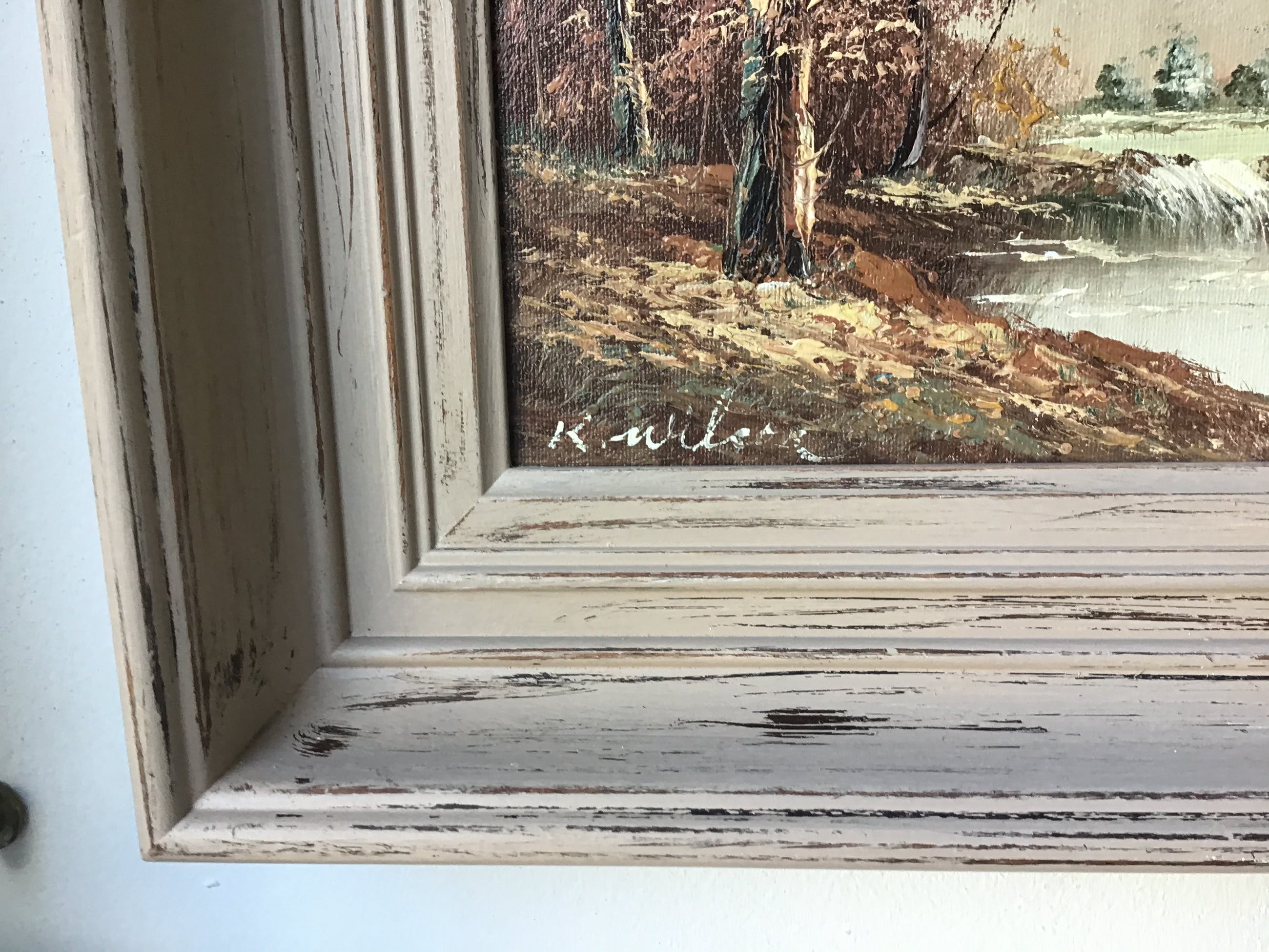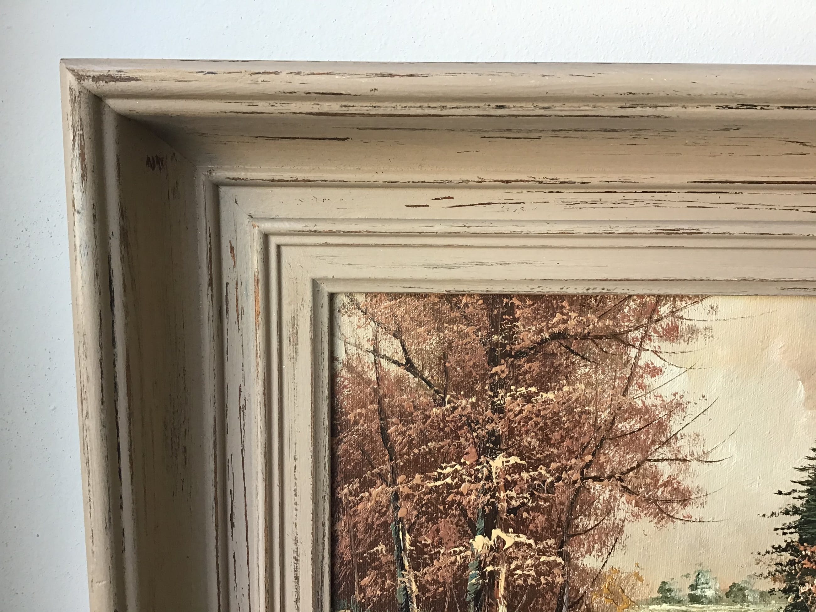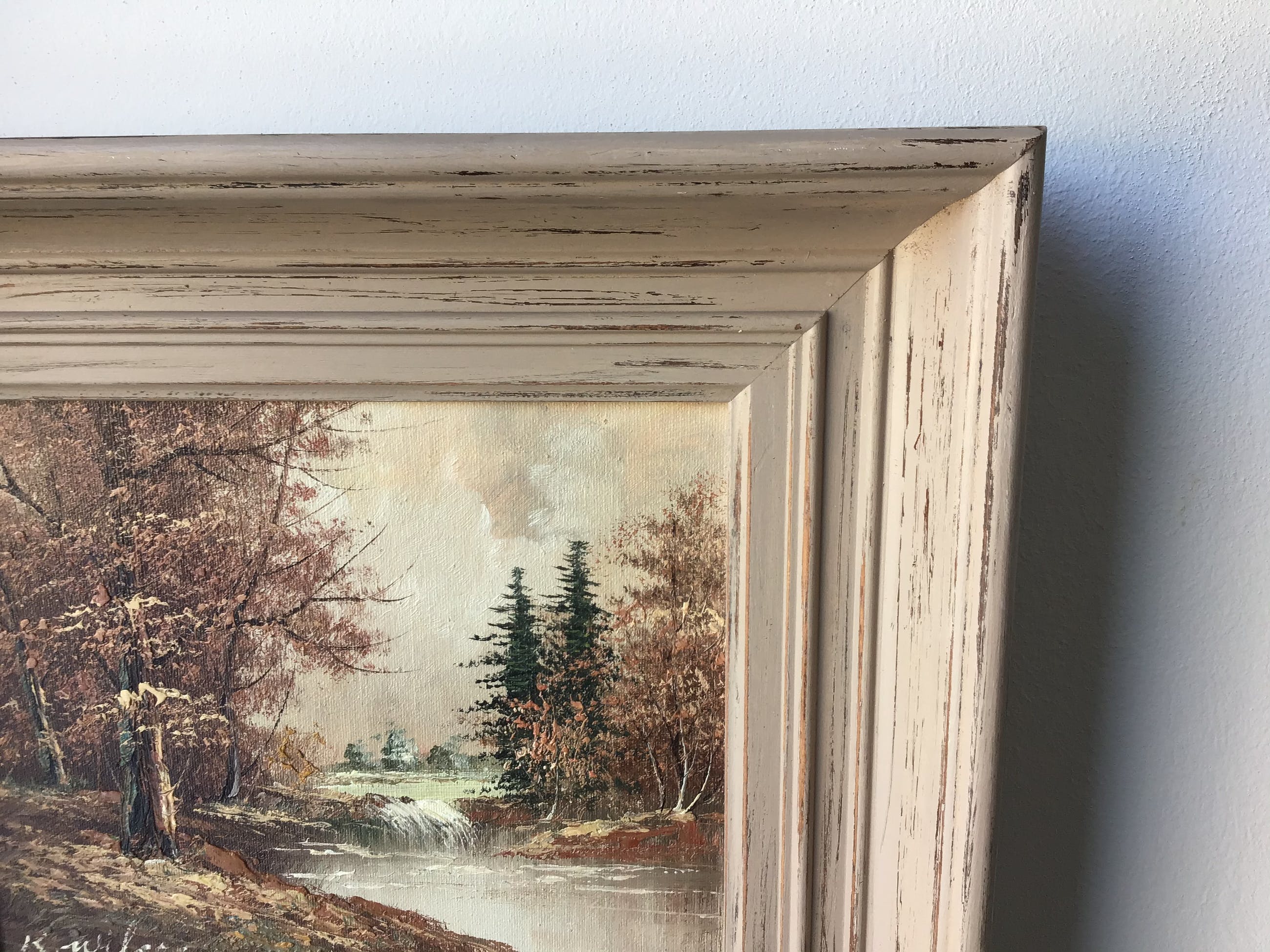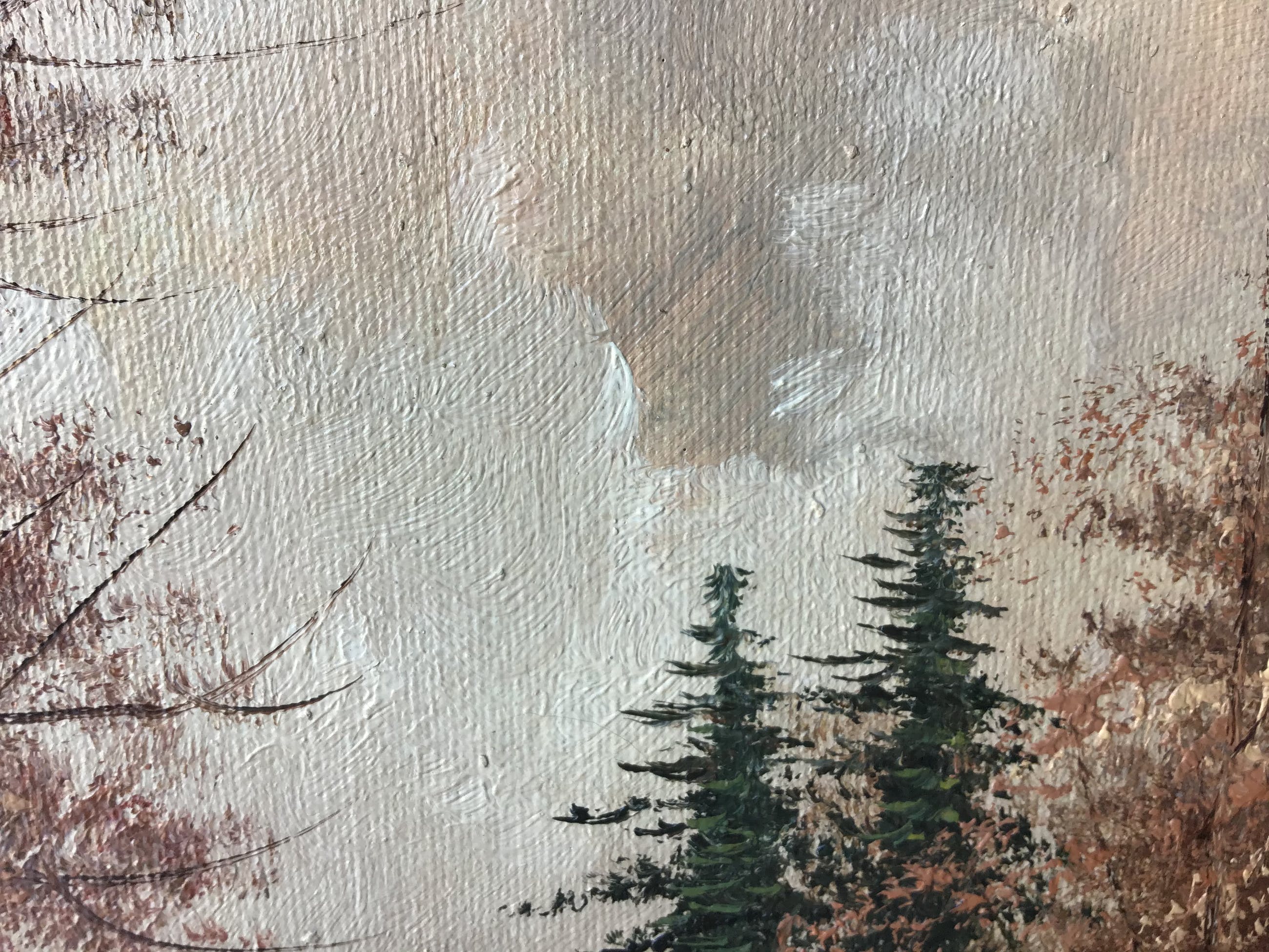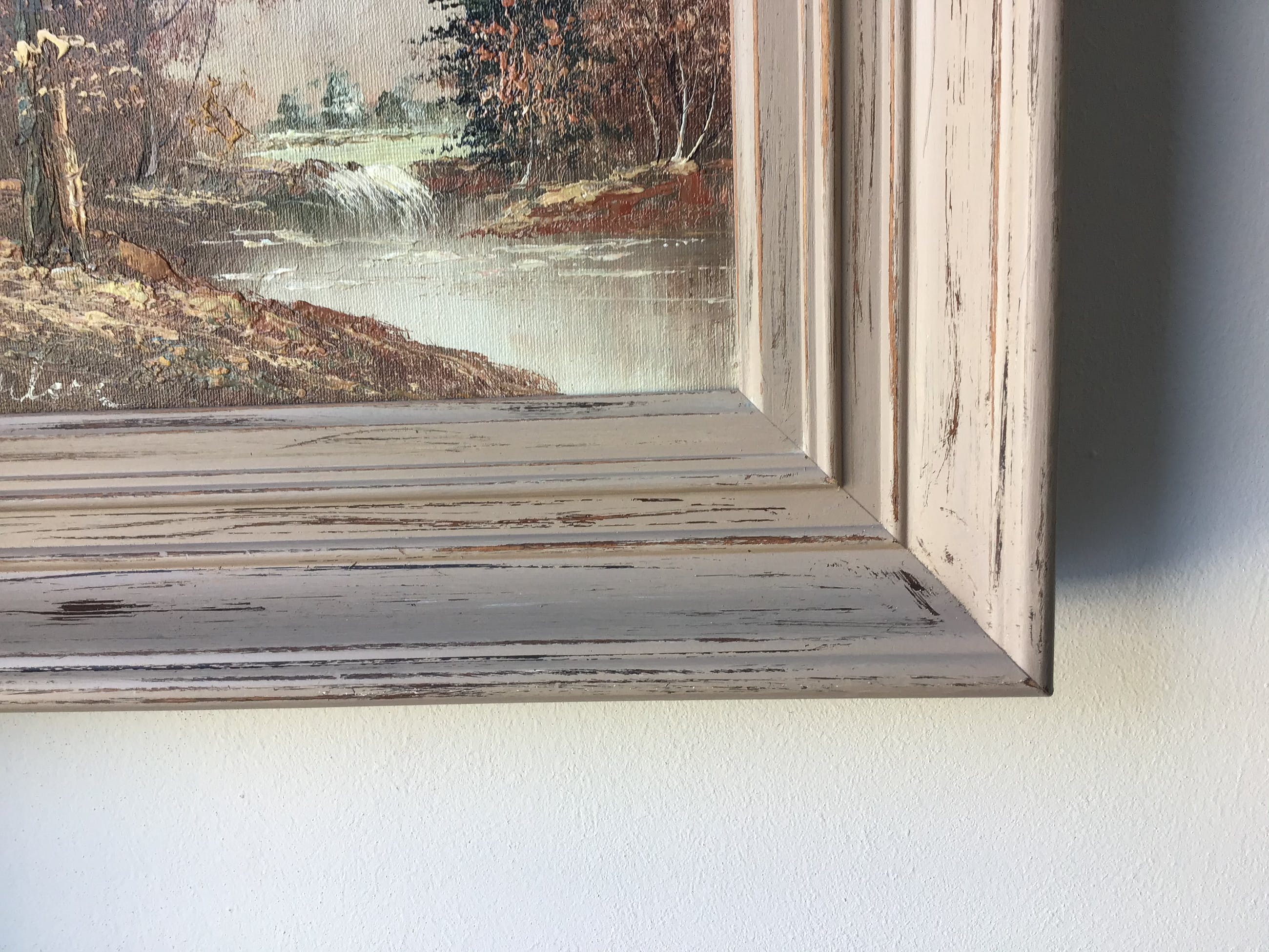 Boslandschap met een stroomversnellinkje bij winter. Linksonder gesigneerd. Jaren 80 van de vorige eeuw. In prima conditie.