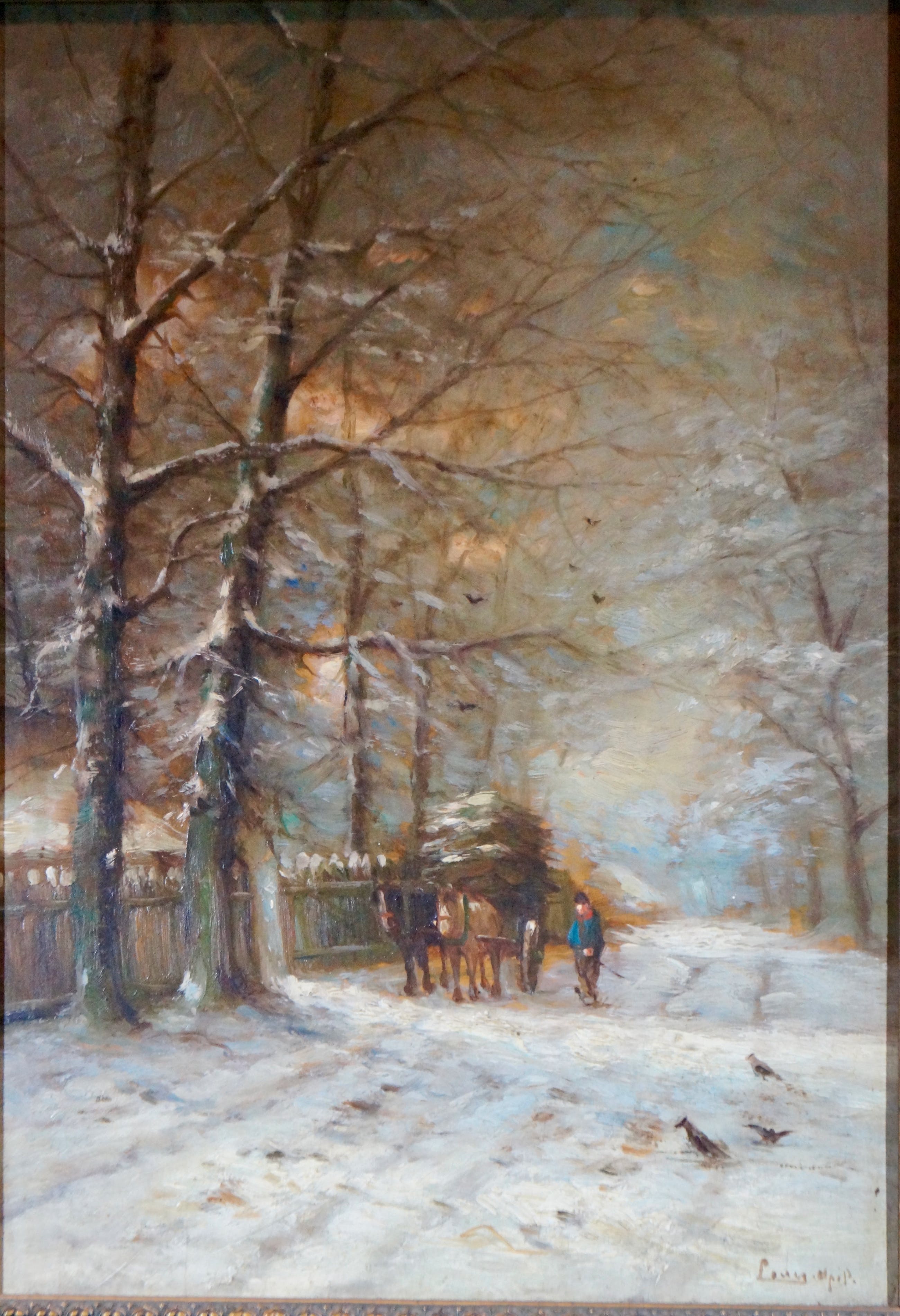 Onbekend - winter landschap met boerenwagen - Verkocht
