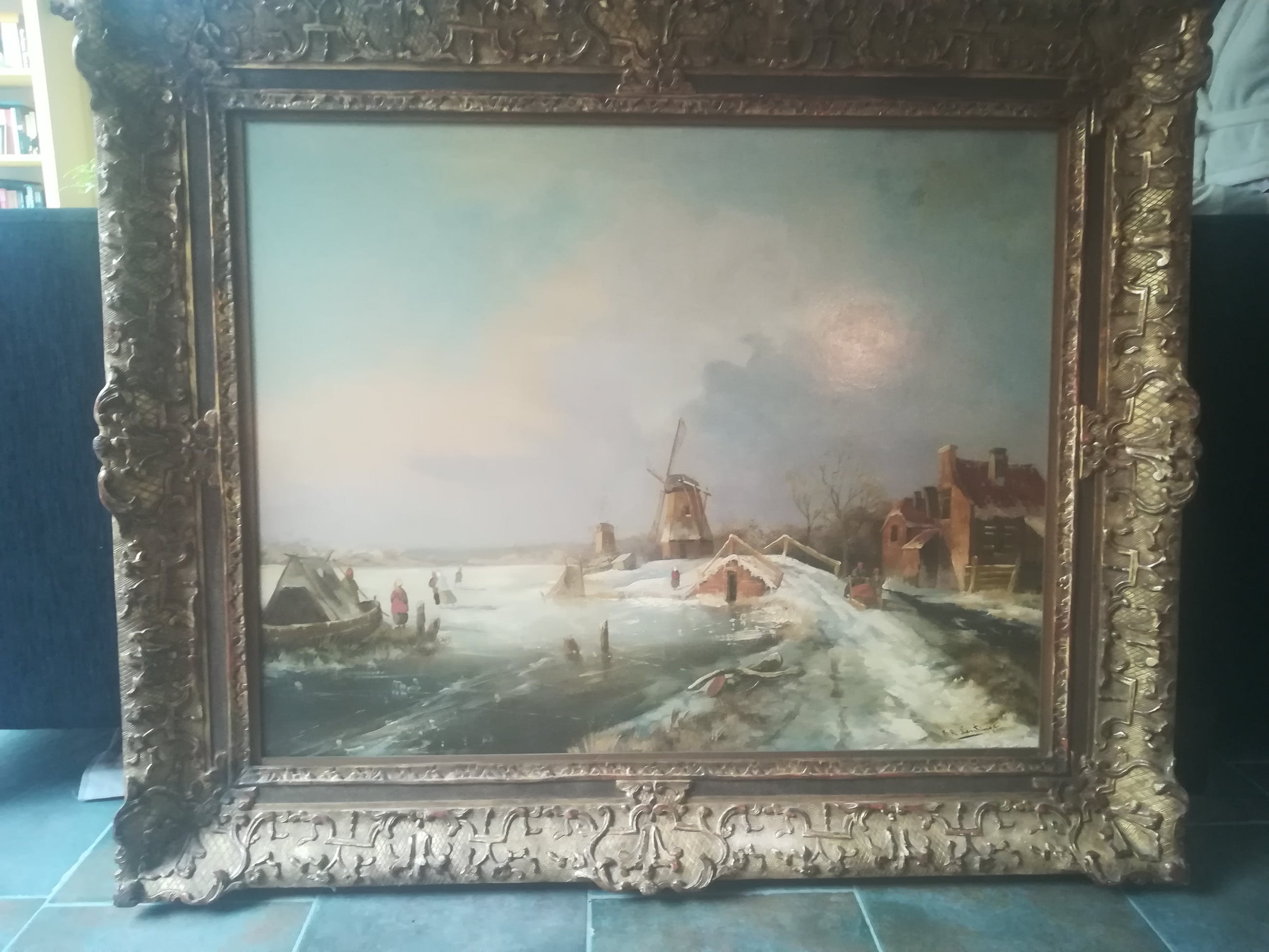Onbekende schilder. Waarschijnlijk Lantinga of Lkentiinga. Ook waarschijnlijk een winterlandschap van de molen " de Vlijt" te Meppel.