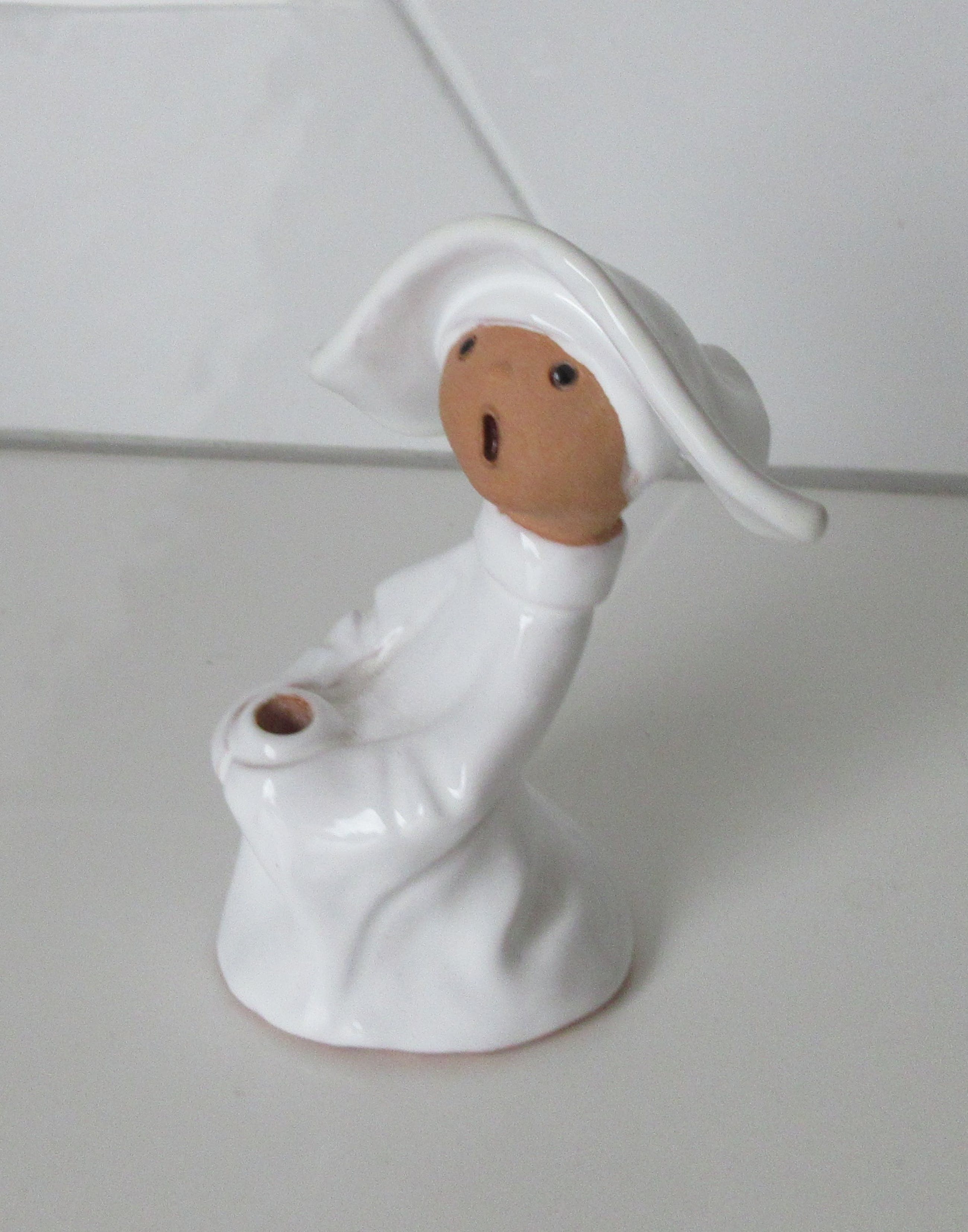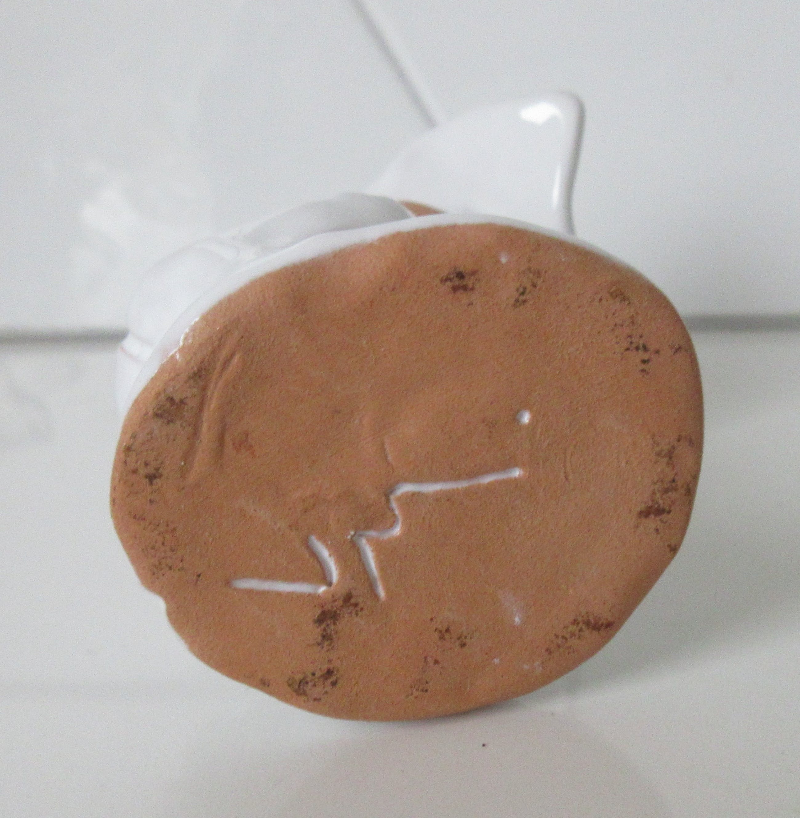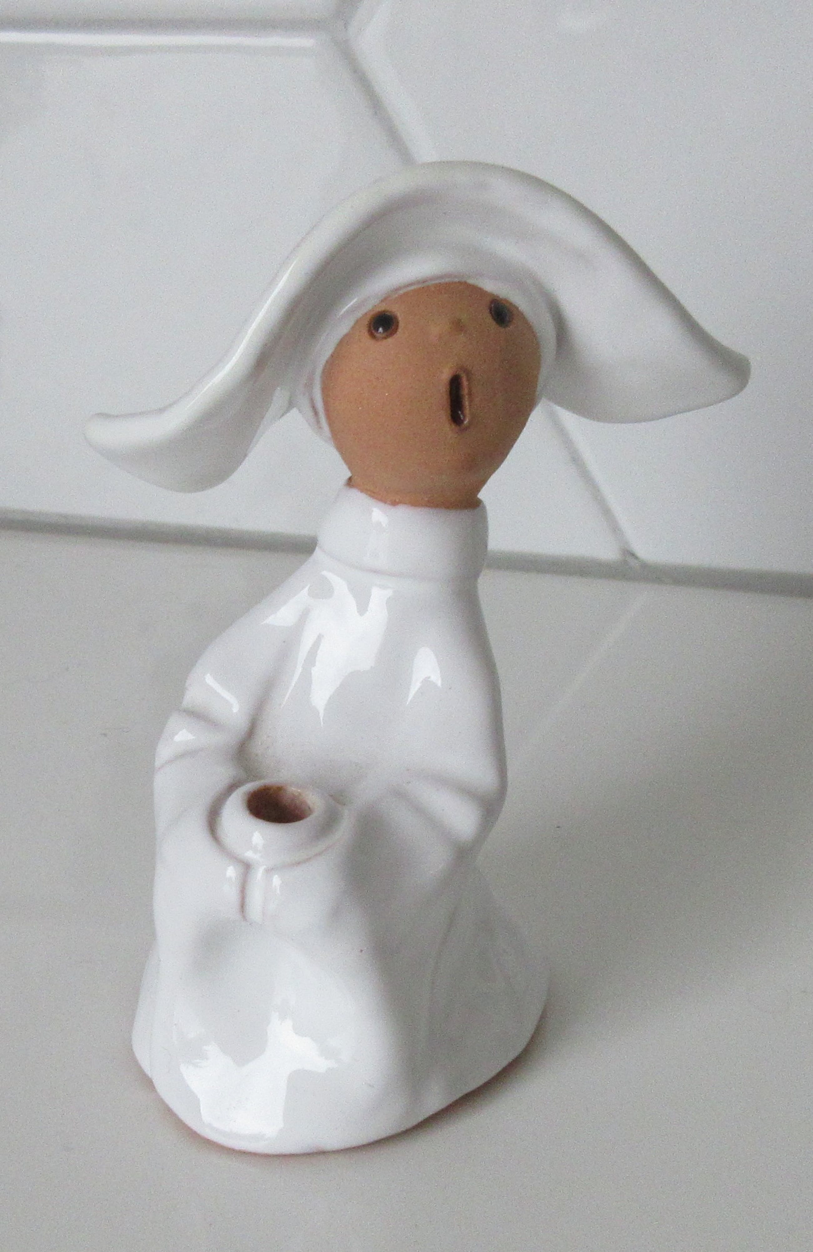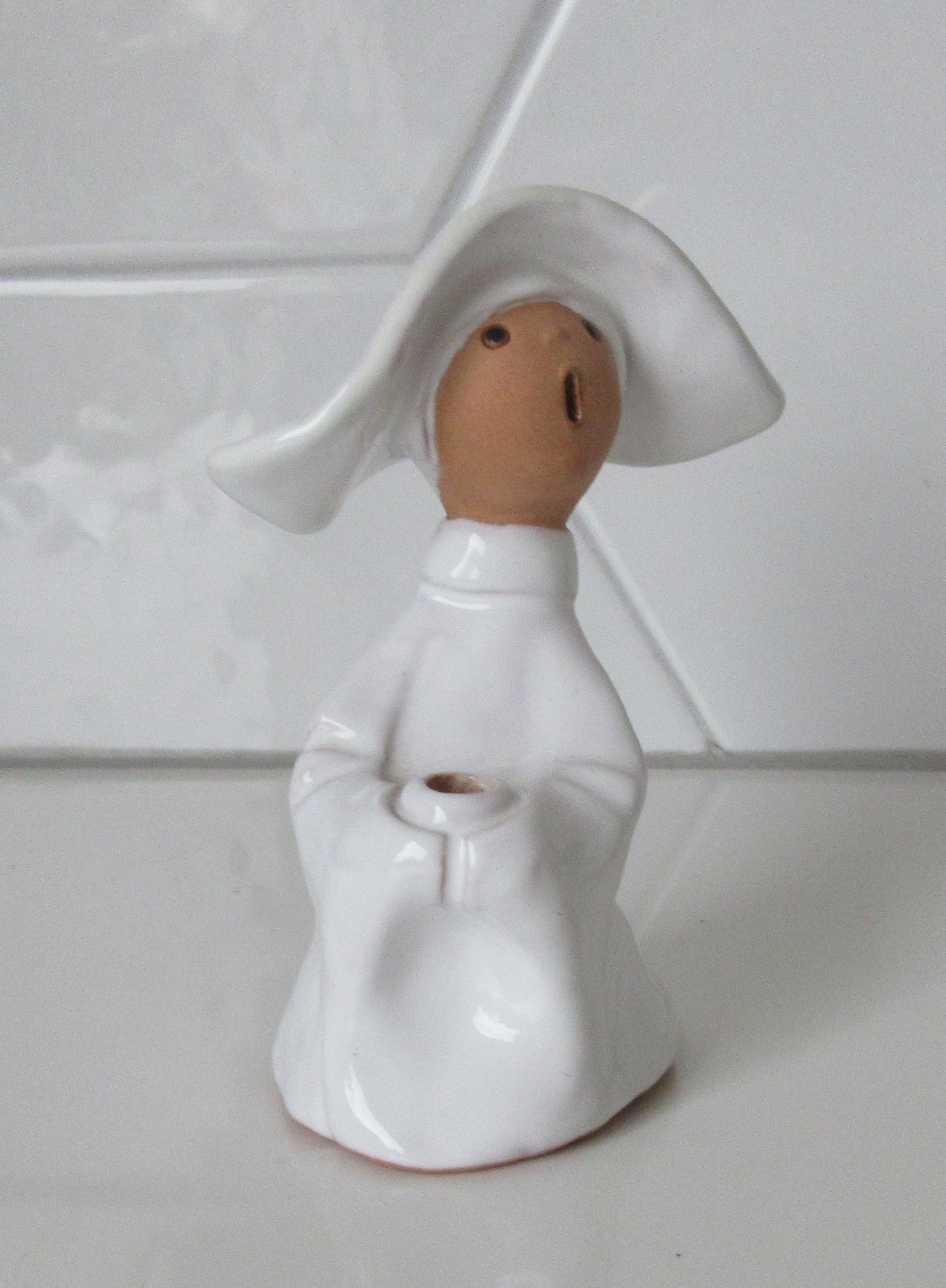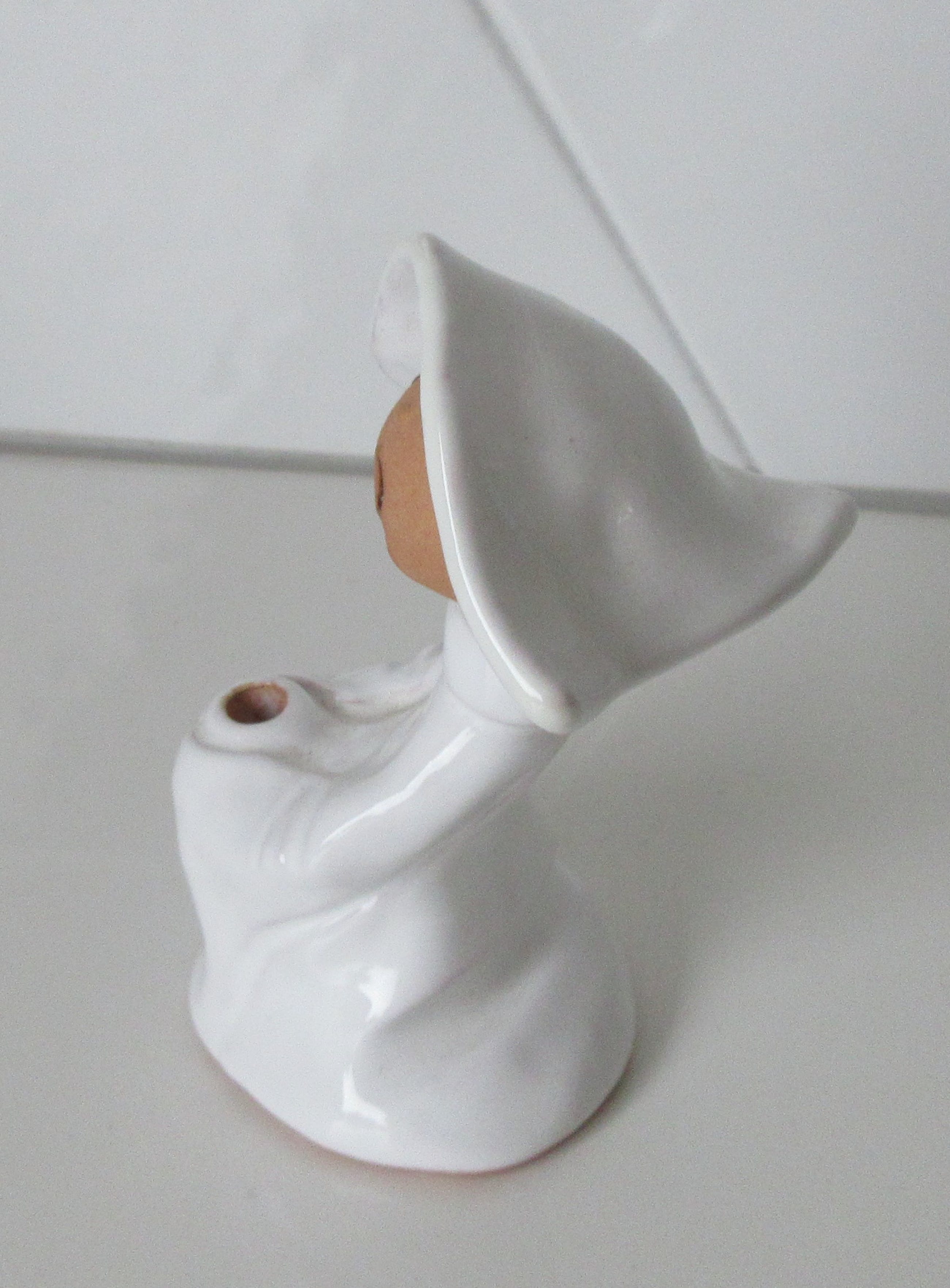 Wit geglazuurd aardewerk plastiekje van een nonnetje. Gemerkt WV aan de onderzijde (Wim Visser??). In prima onbeschadigde conditie.