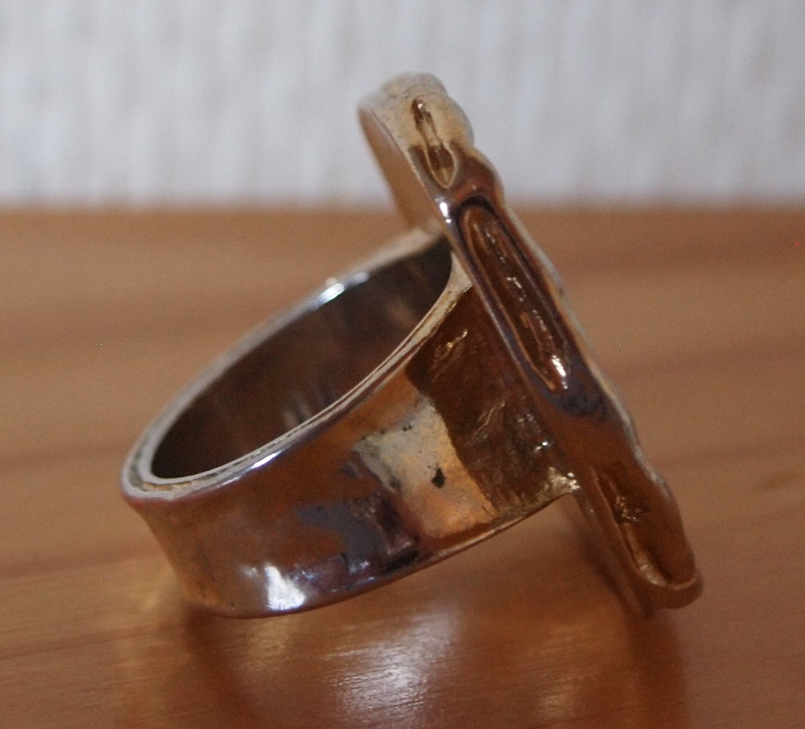 Wit metalen hand gemaakte ring met creme wit oppervlak. Niet gesigneerd of voorzien van keurmerken.