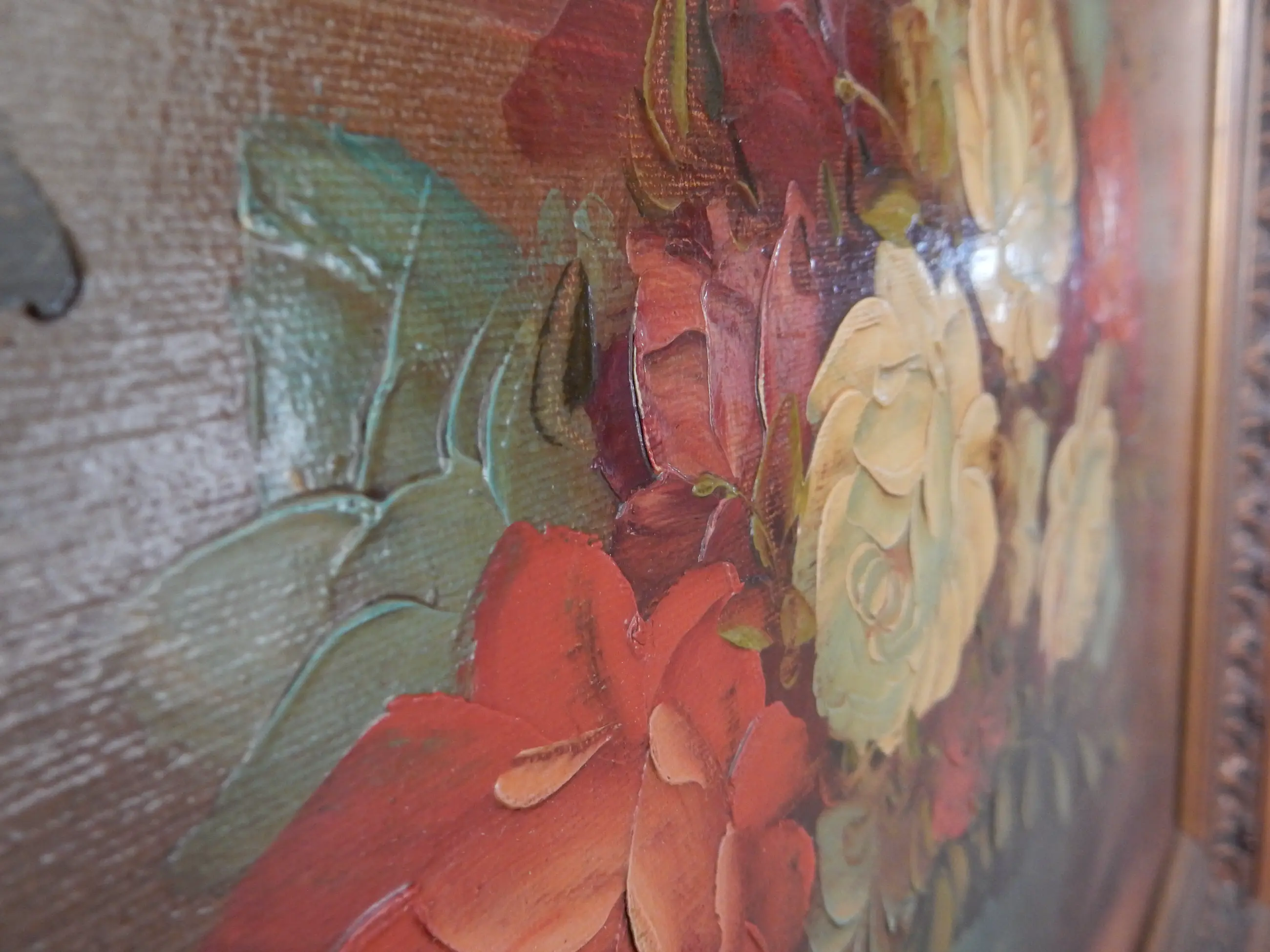 Prachtig olie geverfd schilderij met bloemen Bloemen zijn opgezet met speciaal spateltechniek