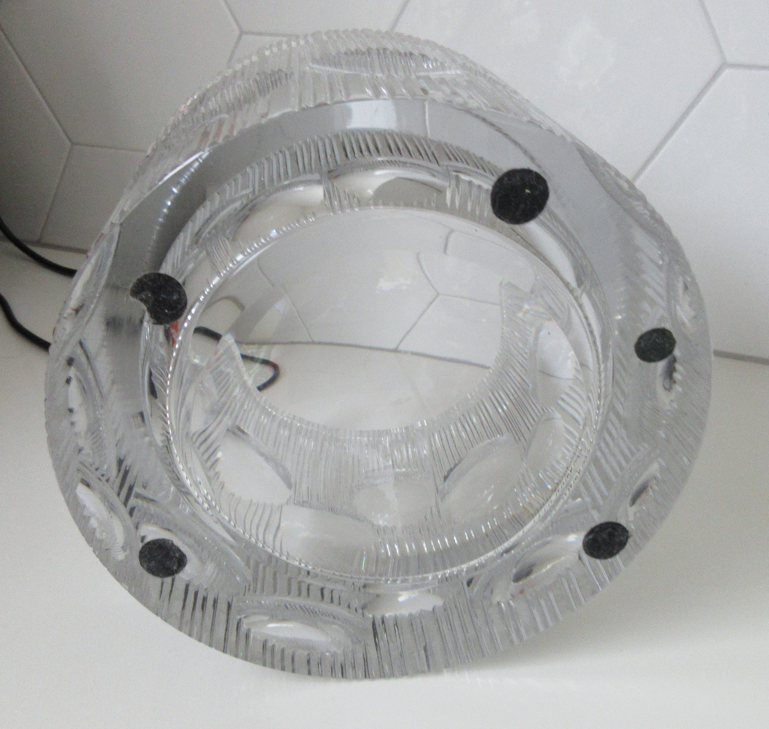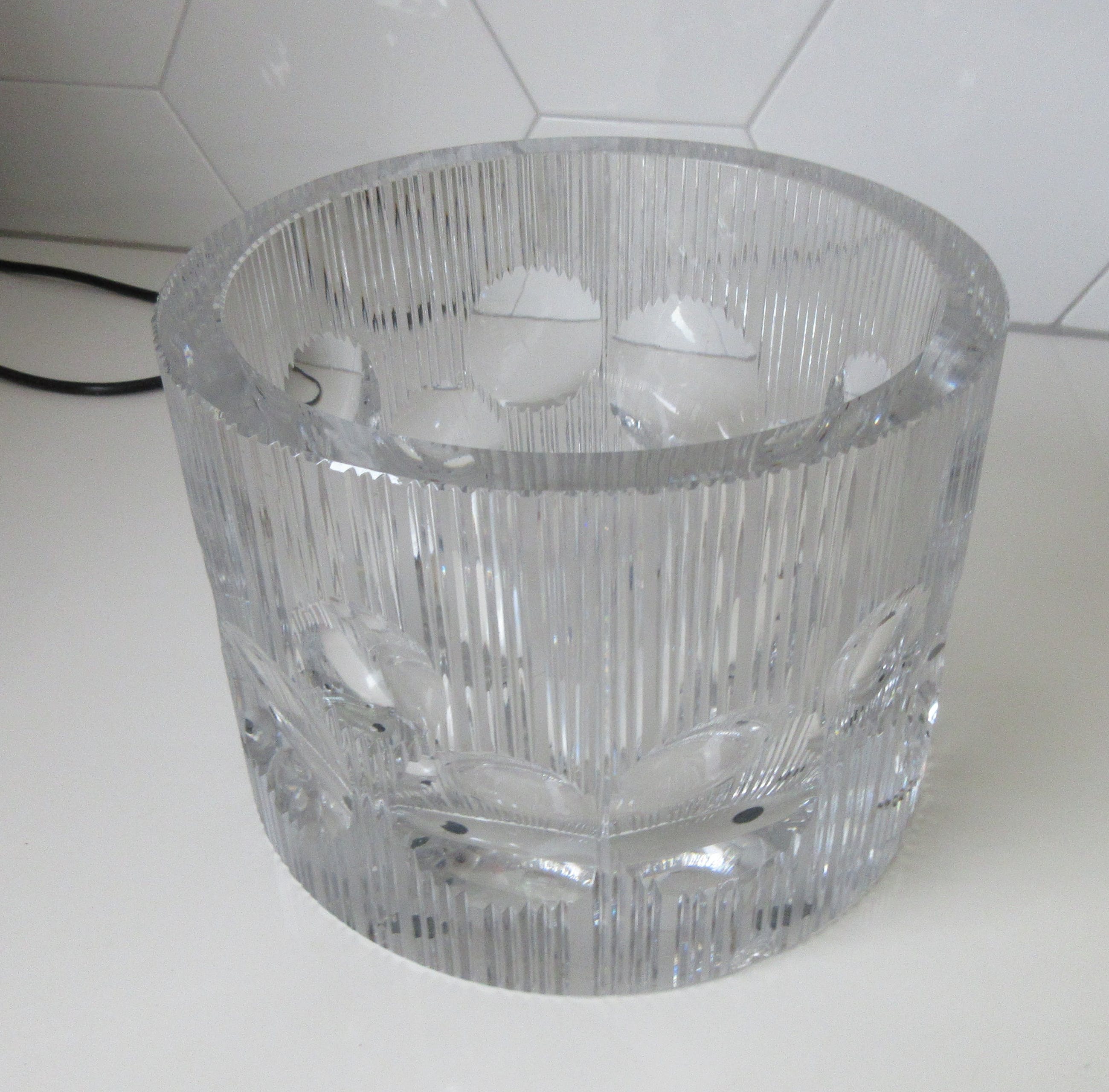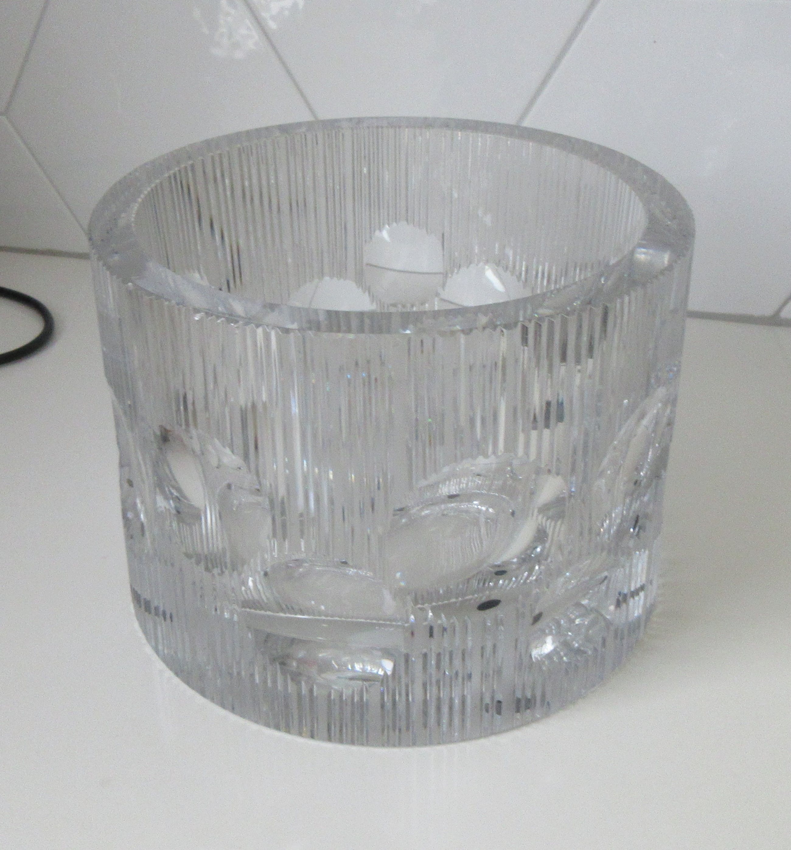 XL Space Age dikwandige lens geslepen kristallen vaas of planter. In goede conditie heeft helaas een chip aan de zijkant (zie foto). Niet gemerkt, maker onbekend maar waarschijnlijk van Noord of West Europese origine.