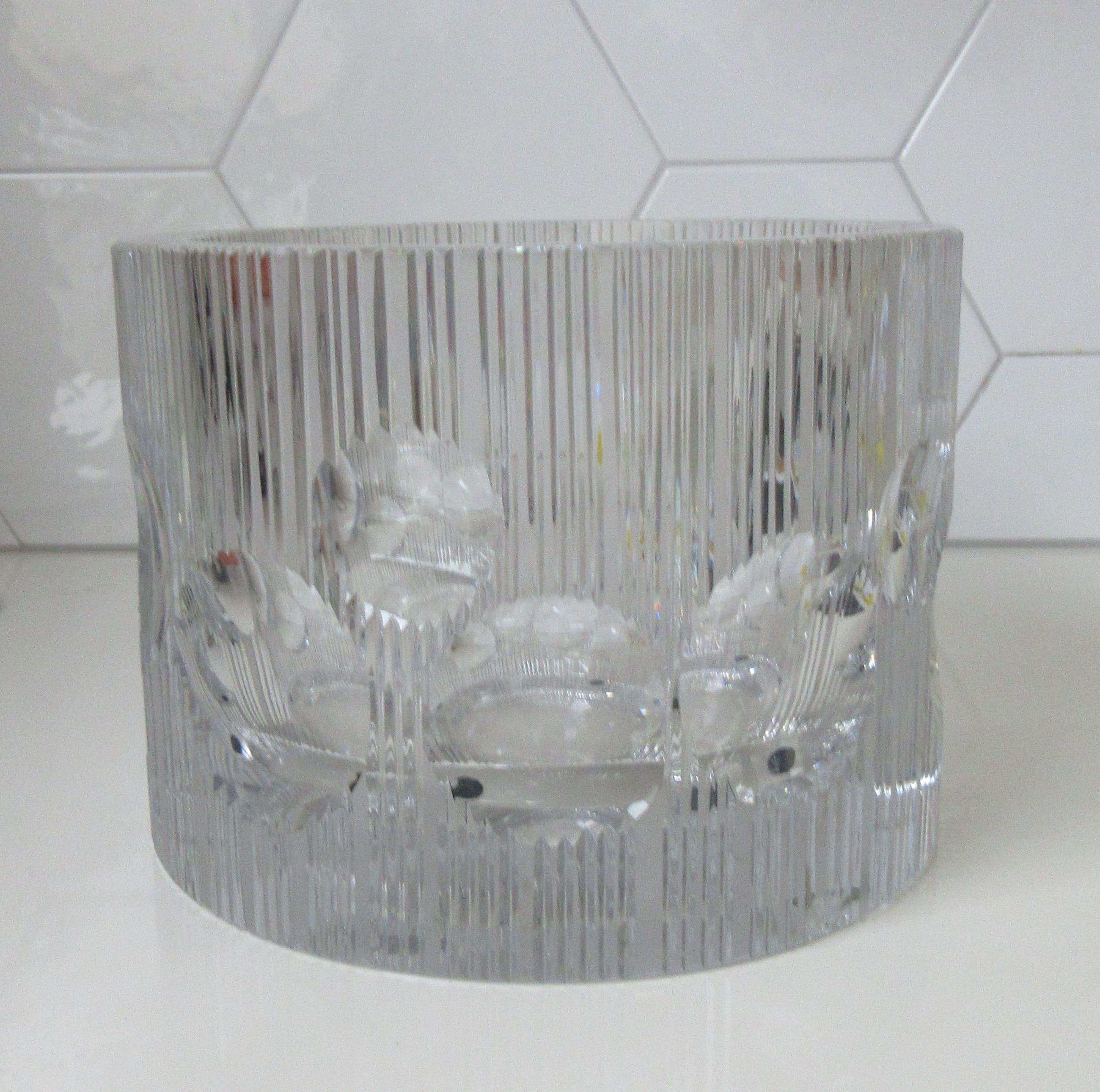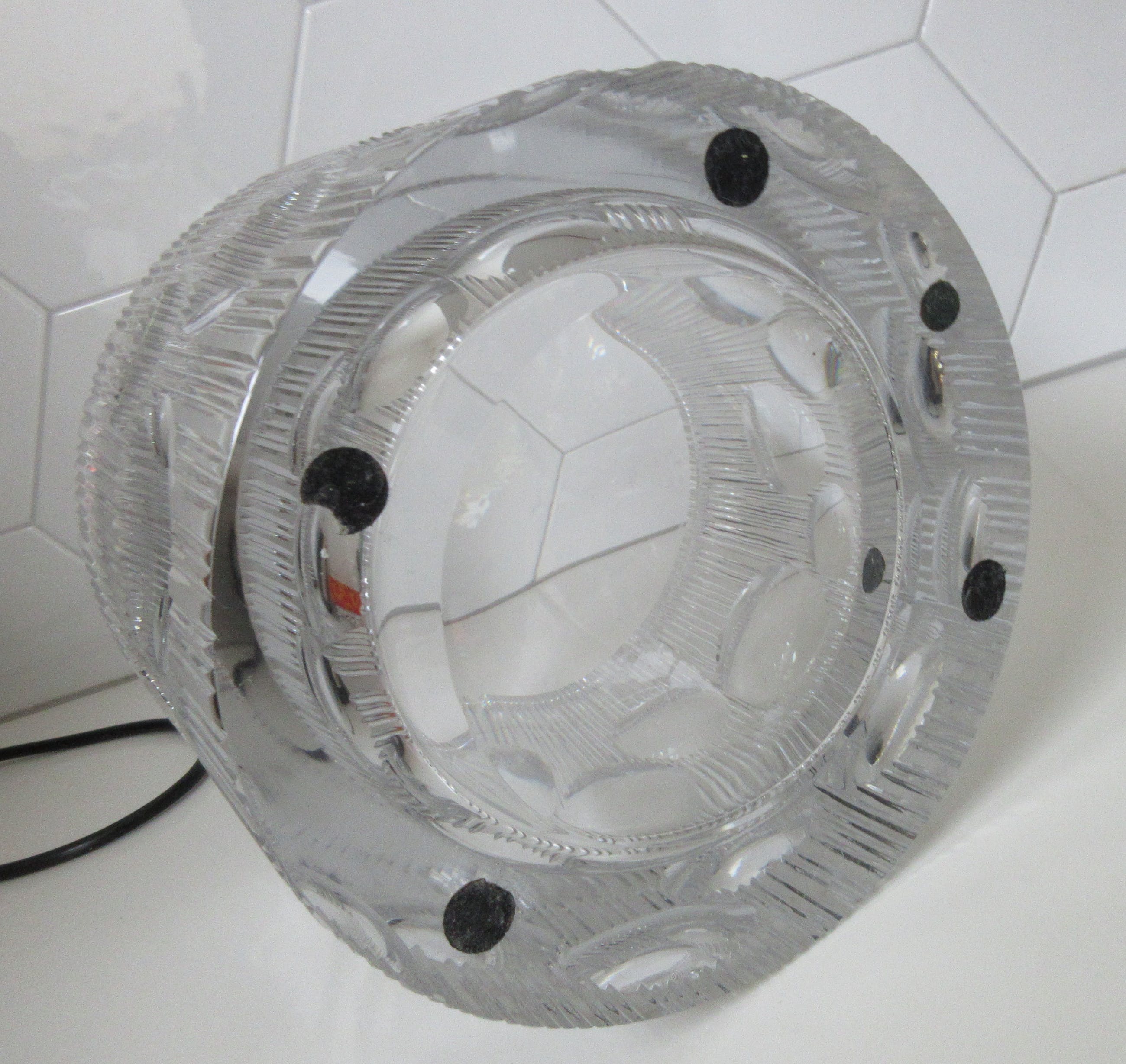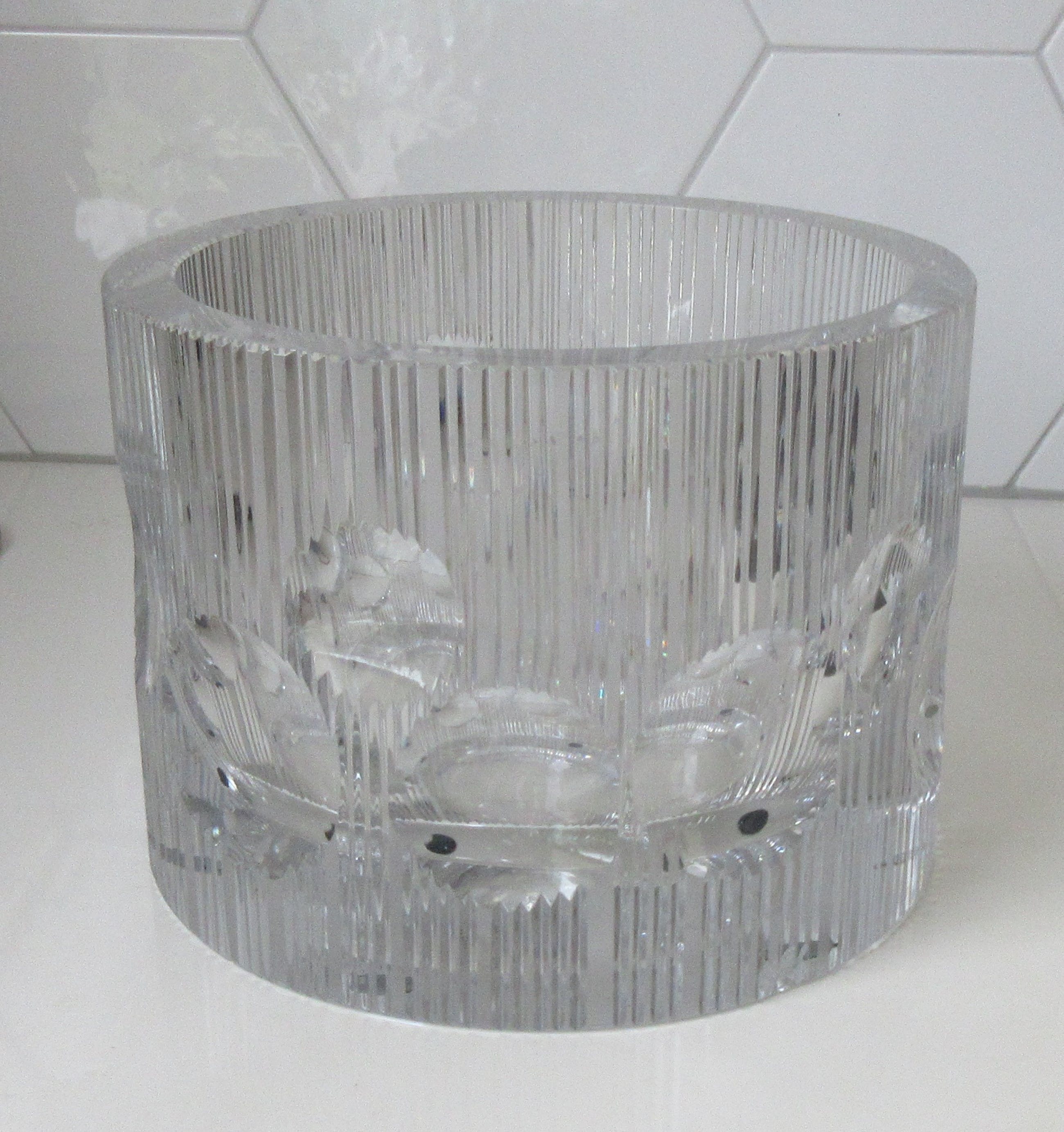 XL Space Age dikwandige lens geslepen kristallen vaas of planter. In goede conditie heeft helaas een chip aan de zijkant (zie foto). Niet gemerkt, maker onbekend maar waarschijnlijk van Noord of West Europese origine.