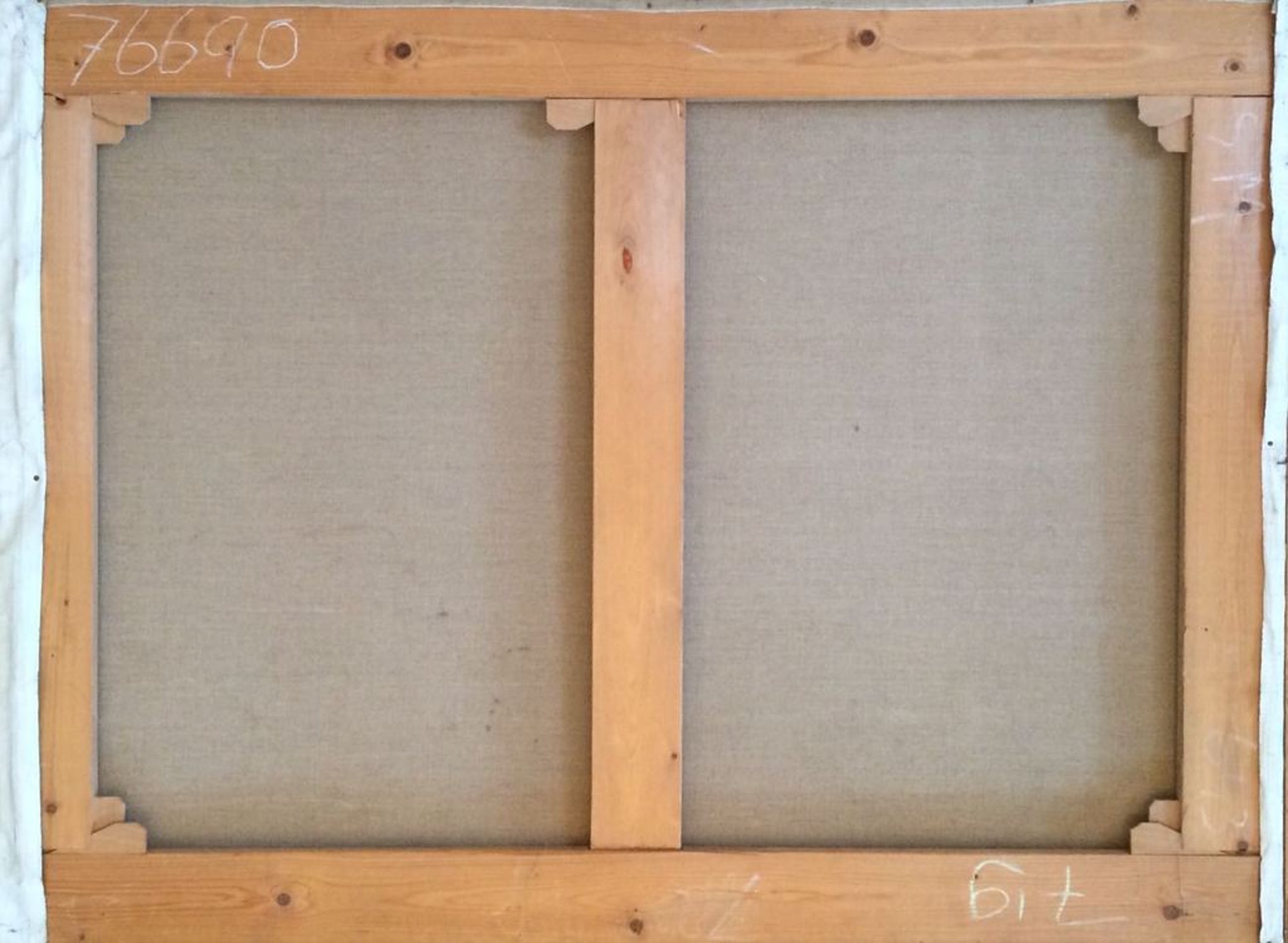 Het schilderij wordt met zorg van het spieraam afgehaald en opgerold in een stevige koker.