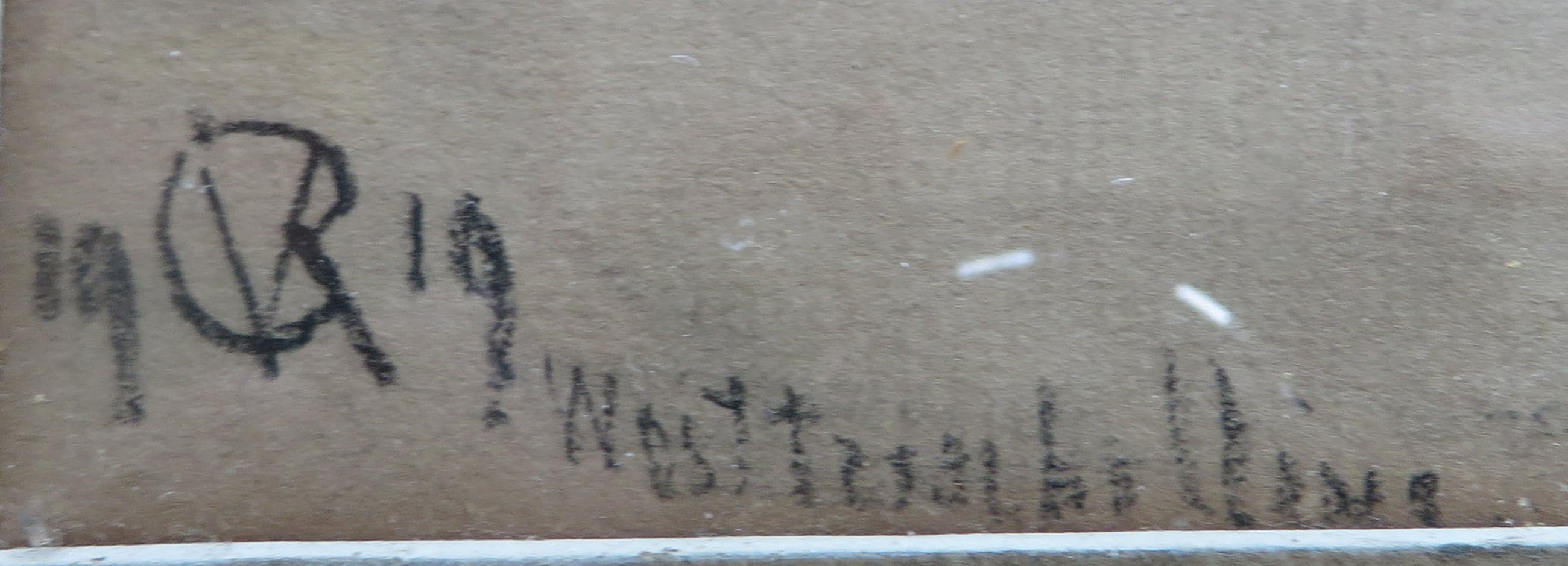 Het monogram deed mij in eerste instantie aan Van Rappard denken die ook op Terschelling gewerkt heeft. Zie tekeningen "Het behouden Huis",maar dan klop de datering niet. Van Rappard overleed aan het einde van de 19e eeuw.Zie ook de documentatie aan de achterzijde.