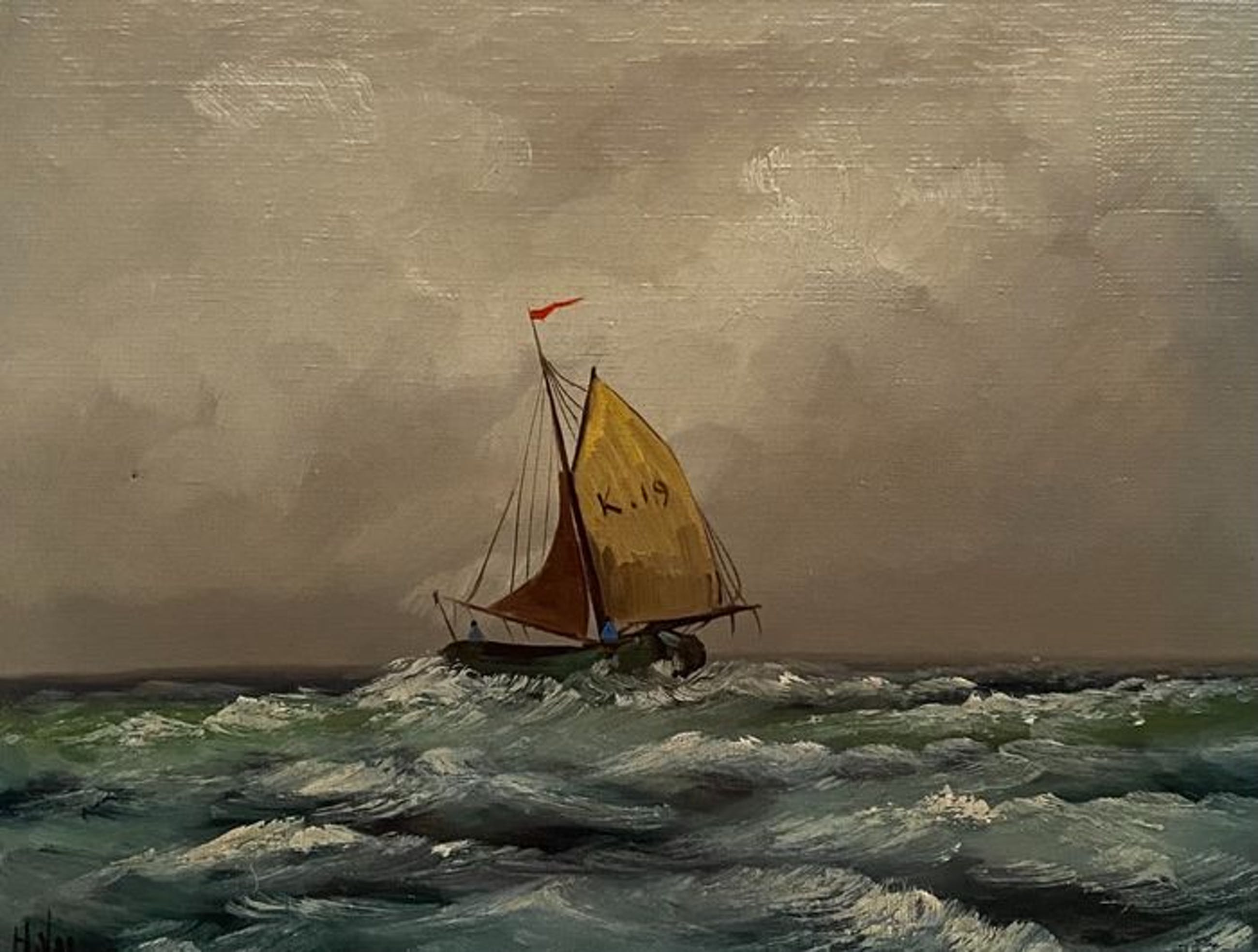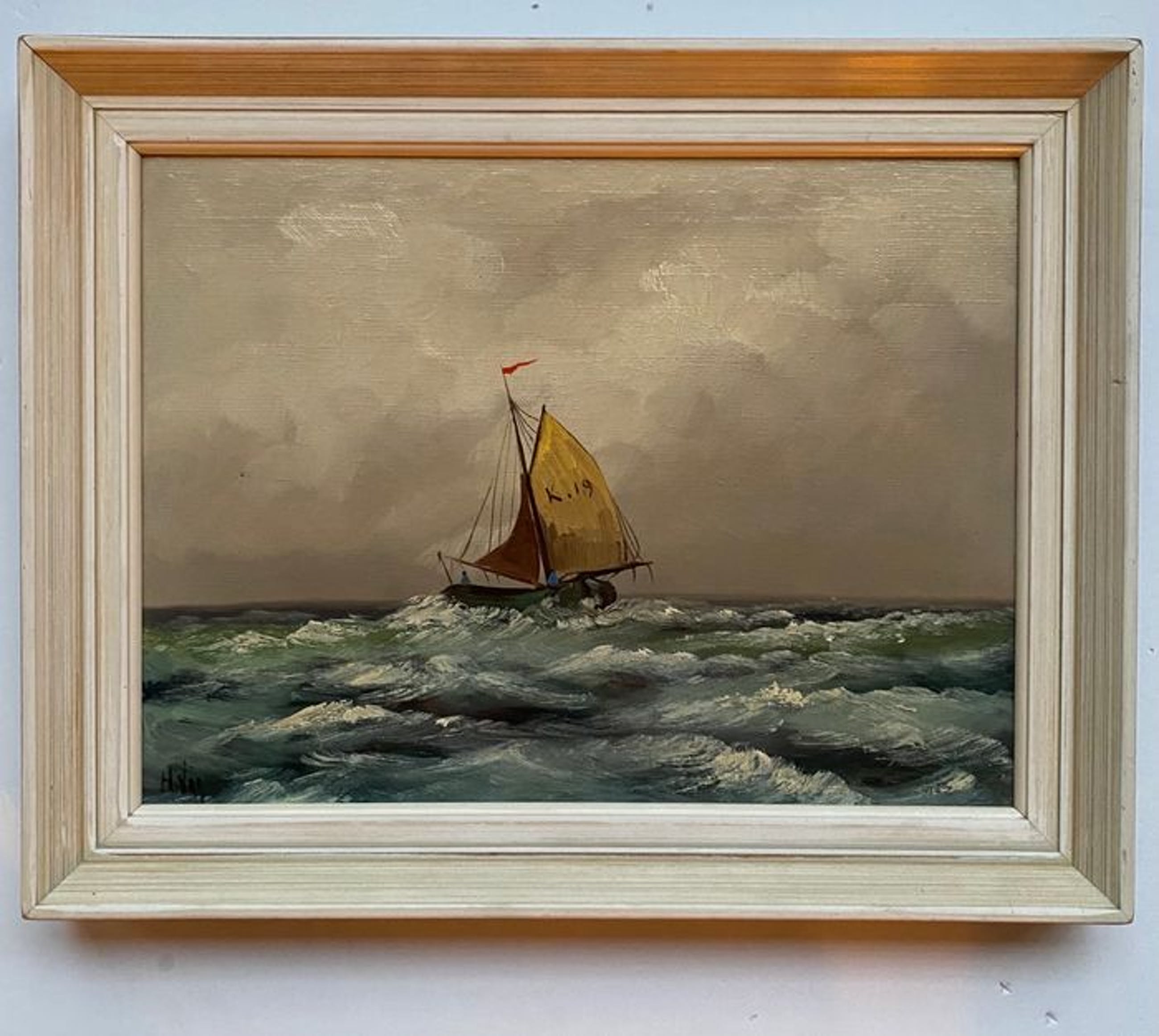 Dutch school, 20th century seascape, oil on canvas. Signed lower left. Fast and safe shipping worldwide.