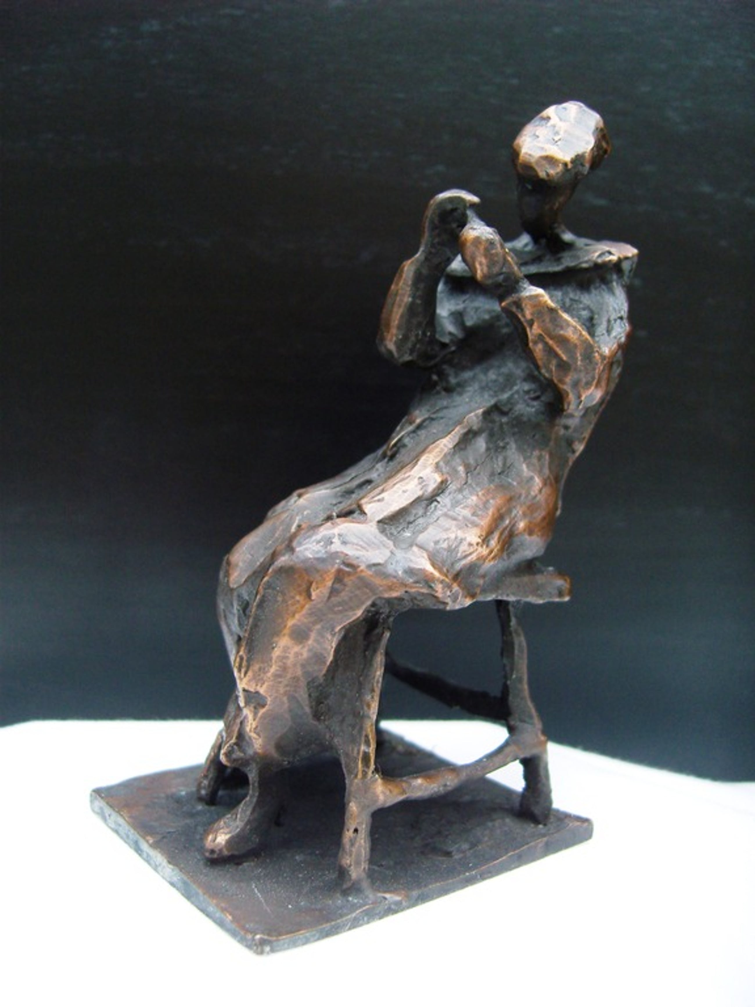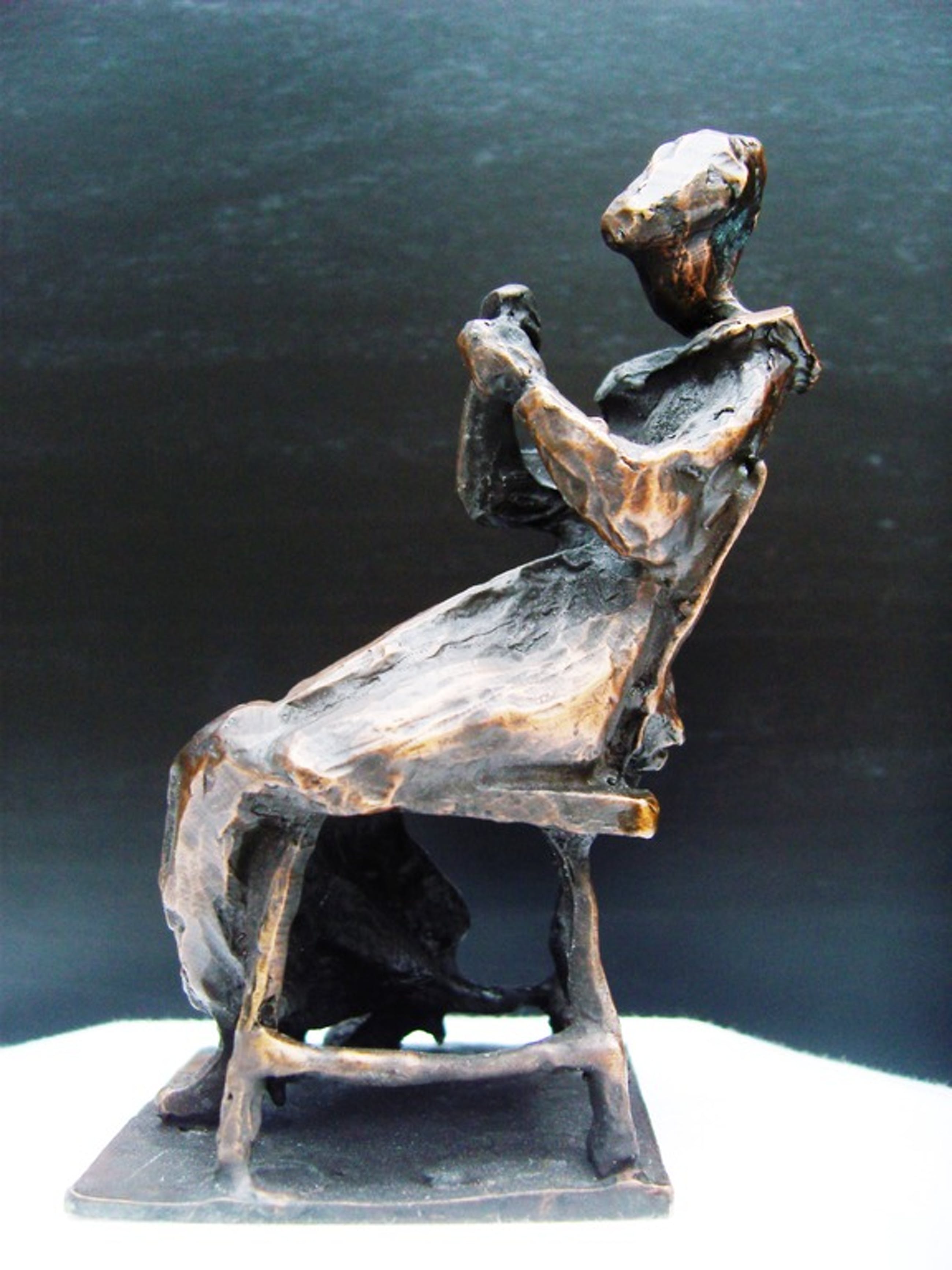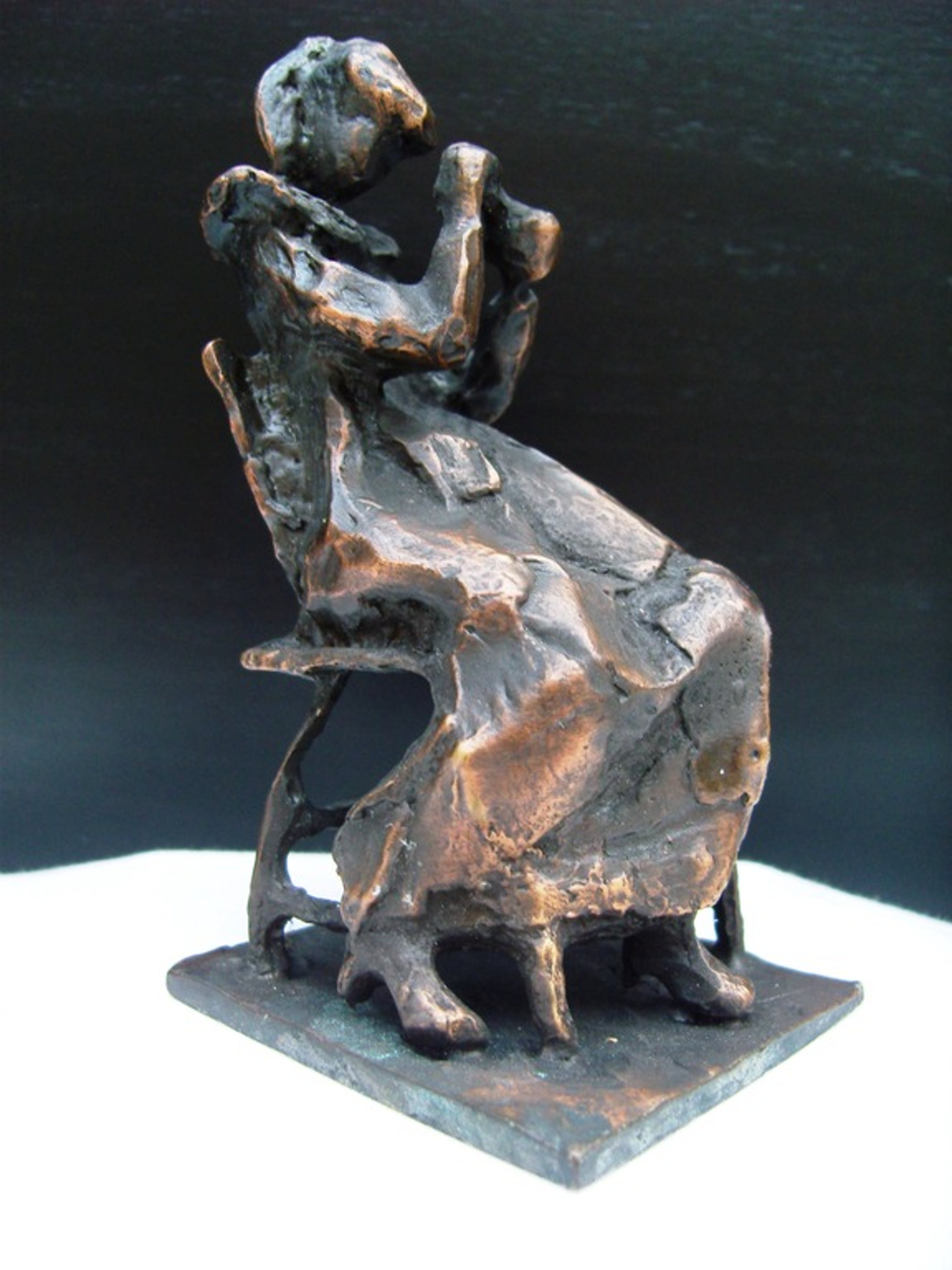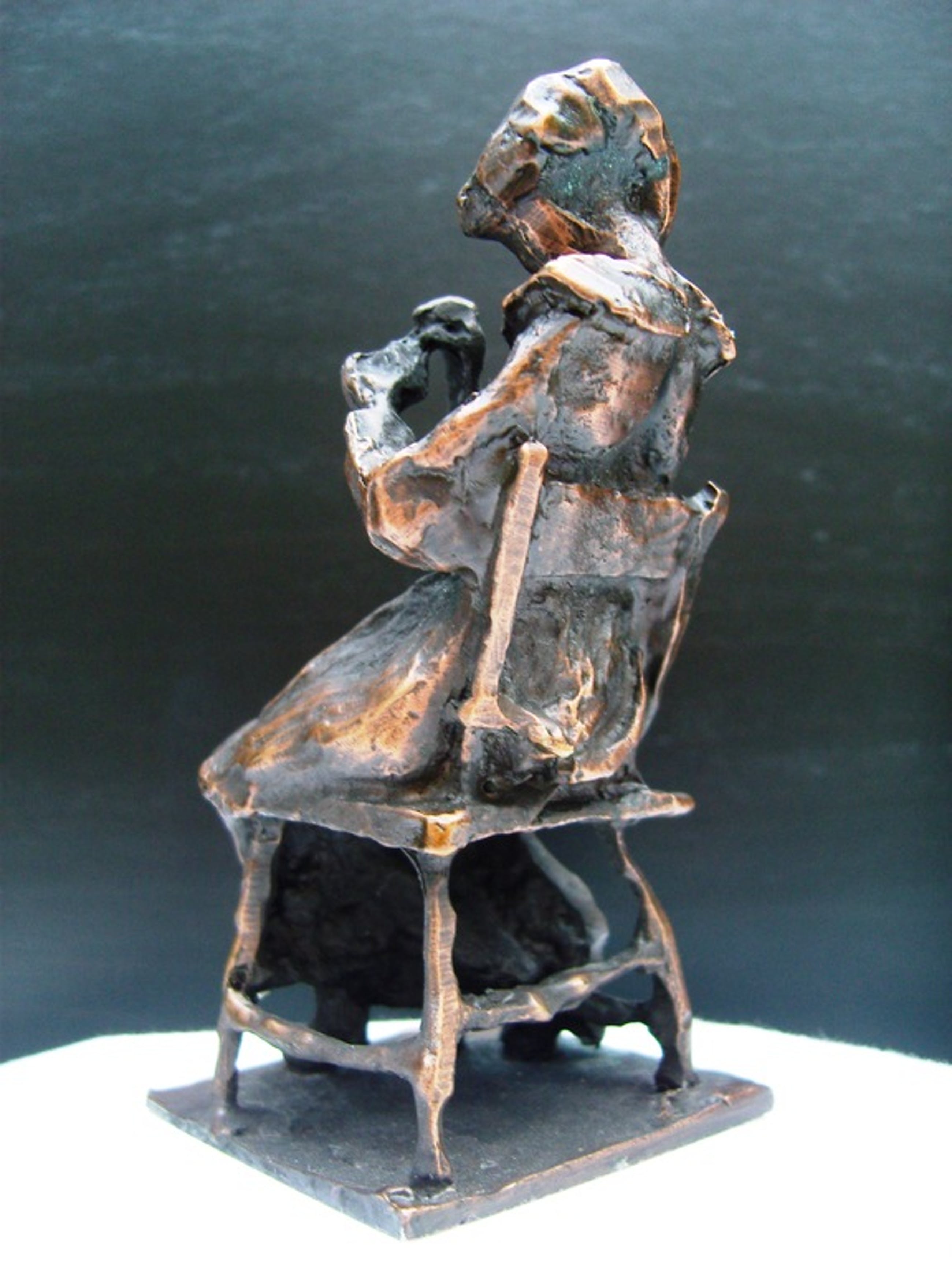 Zeer fraai bronzen beeldje van handwerkende vrouw. Doet een beetje denken aan de stijl van een jonge Verkade, het is echter niet van zijn hand.