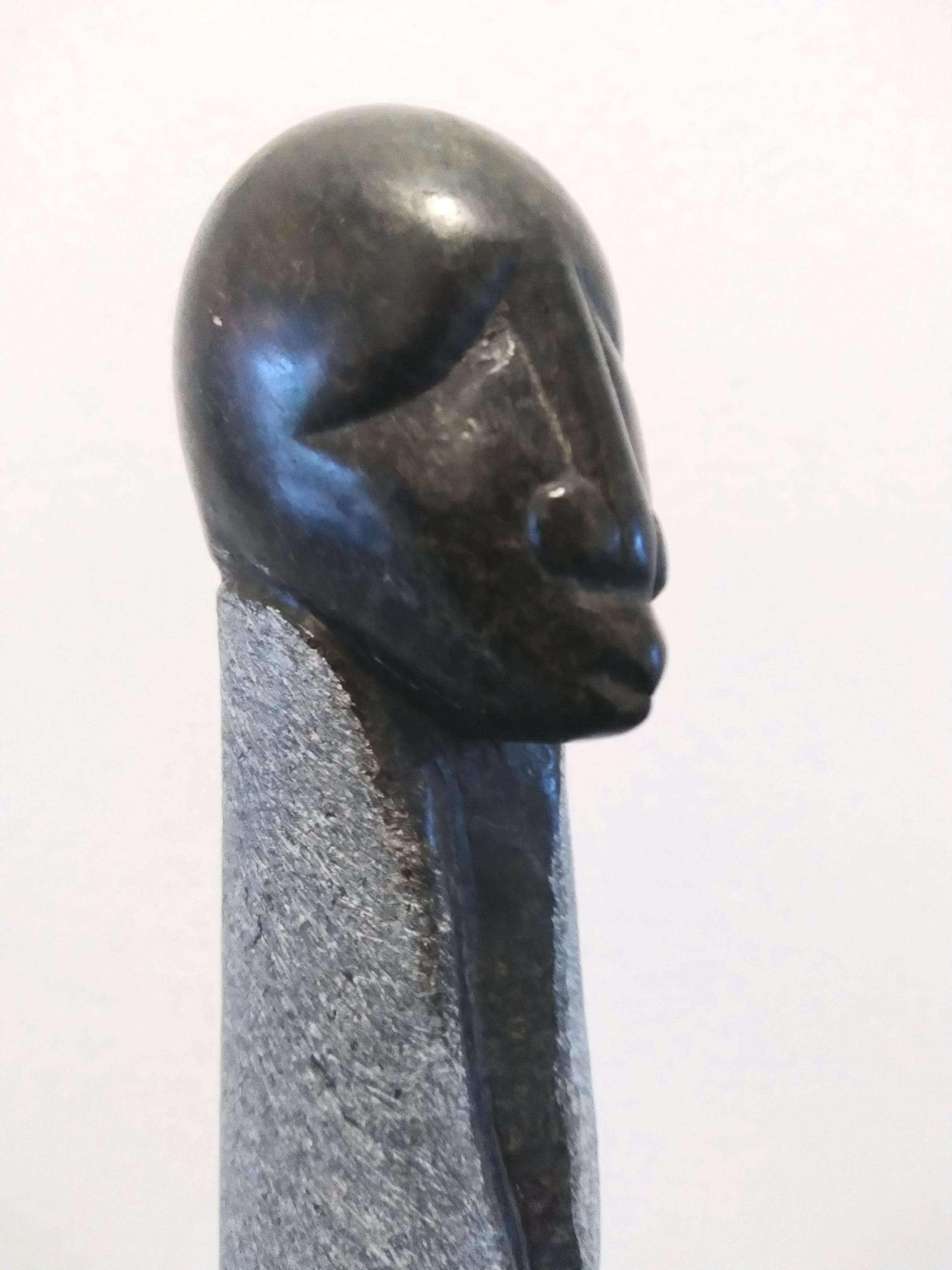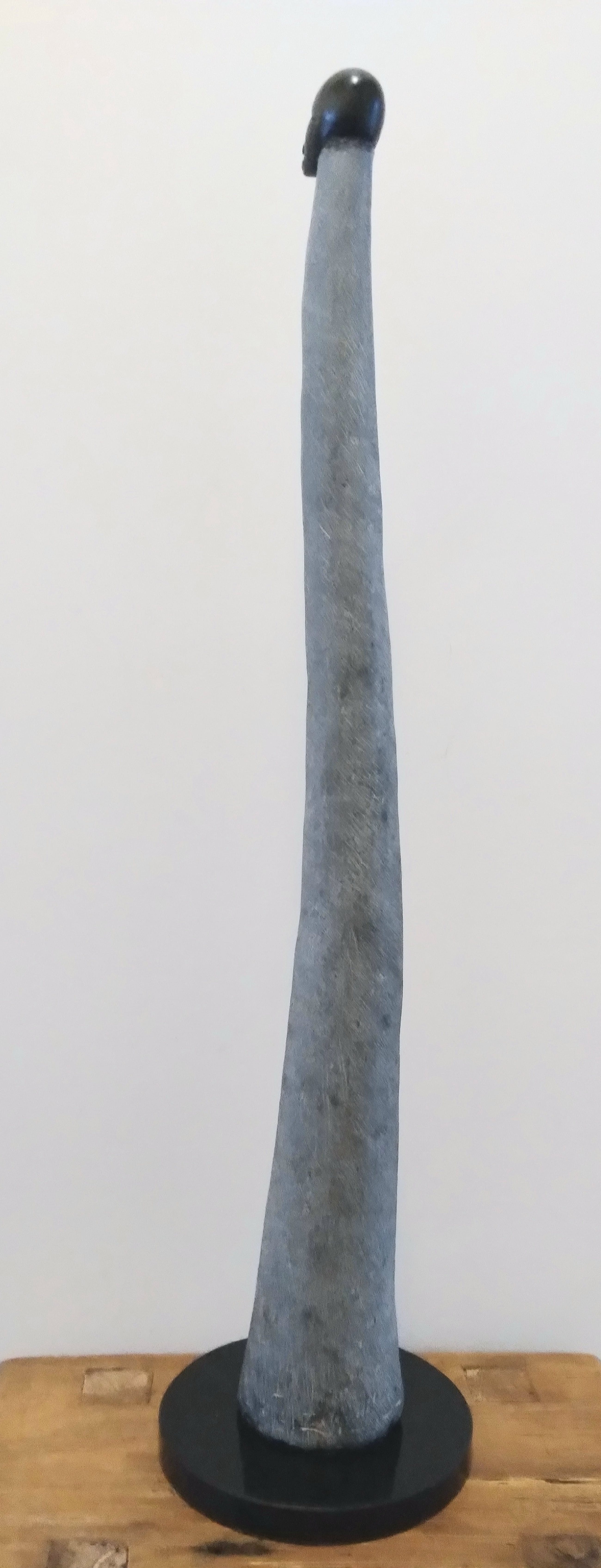 Het beeld is uit een stuk gehouwen en heeft een levendig, ruw oppervlak. Hoofd en hals zijn mat gepolijst. Het beeld staat op een glanzend gepolijste voet met een doorsnede van ca 18 cm. Afmeting ca: 73 cm, met voet ca. 75 cm hoog.