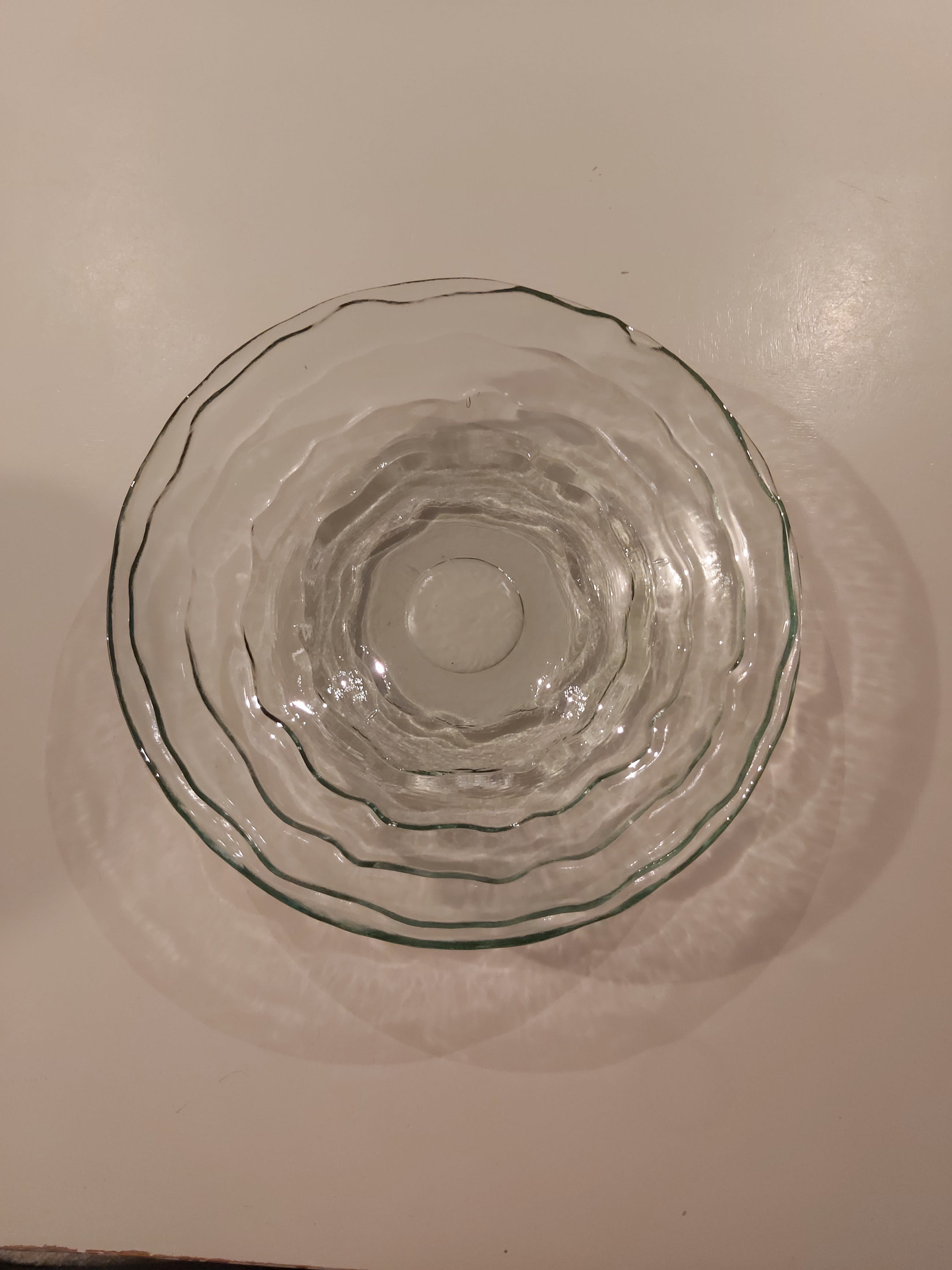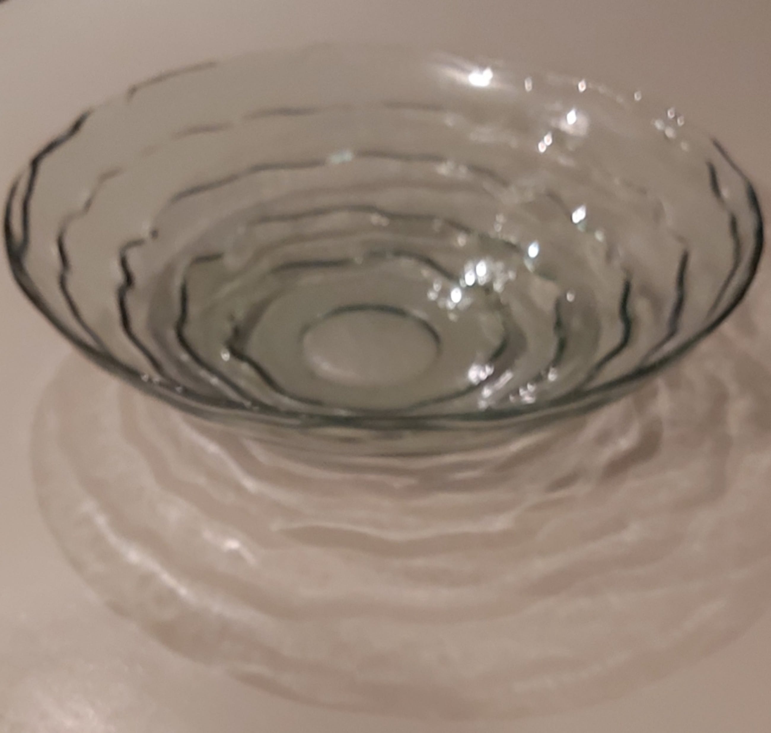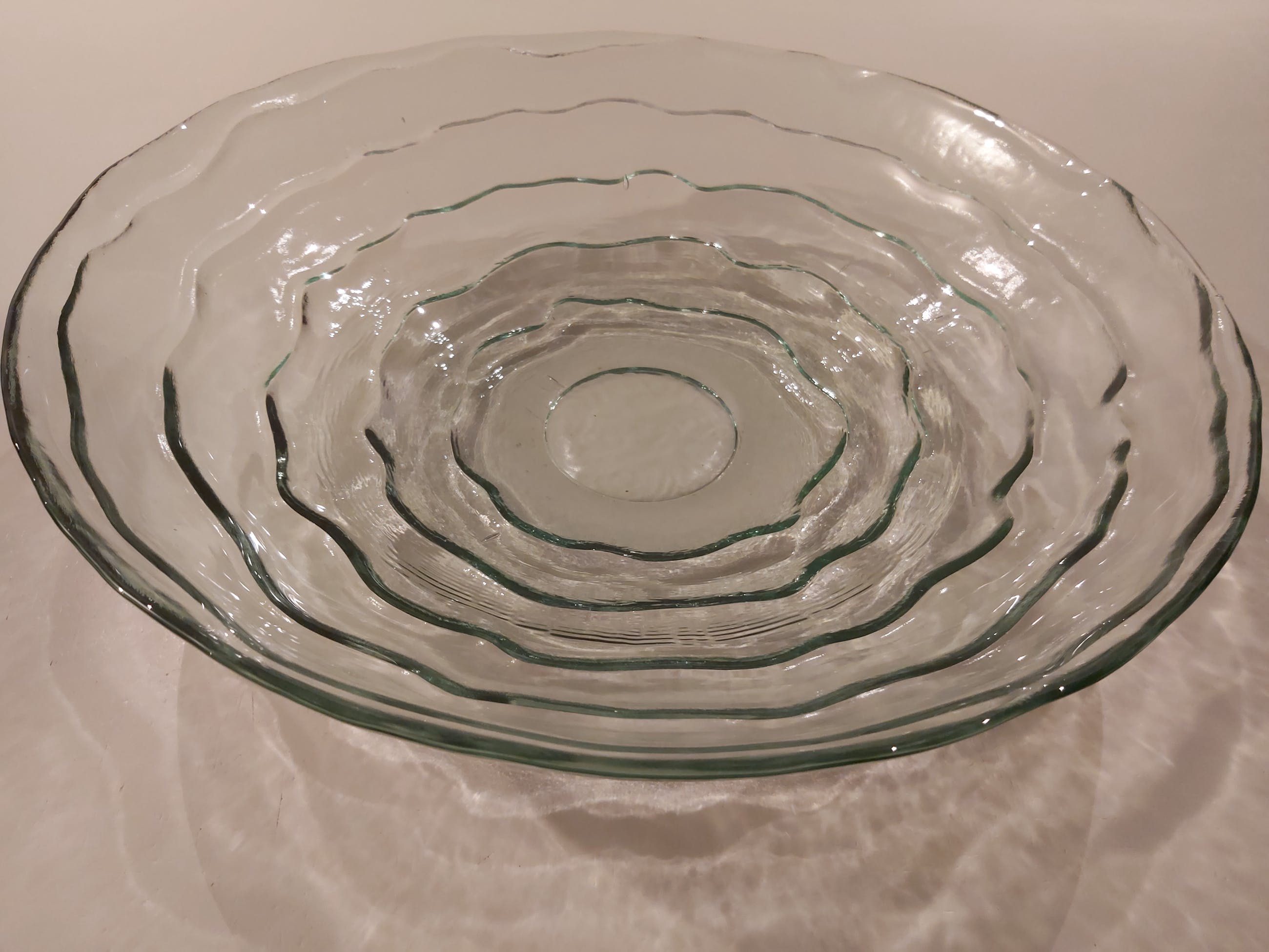 Mooie,zware, glazen schaal. Zeer knap motief. GROOTTE VAN 38 cm ! DIAMETER.