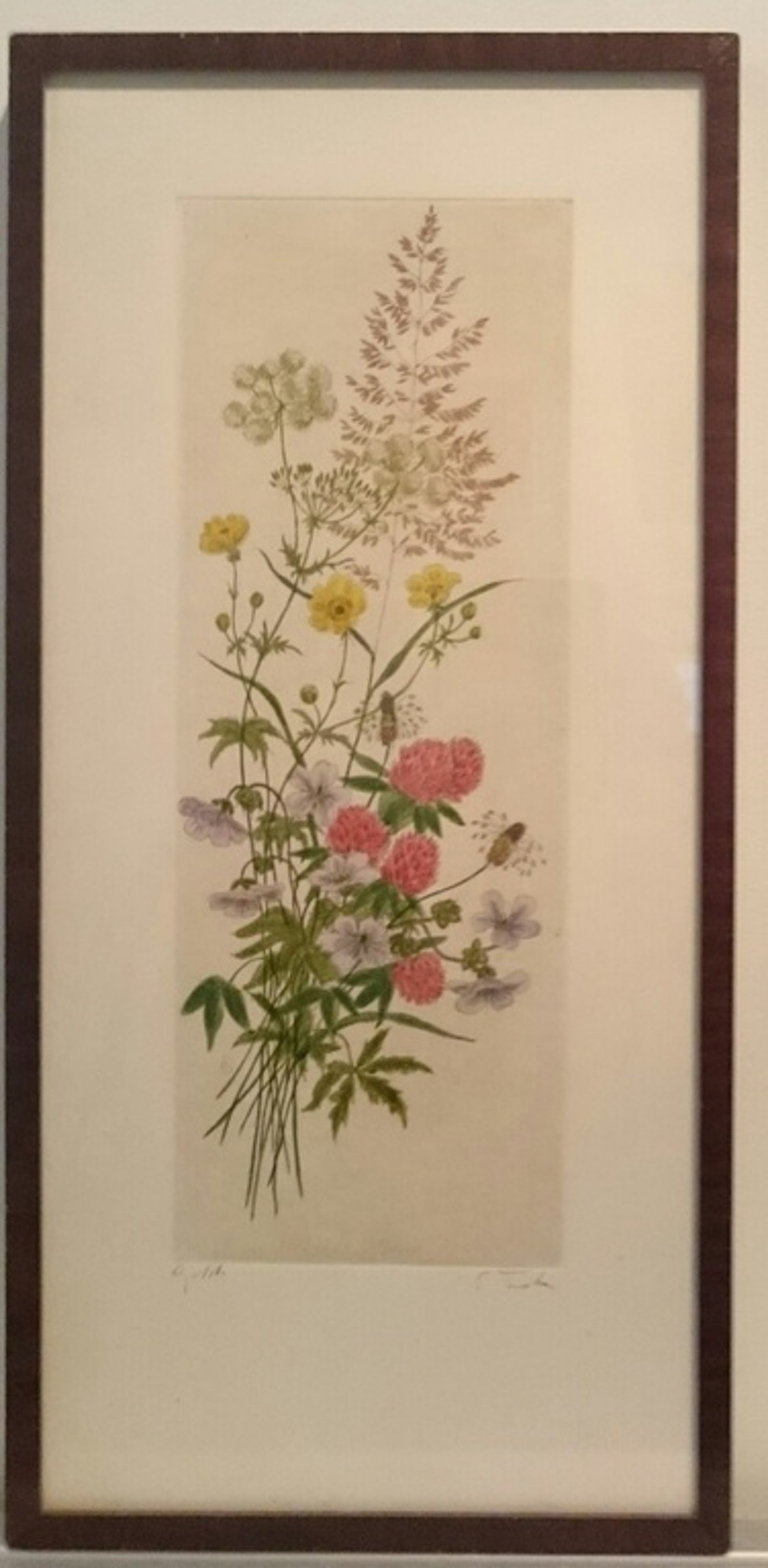 Zeer vakkundig gemaakte kleurenets, van voor mij onbekende kunstenaar. Plaatafmeting: 30 x 11,5 (h x b). Ingelijst achter glas door Kunsthandel JAS Utrecht, in notenhouten lijst. 42,5 x 20,5. Ets is in zeer goede conditie met l.o. in potlood benaming en r.o. in potlood de signatuur van de kunstenaar.