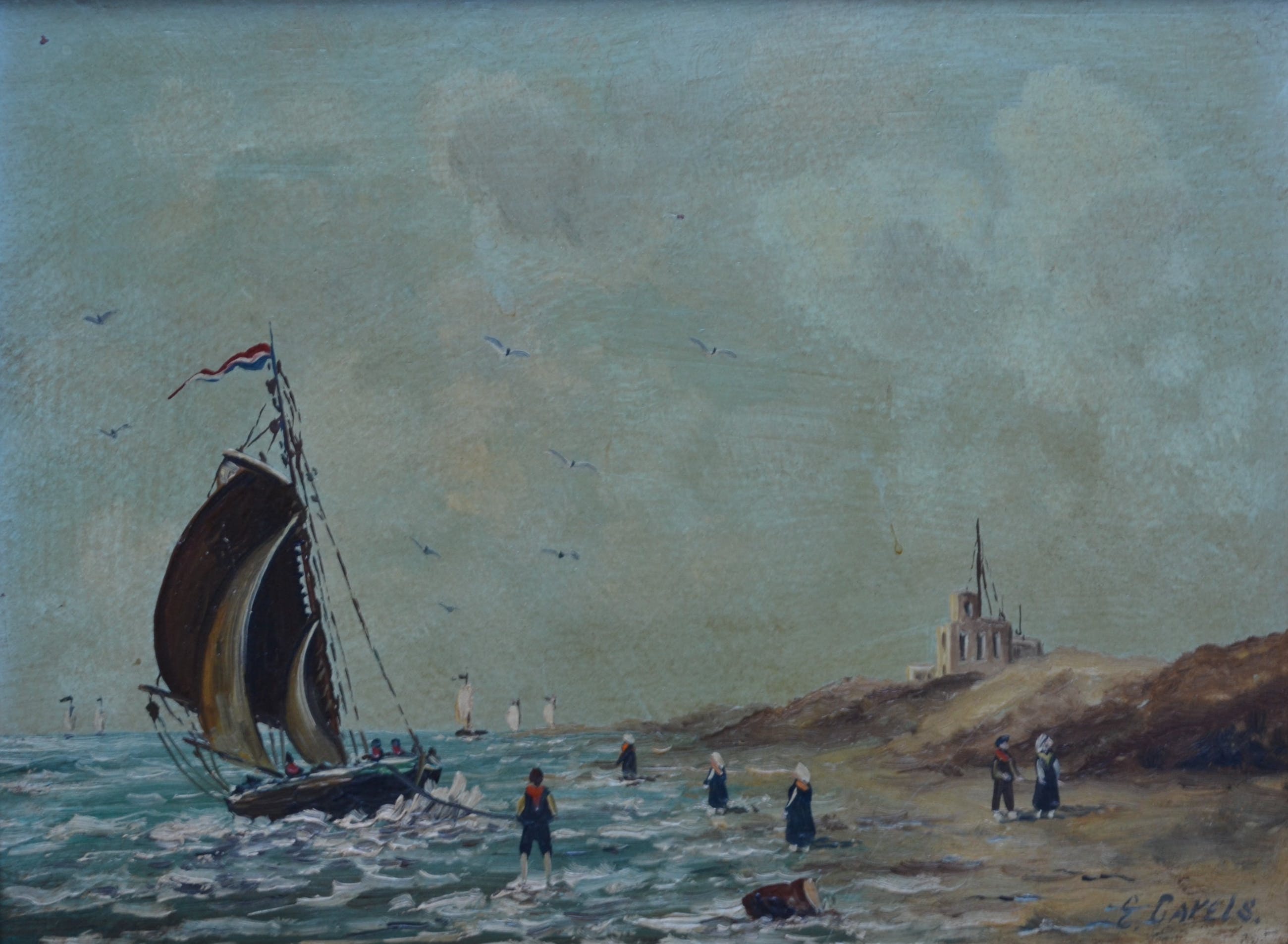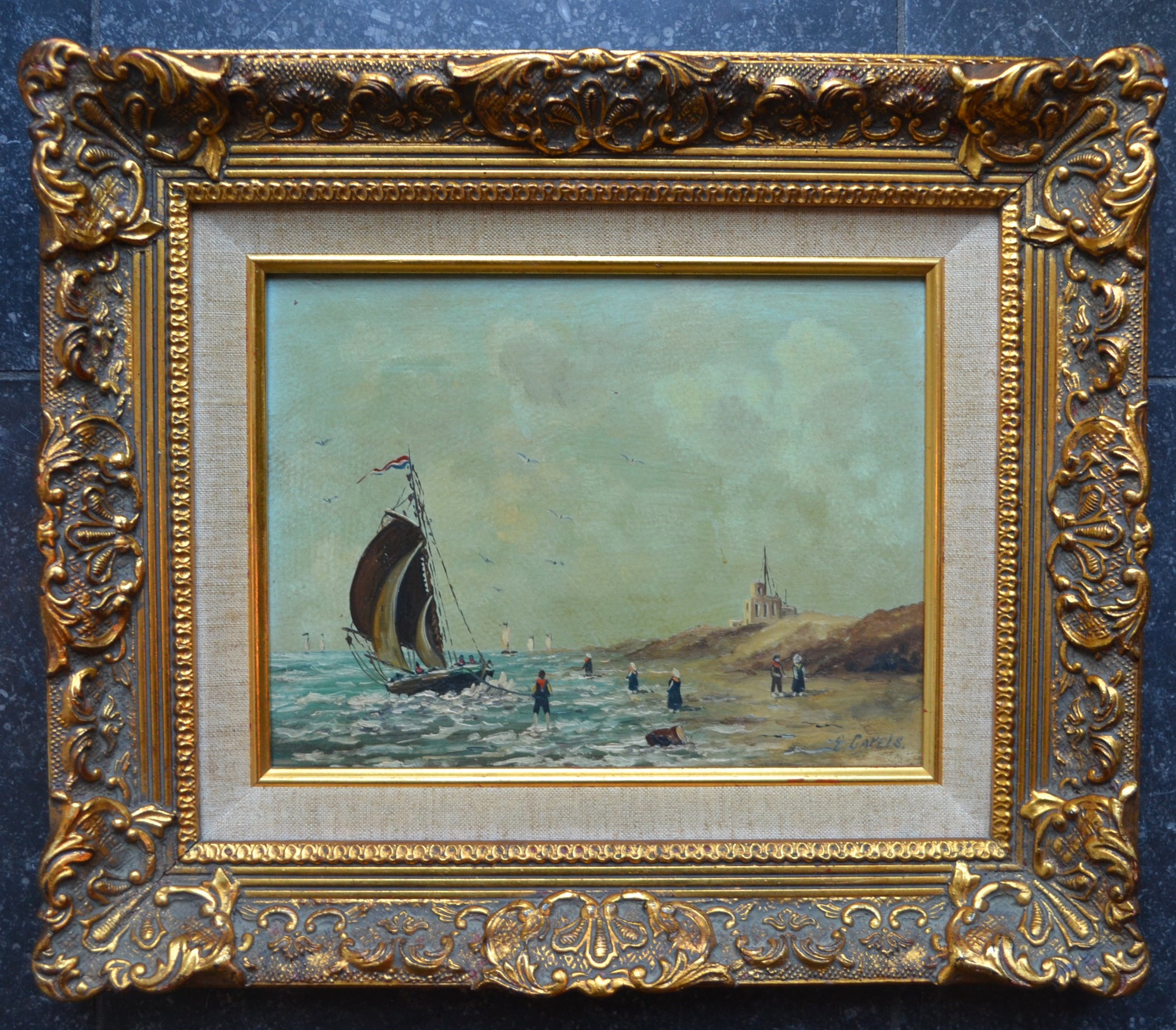 Leuk schilderij met fraaie lijst. Rechtsonder gesigneerd met wat lijkt op E. Carels (?).