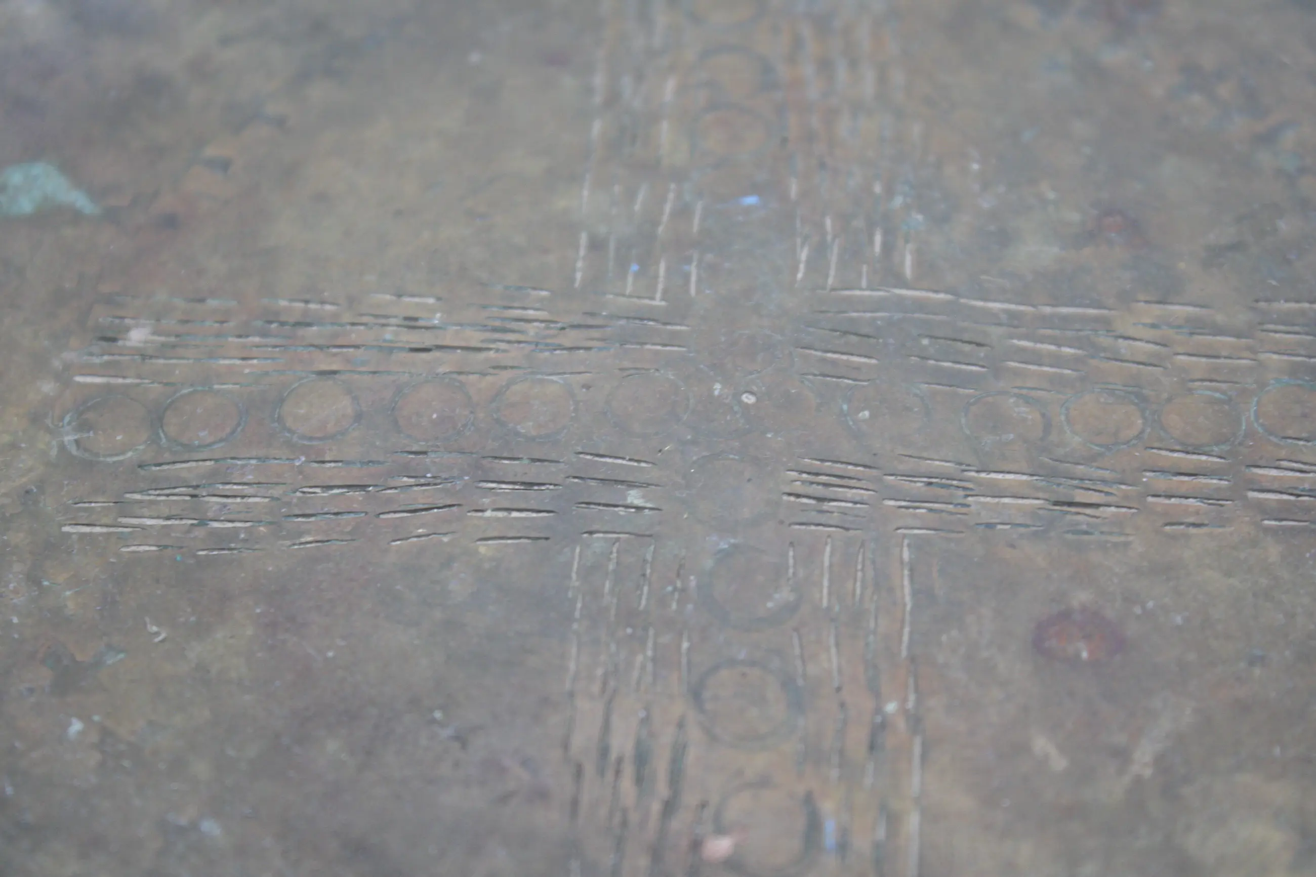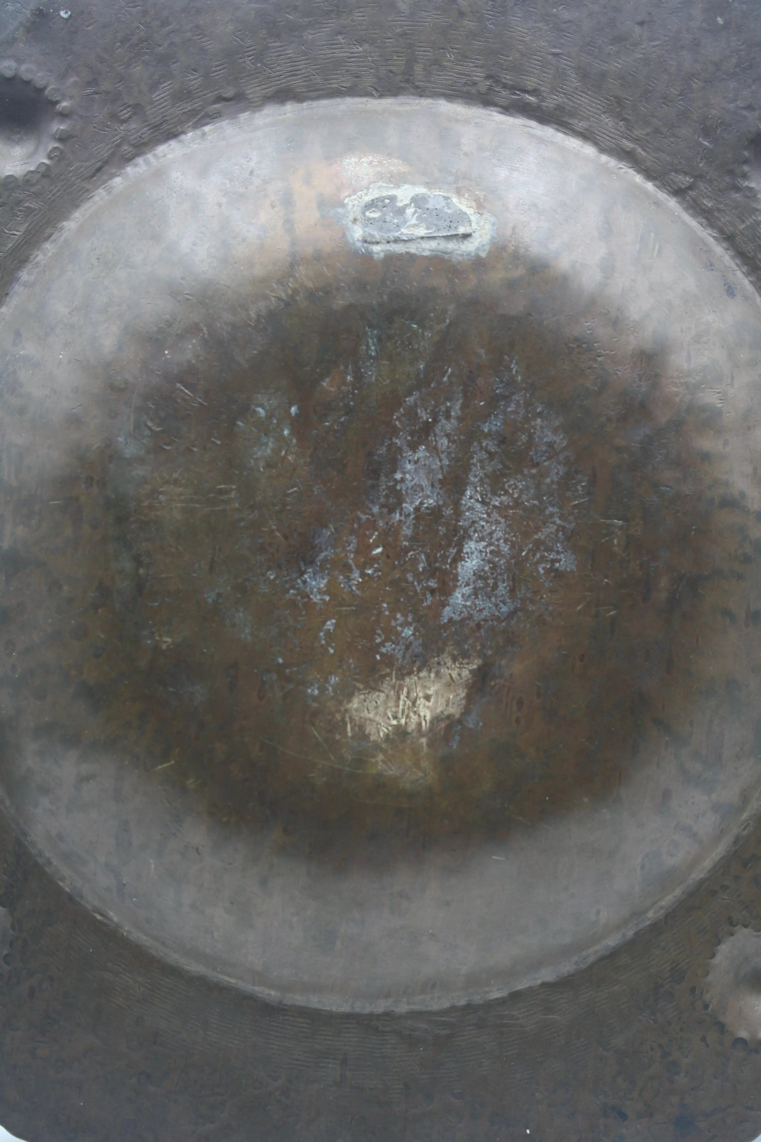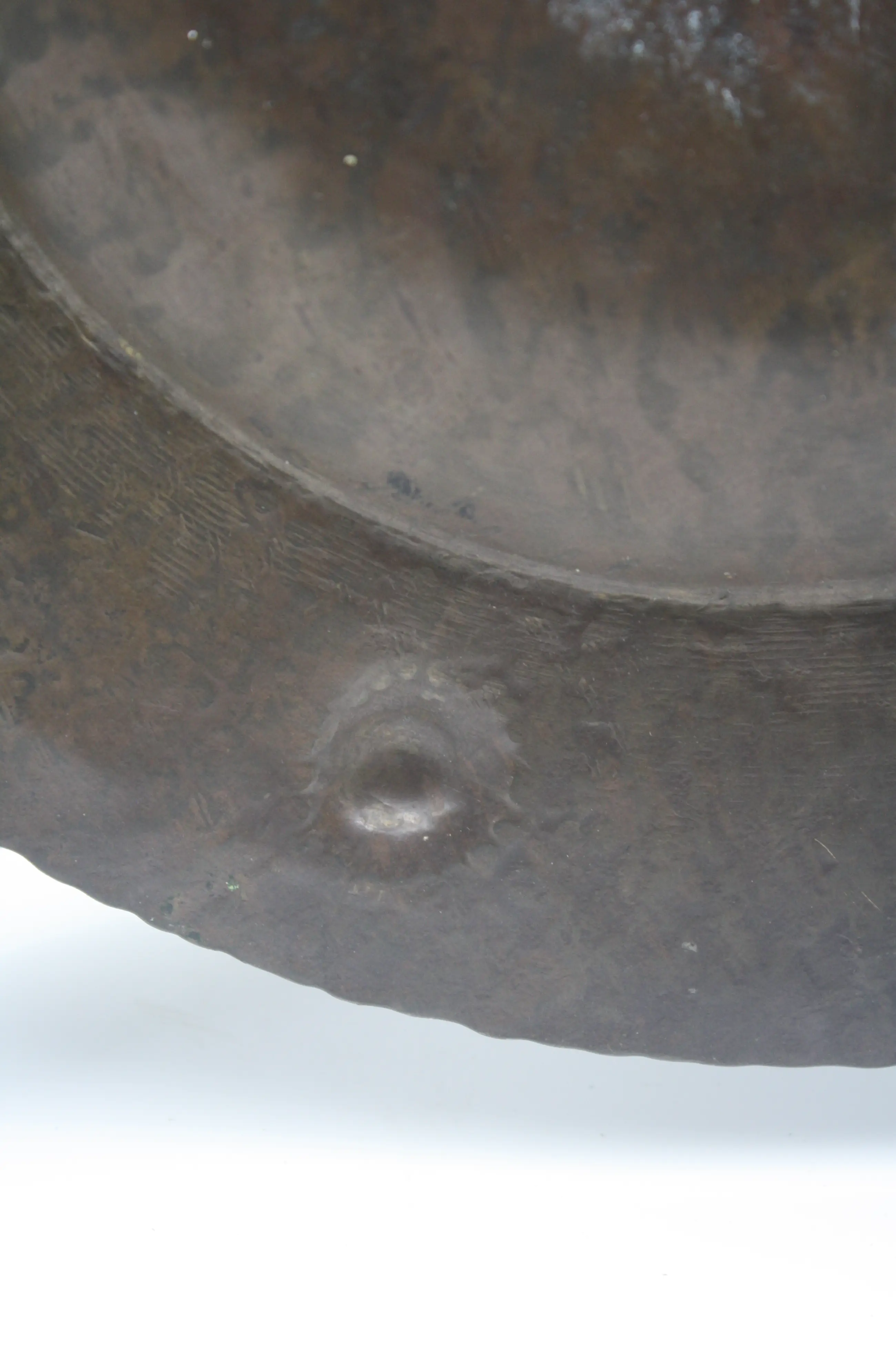 Aangeboden Zeldzame Grote Bronzen Islamitische Schotel Volledig Gehamerd en Gesmeed Voorzien van een Kruis.