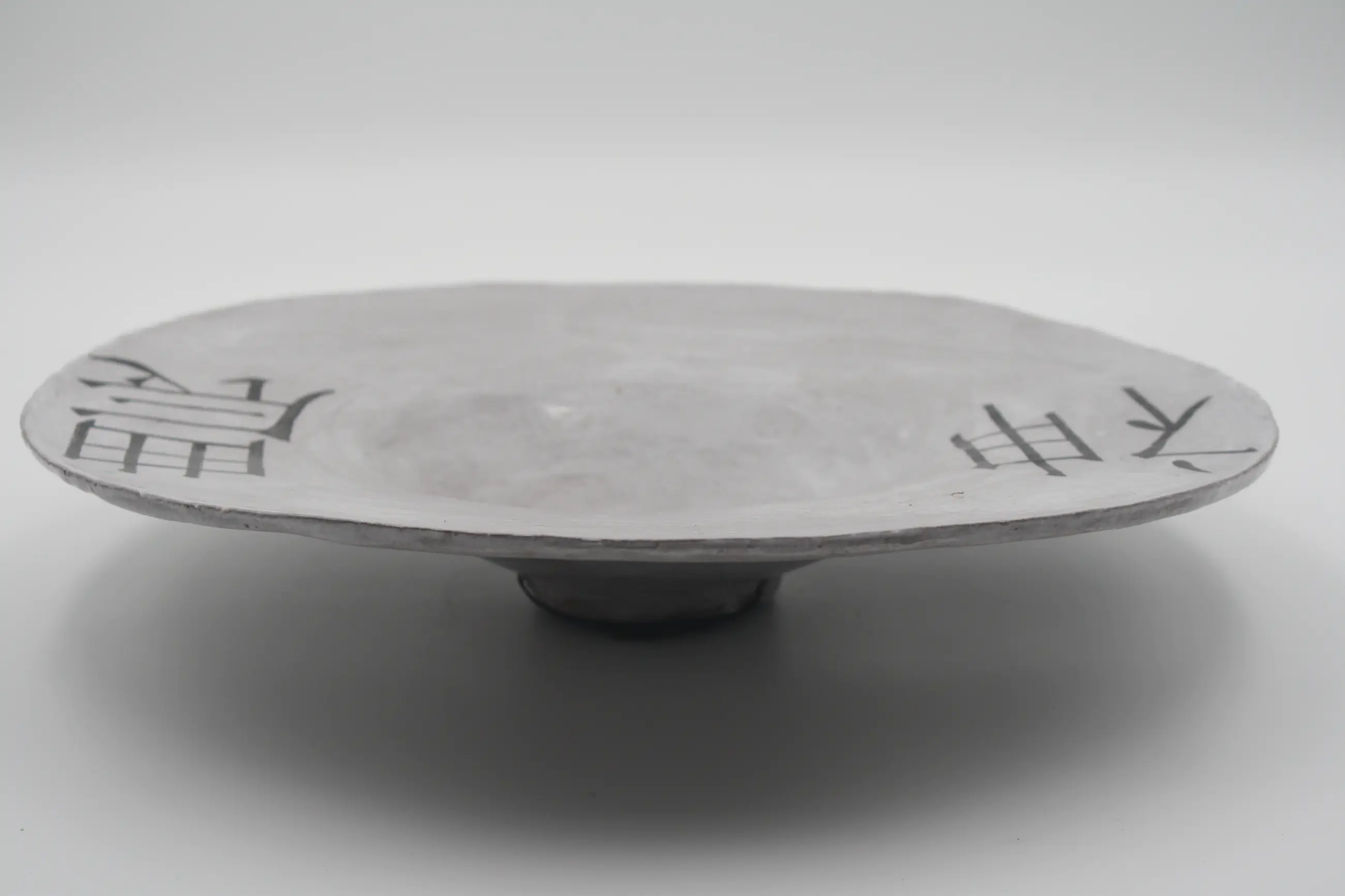 Schotel is aan de achterkant Gesigneerd met een Monogram of een Japanse Kalligrafie Teken en Handgevormd ondergrond Witte Slip en Geglazuurd. Een zeer goedkope aanbieding voor verzamelaars, liefhebbers en het zeer speciale geschenk.