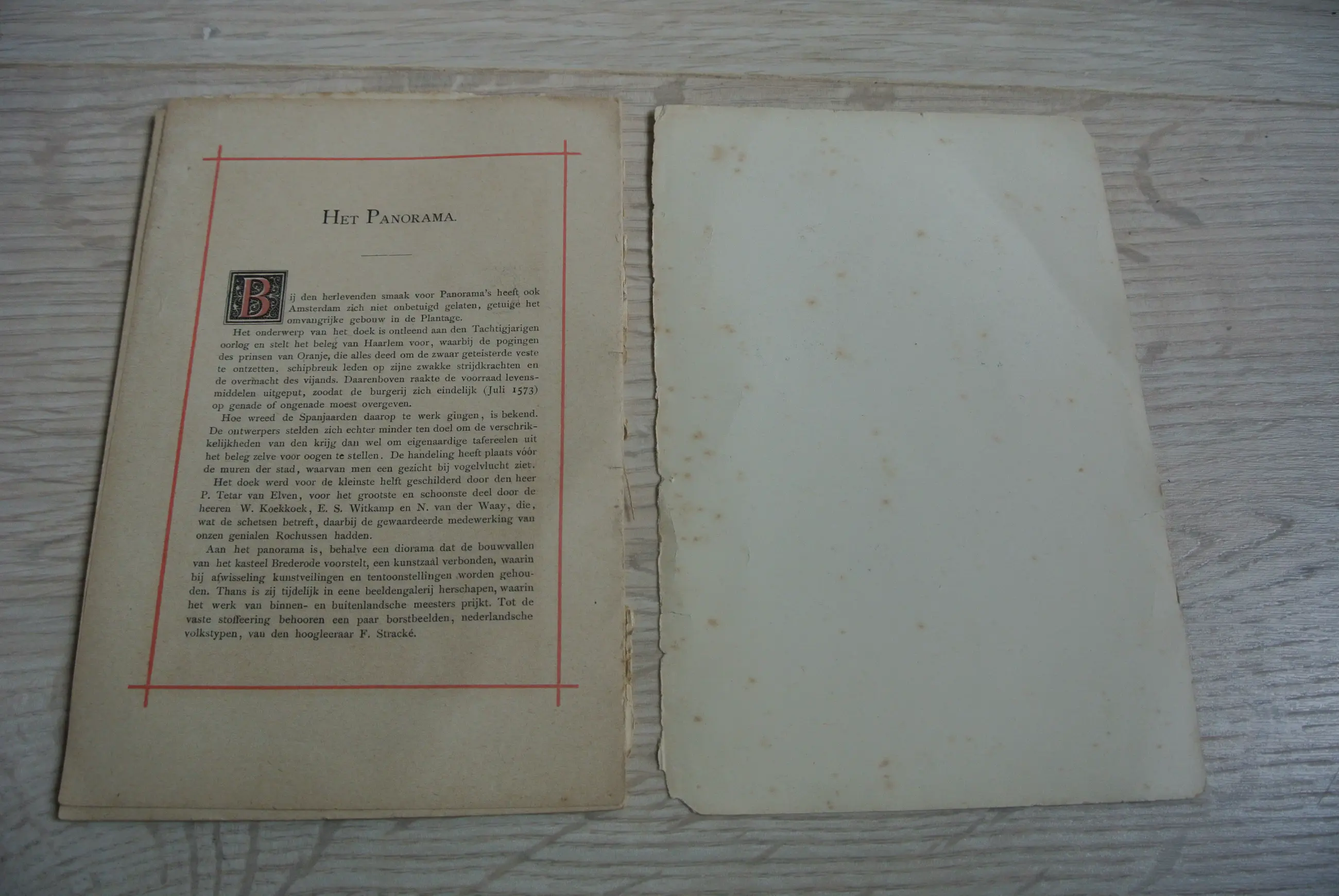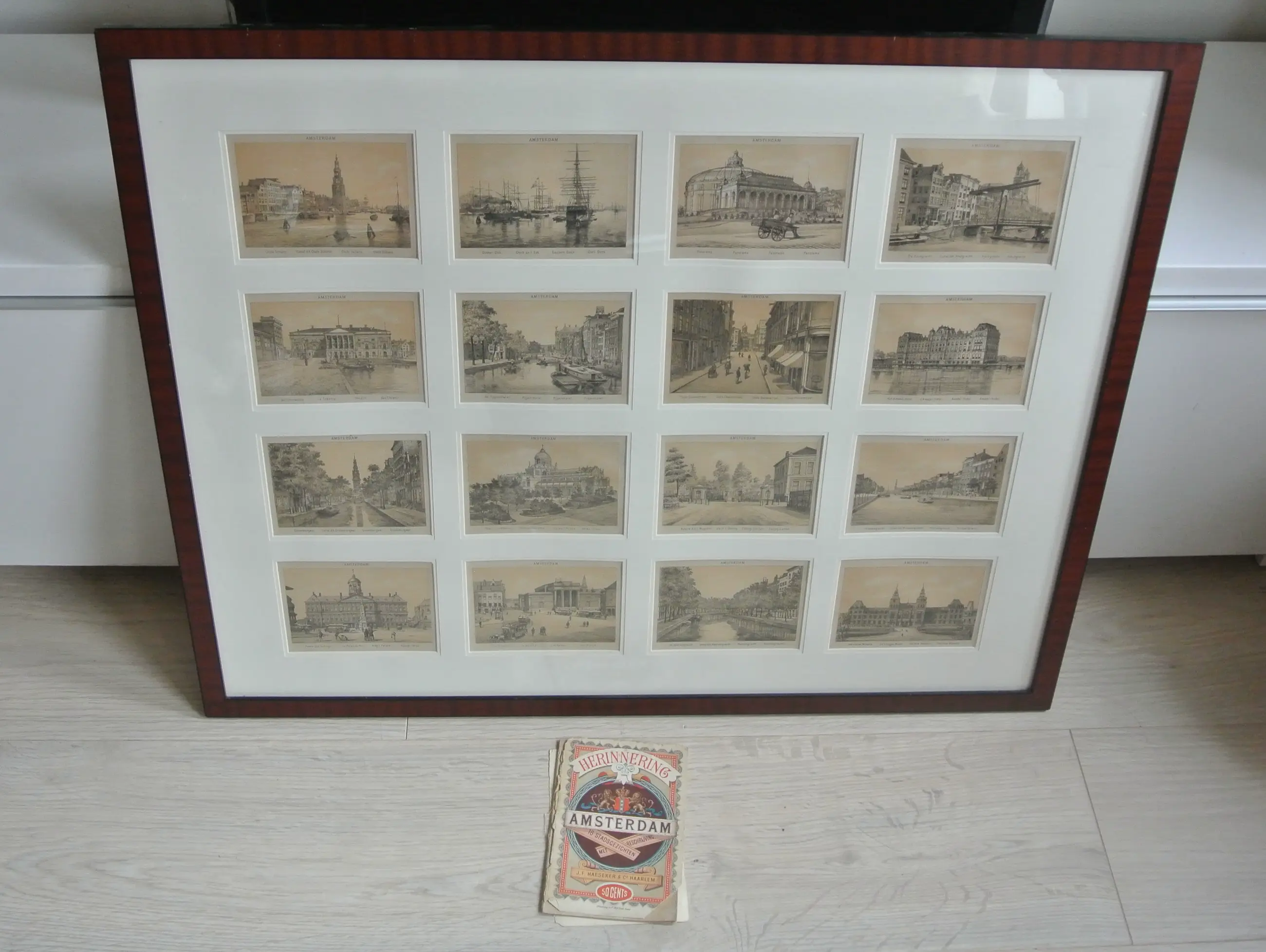 | Lithografieën : en passe-partout in zeer goede staat. Lijst: heeft wat beschadigingen Brochure: door ouderdom en de loop der jaren beschadigd, verkleurd en erg kwetsbaar (de kaft is los geraakt en binding is deels los). Zie foto's. | |