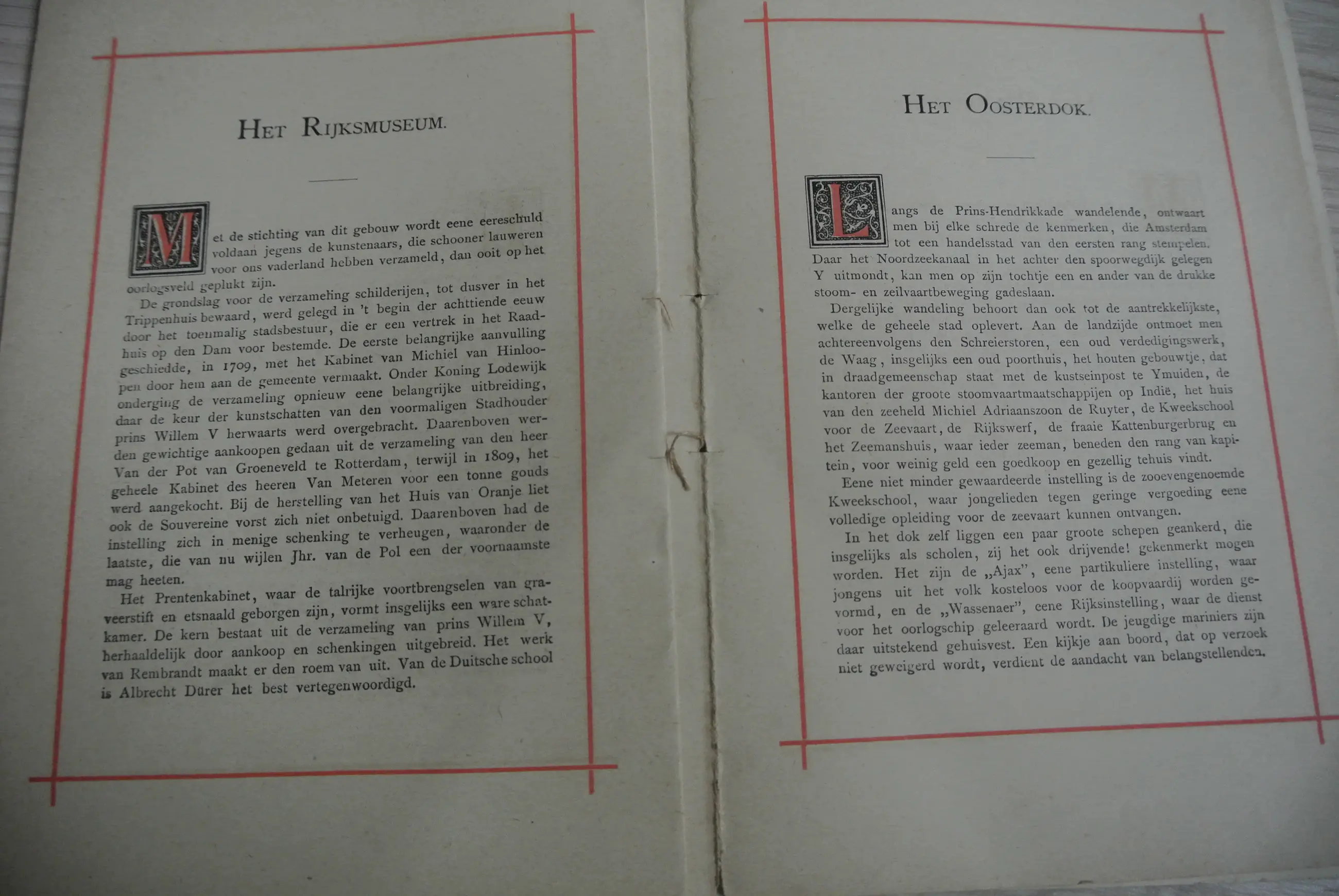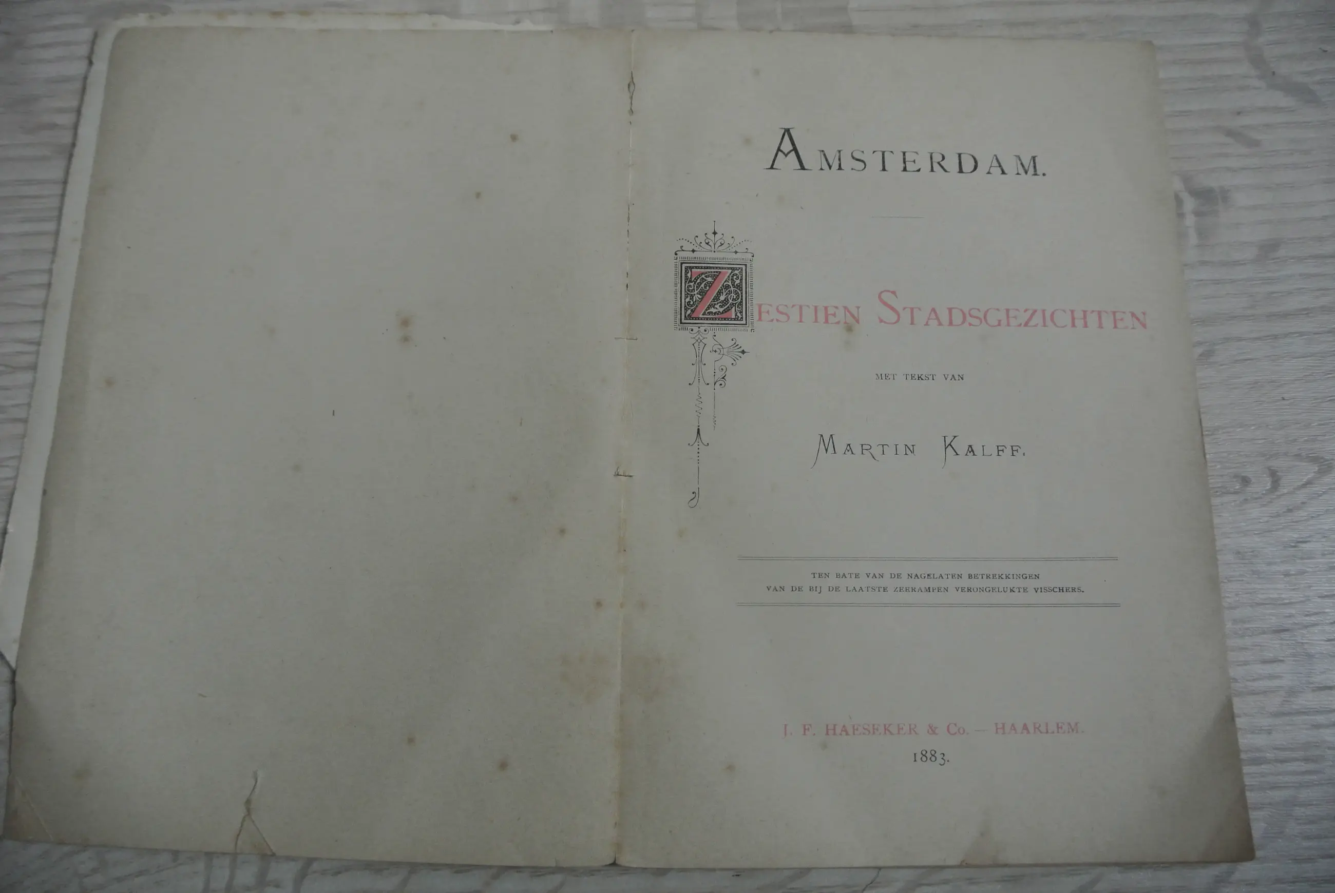 Bij het kavel zit ook de Brochure 'Herinnering aan Amsterdam 1883' met tekst van Martin Kalff. De brochure is "....ten bate van de nagelaten betrekkingen van de bij de laatste zeerampen verongelukte visschers.." Het betreft hier de vissersramp van Paessens-Moddergat (Friesland).