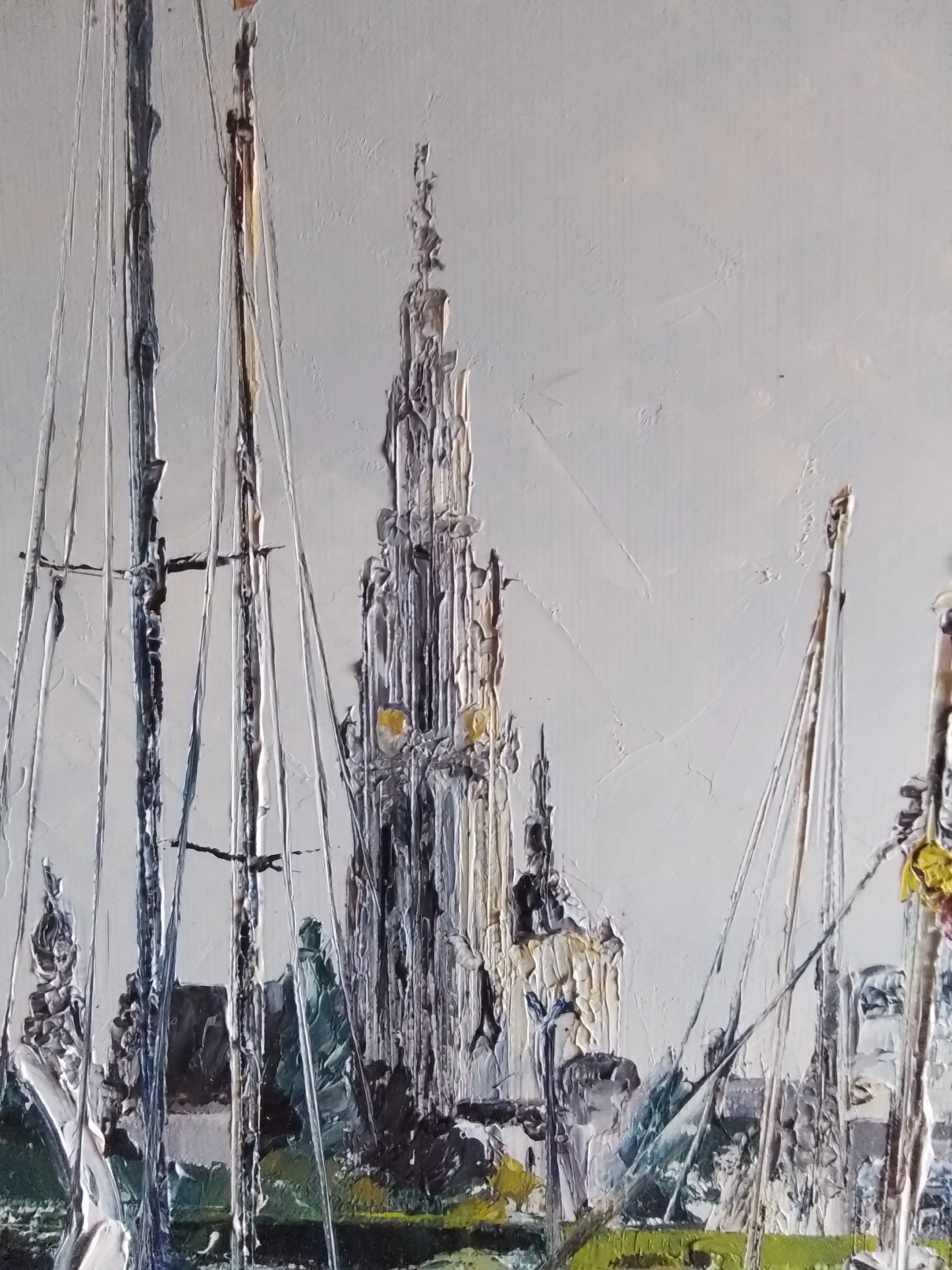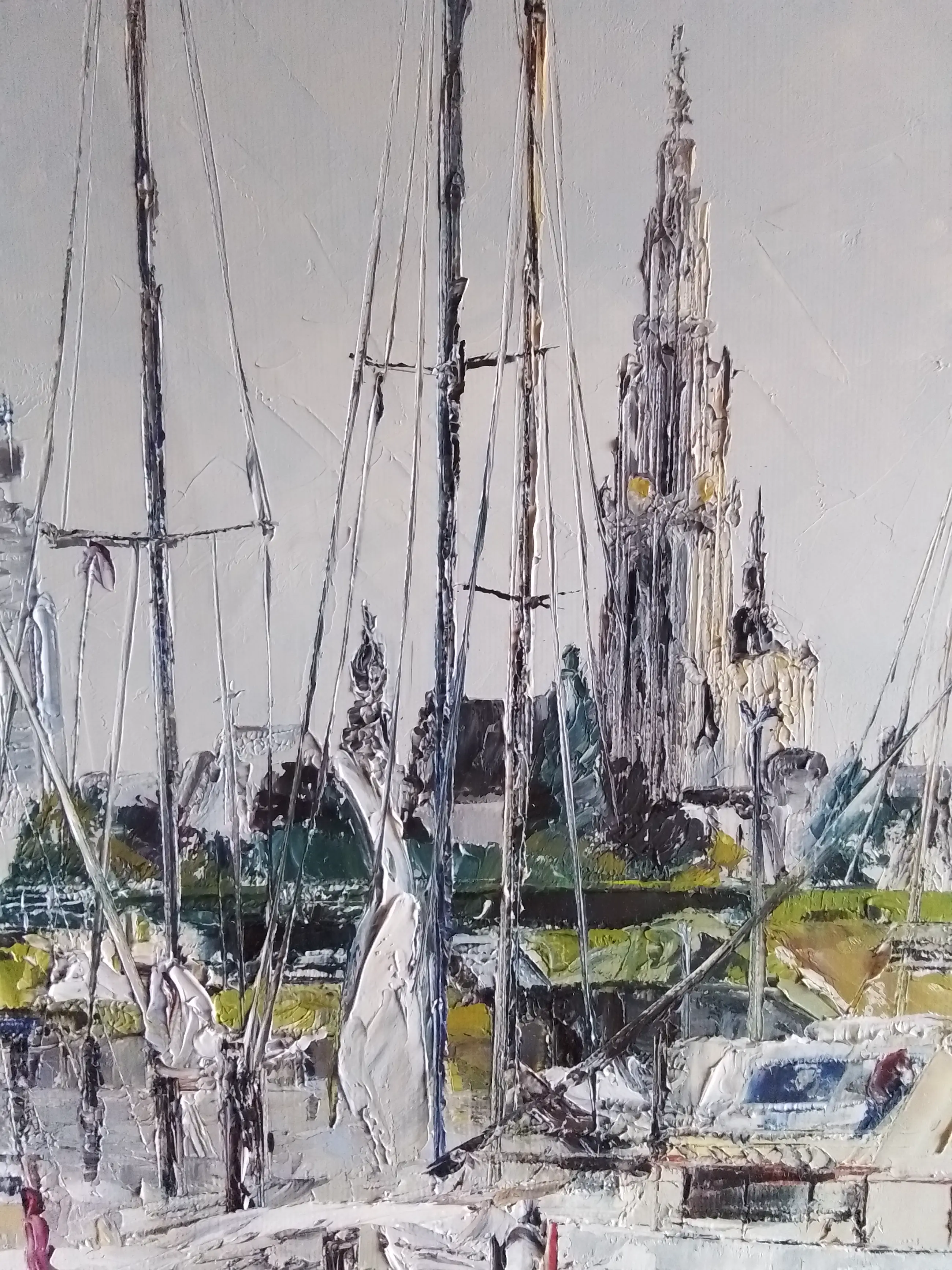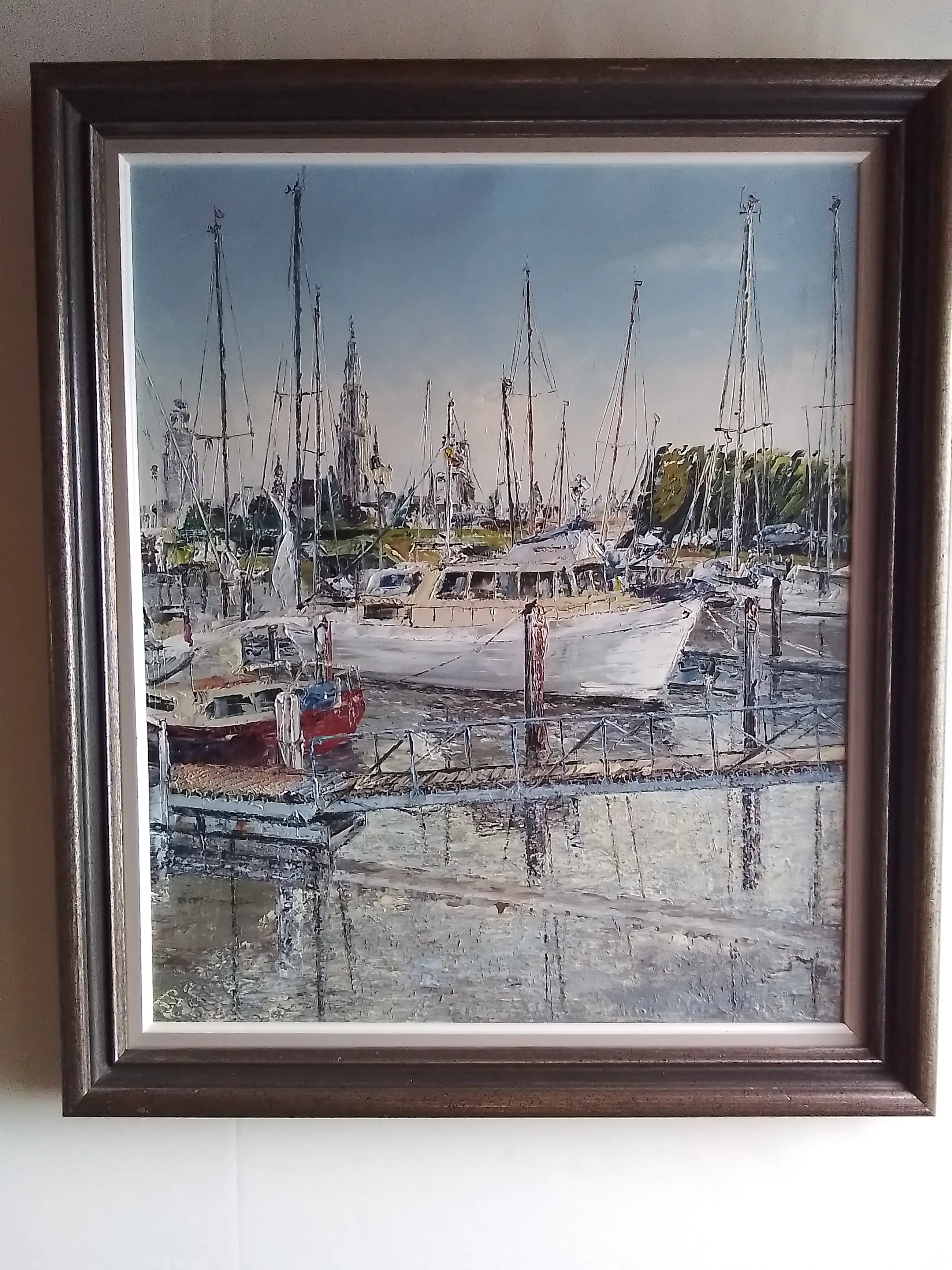 Prachtig schilderij van de jachthaven van Antwerpen,