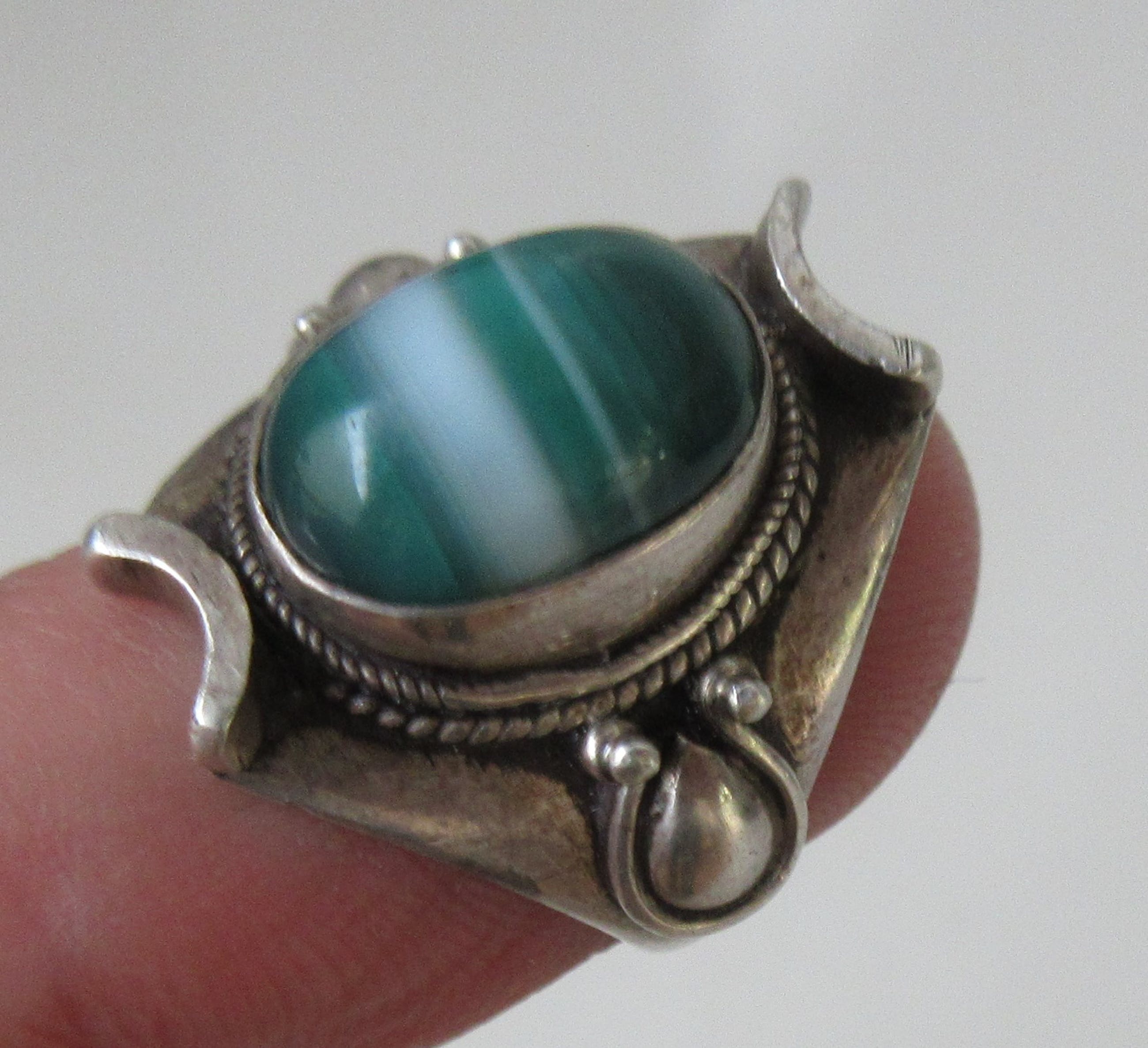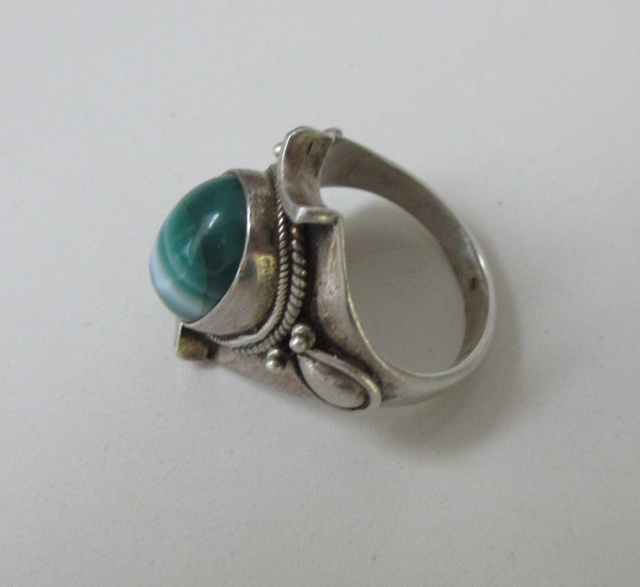 Zilveren 925 art deco ring met groene witte steen. In goede gebruikte conditie, keuren aanwezig maar versleten. De steen lijkt een scheur te hebben. De ringmaat is; 11= 51,25 mm