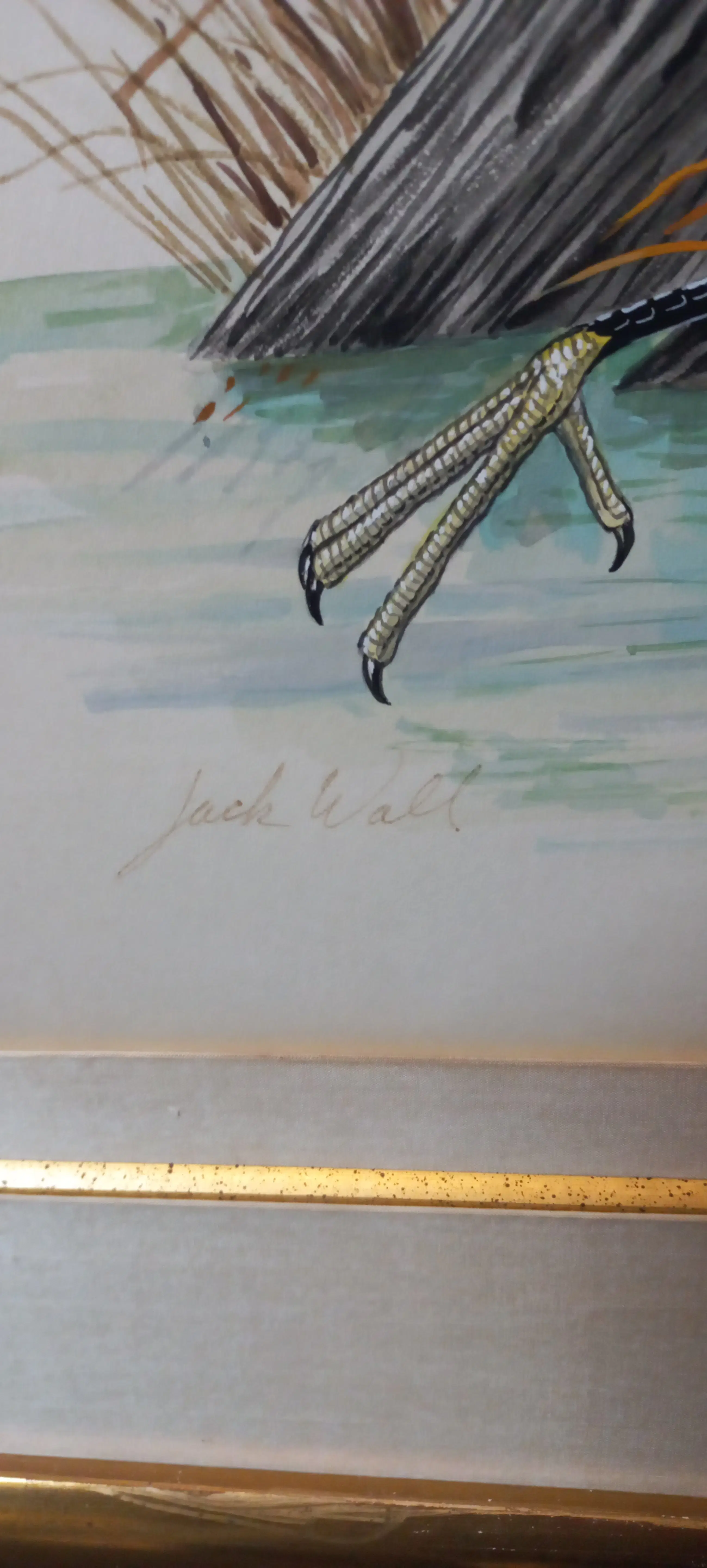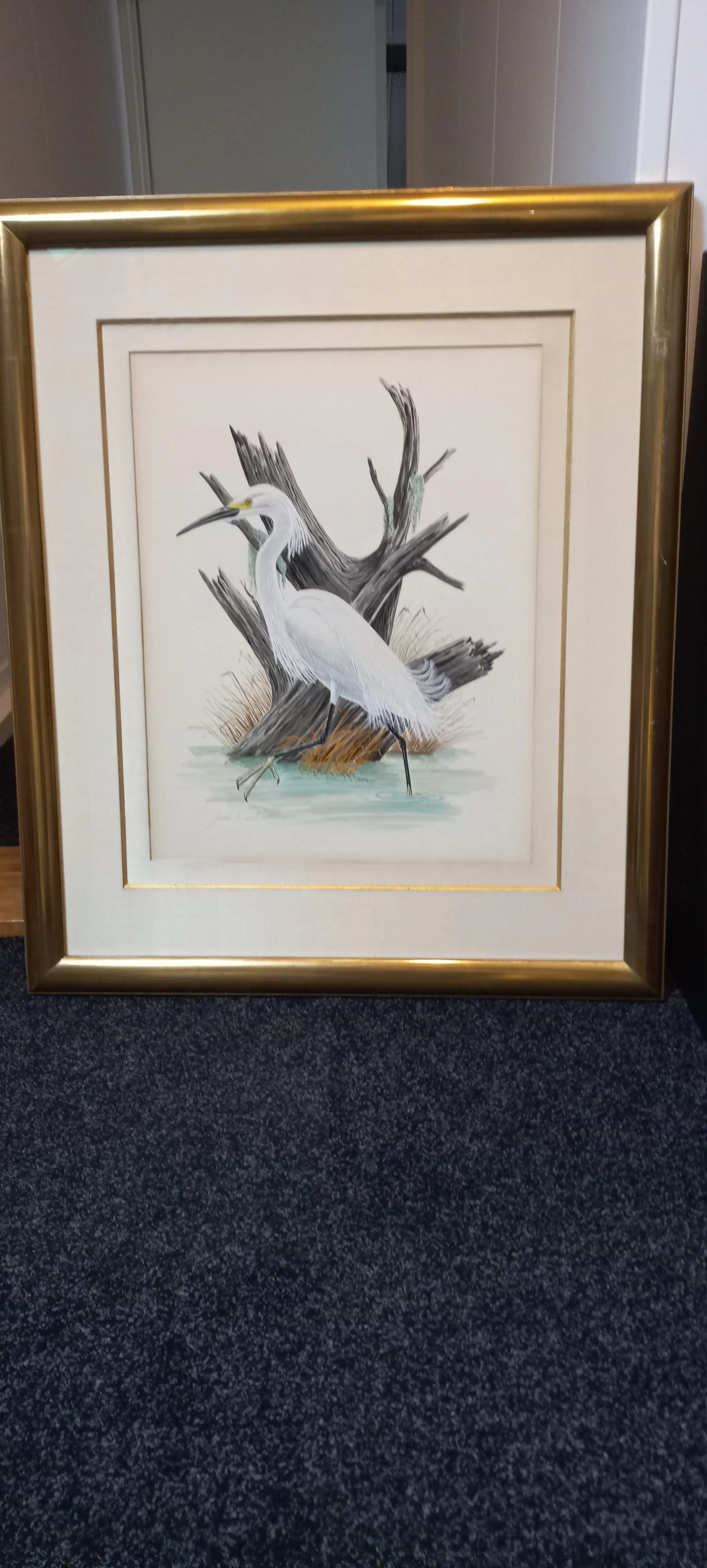 Tekening van zilverreiger gesigneerd met Jack Wall