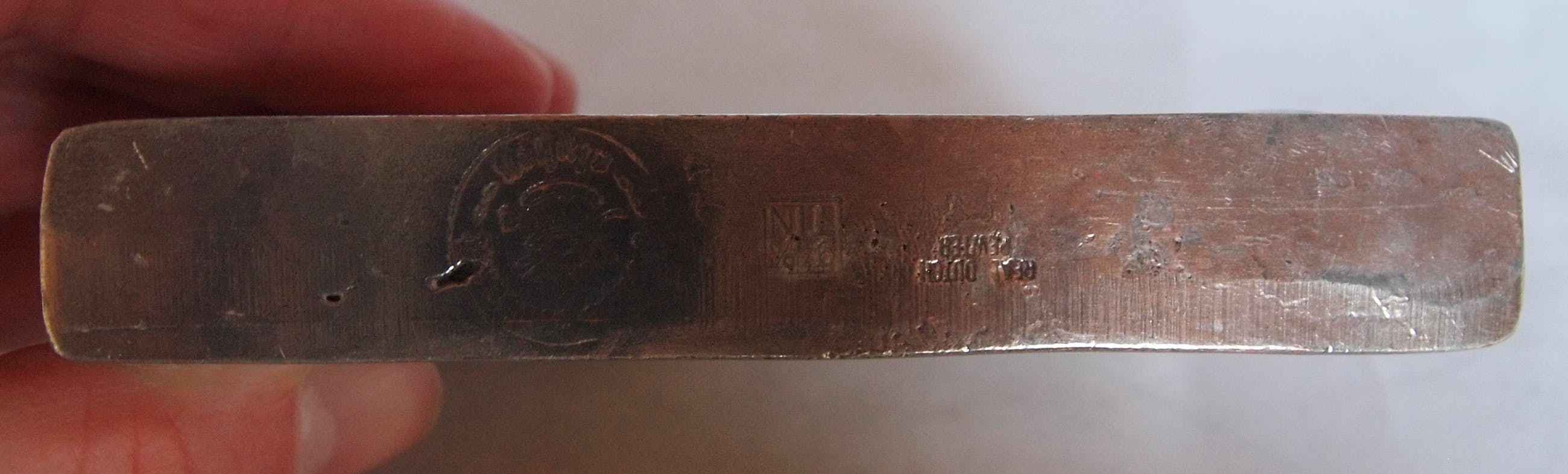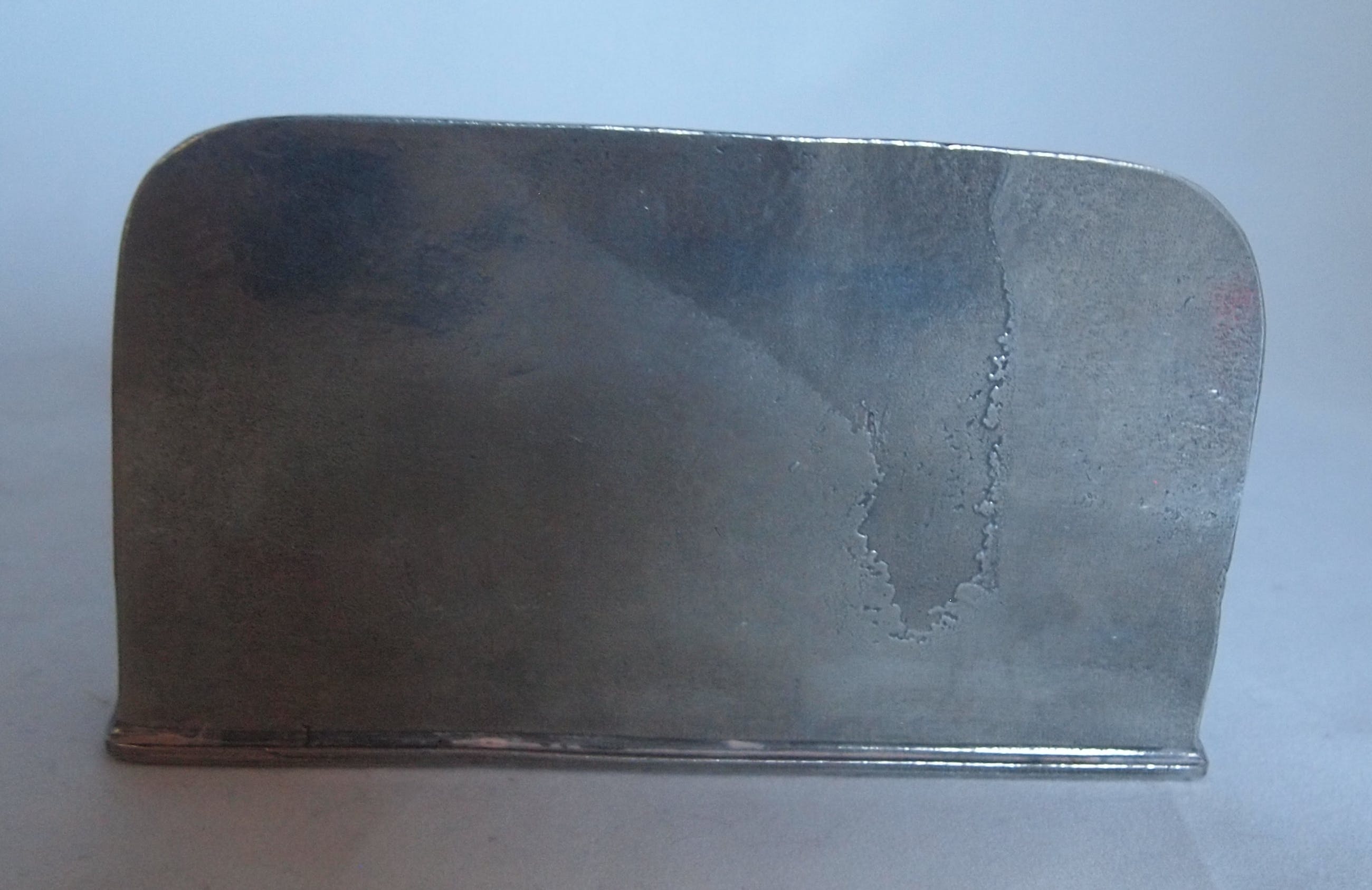 Zilvertinnen brievenhouder met de afbeelding van een eend uitgevoerd bij 't Oude Ambacht uit Alphen a/d Rijn. Gemerkt aan deo nderzijde.