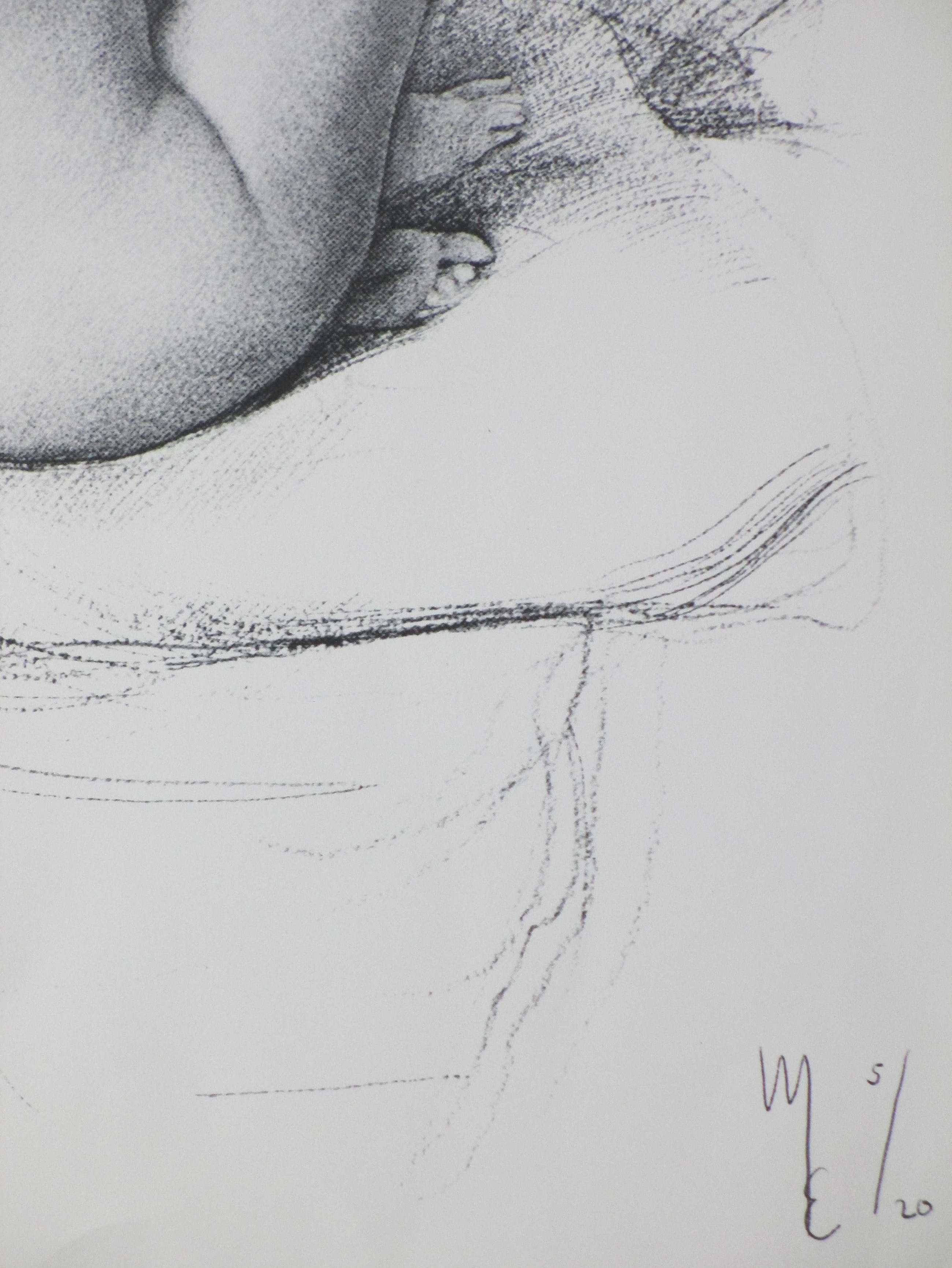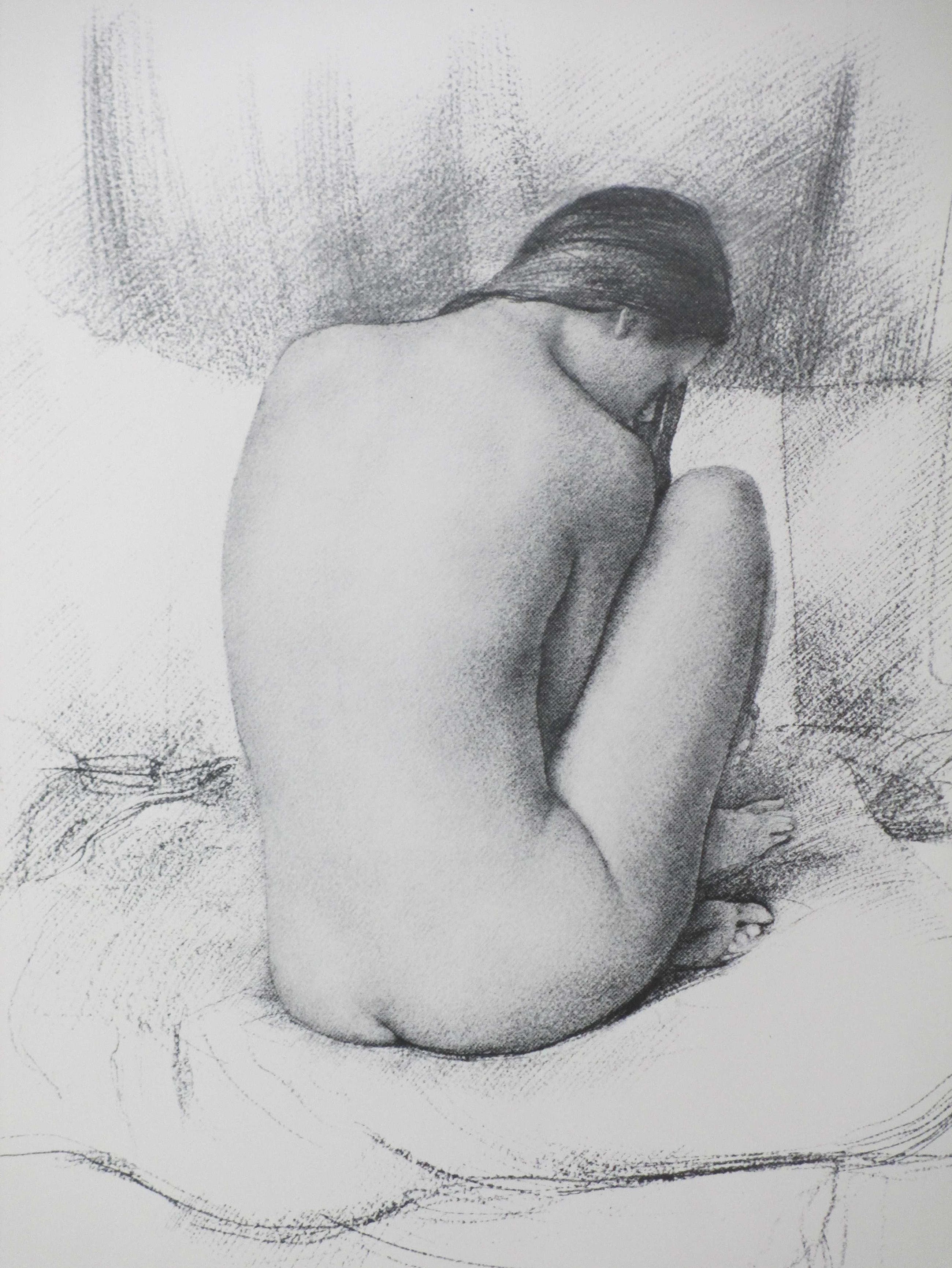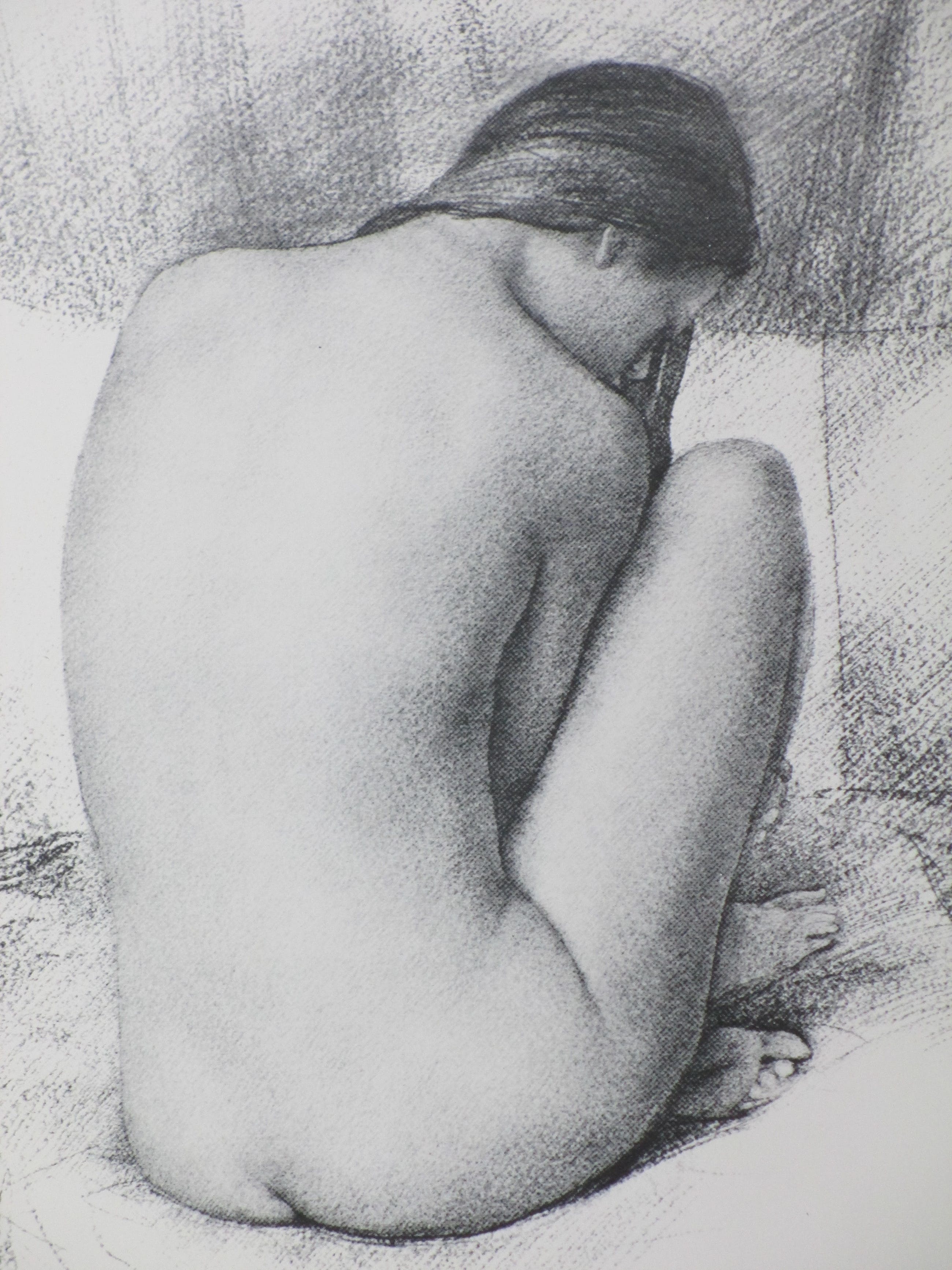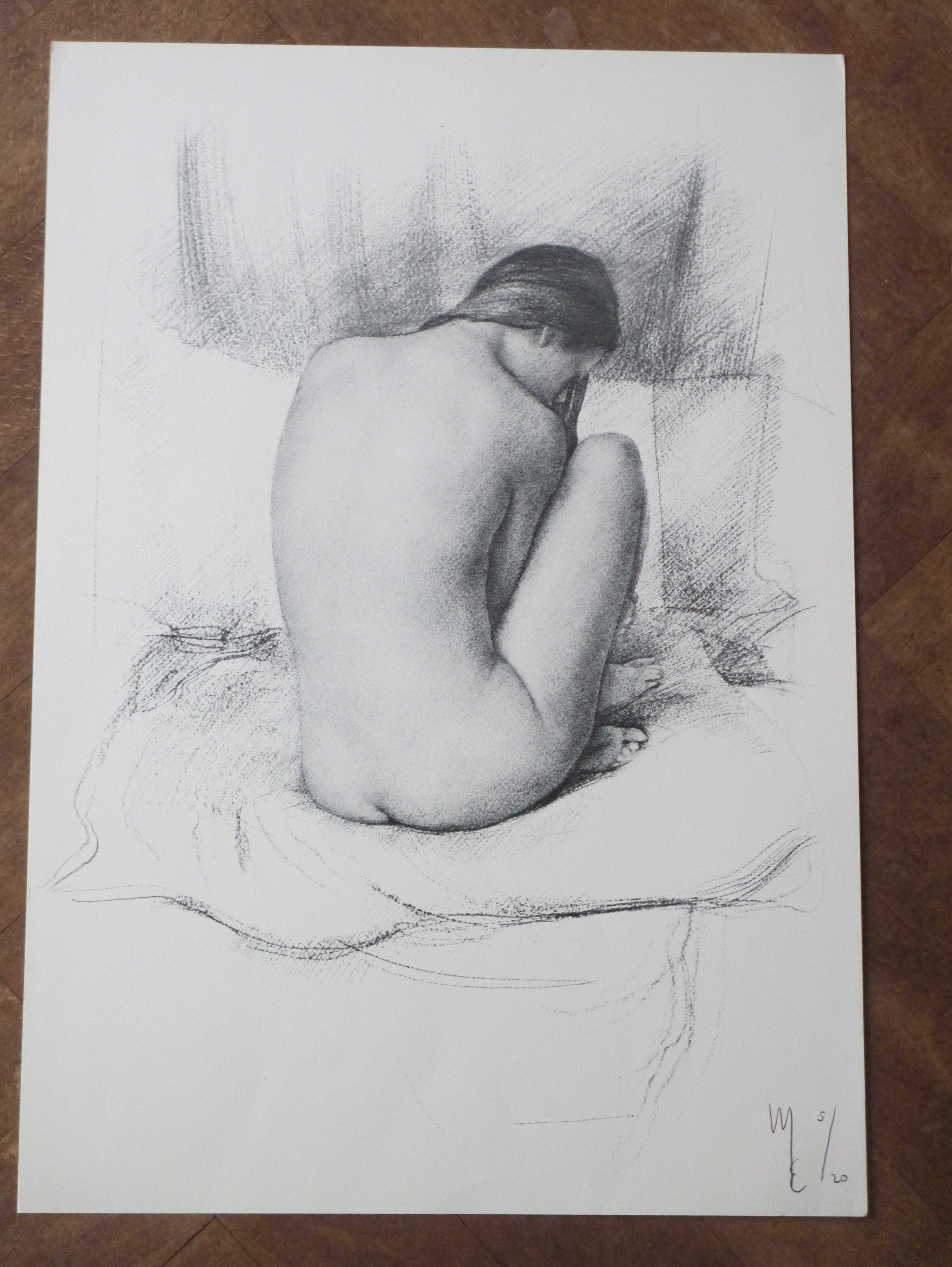 Onbekend - Zittend Naakt - Monogram M.E. - Litho - Verkocht