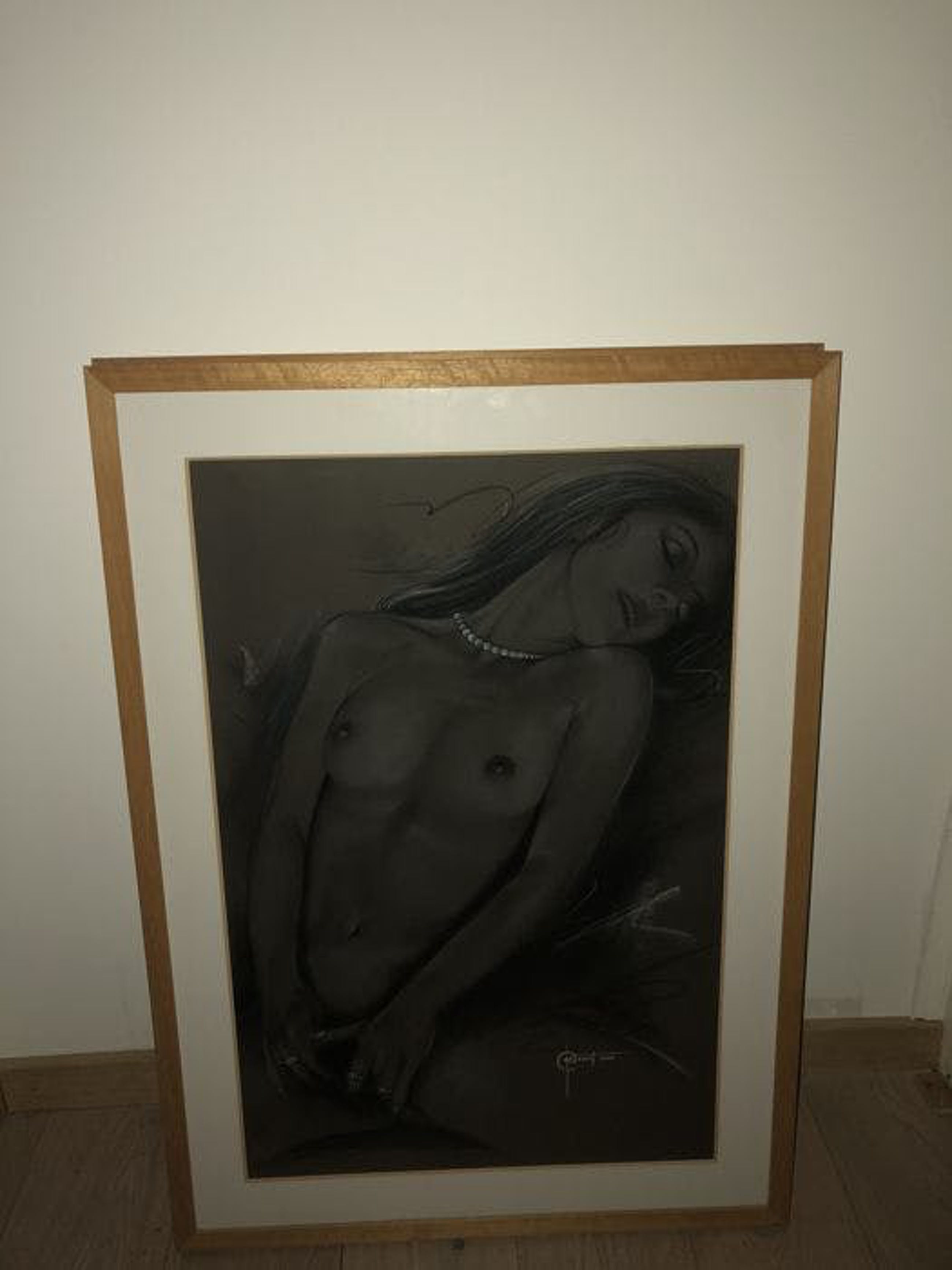 Aantrekkelijke vrouw die duidelijk van het leven aan het genieten is. Mooi strak ingelijst! Ik heb nog een soortgelijk werk op Kunstveiling staan. Mooie set als je ze samen koopt!