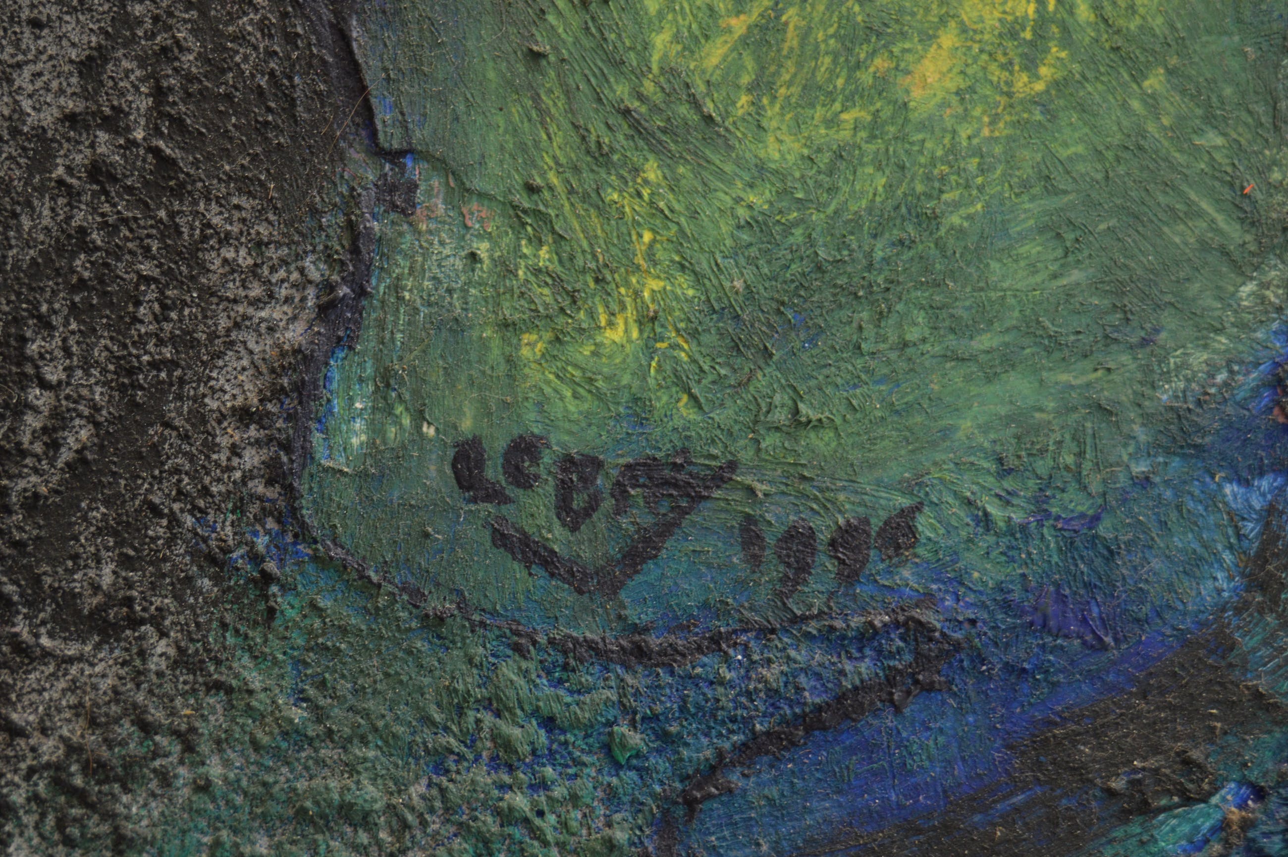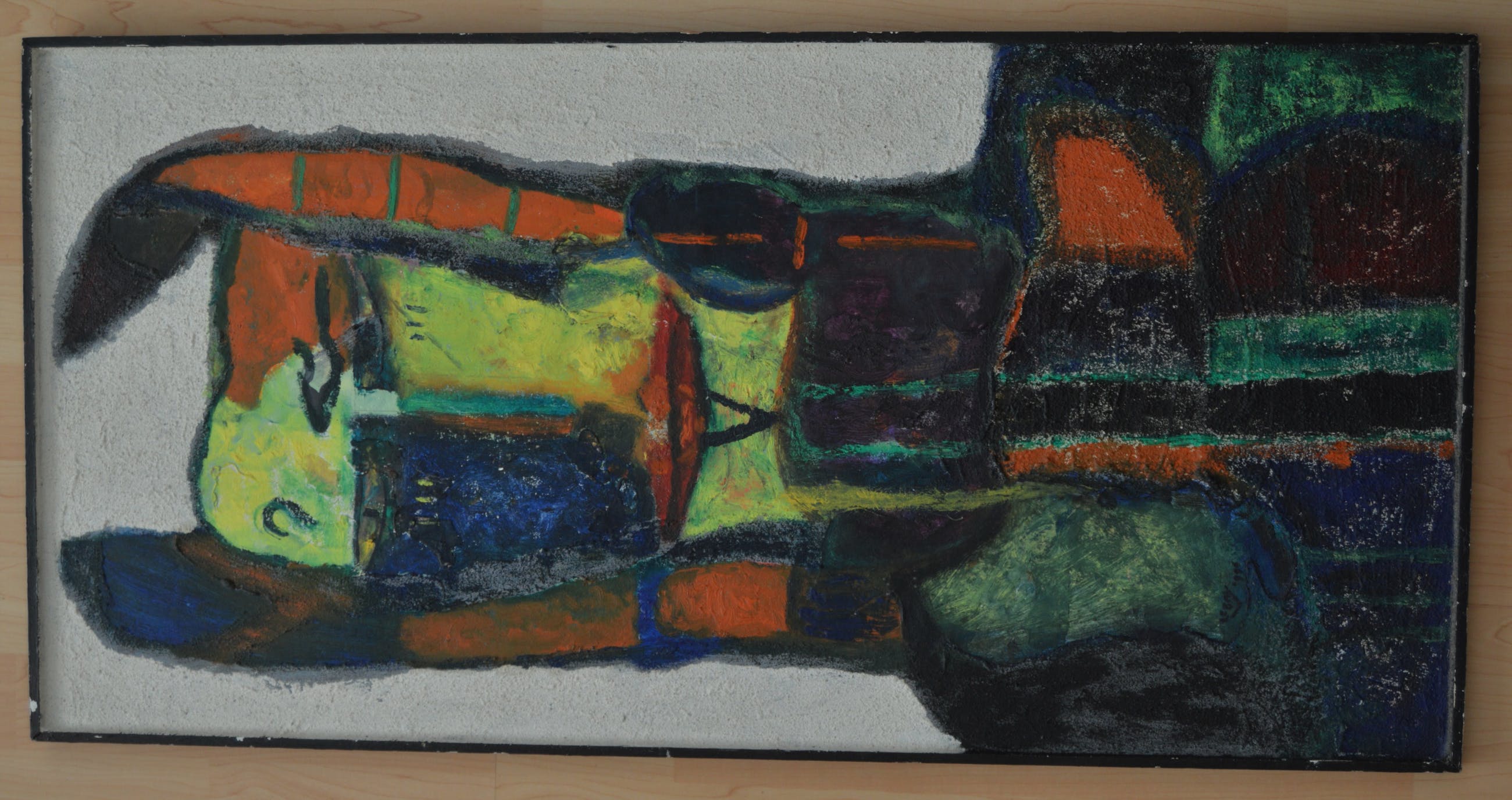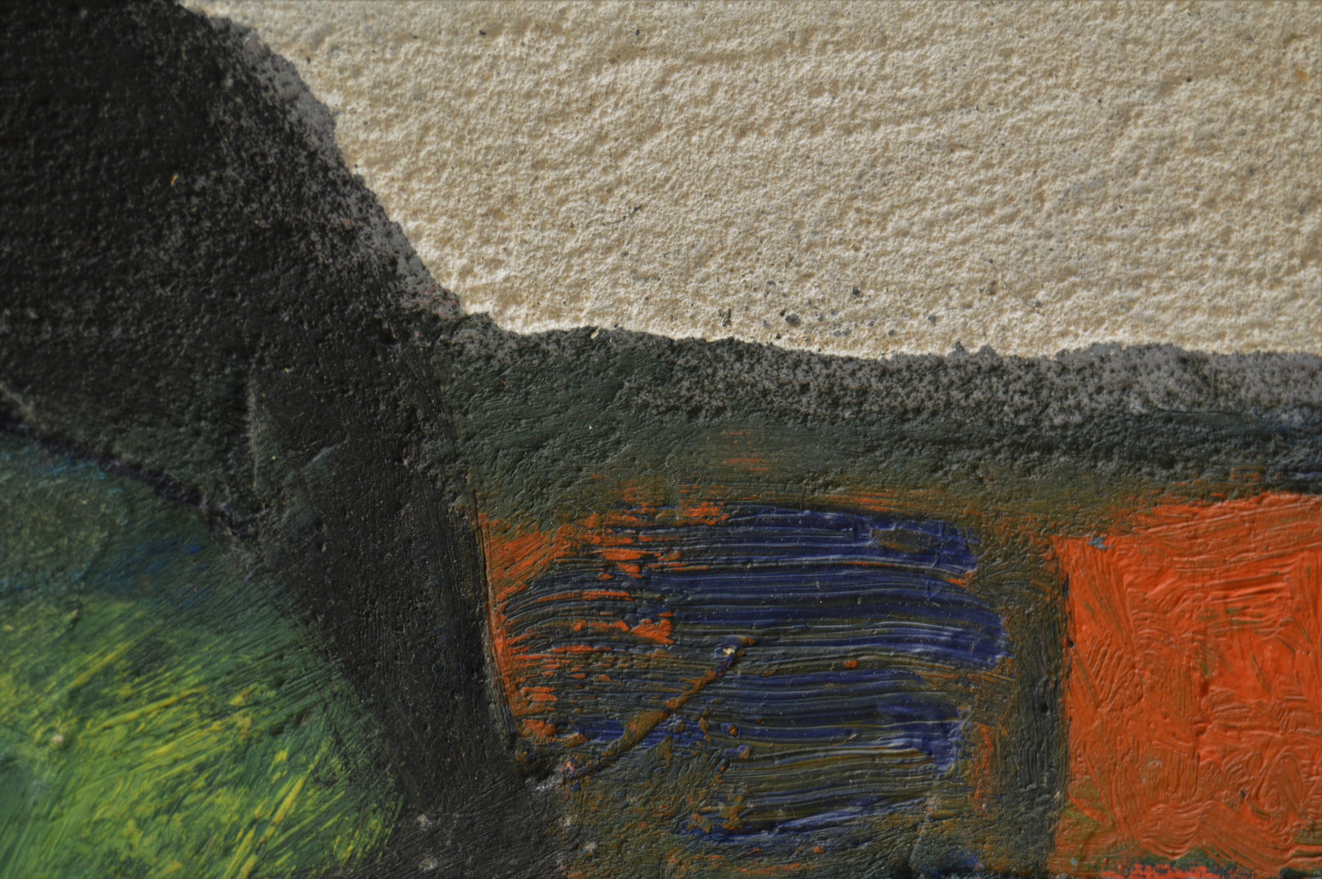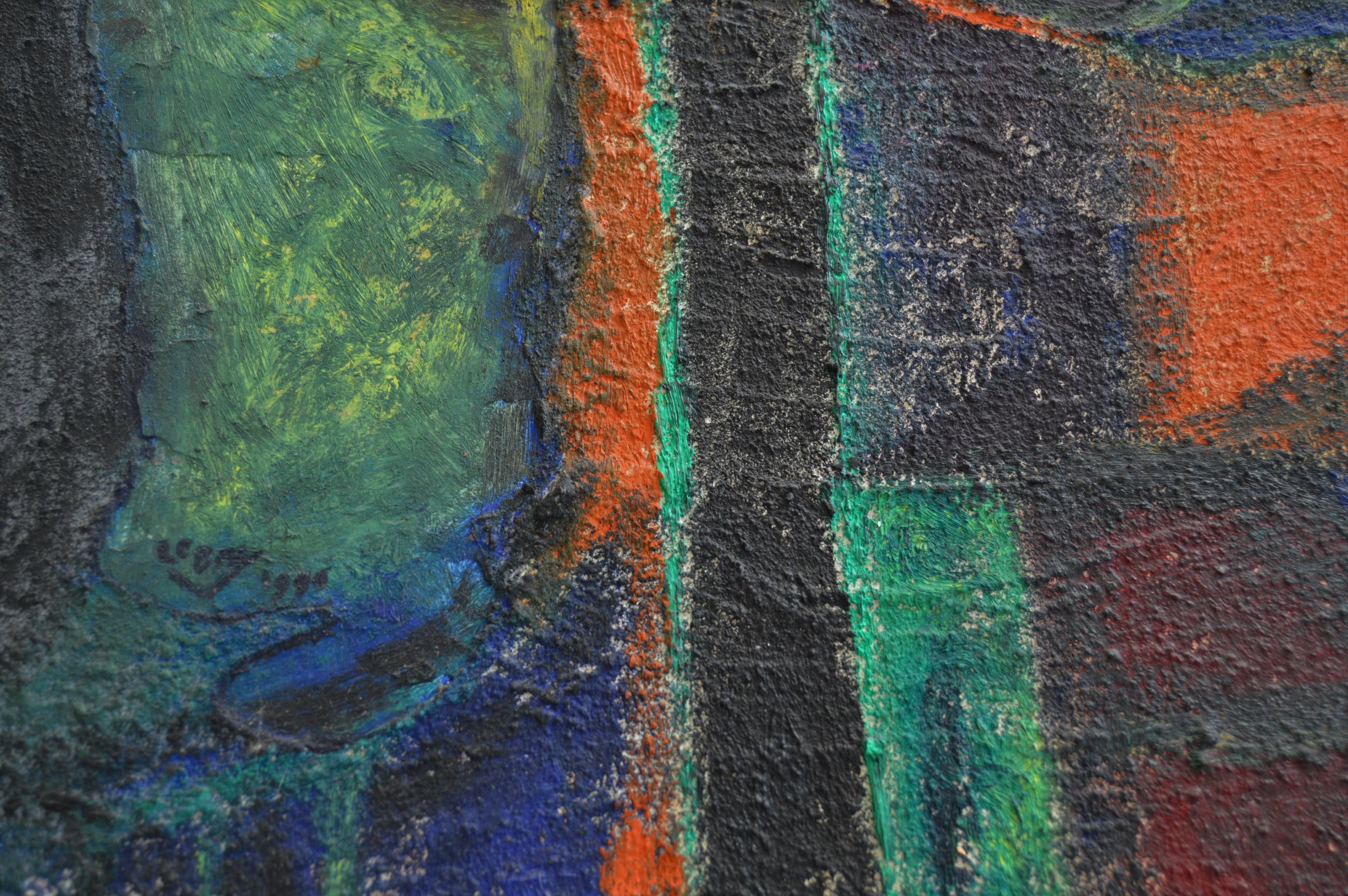 Mooi abstract werk in diverse technieken waaronden olieverf en zand! Ingelijst in dunne zwart geschilderde lijst. Gesigneerd en gedateerd. Helaas is het mij niet geheel duidelijk wie de kunstenaar is! Maar de foto's zeggen veel en misschien kent iemand de signatuur wel. Verzending aangetekend