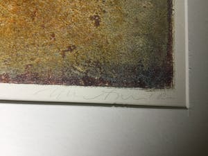 Mooi werk met een voor mij onleesbare signatuur. Het werk is gesigneerd en genummerd 1/1