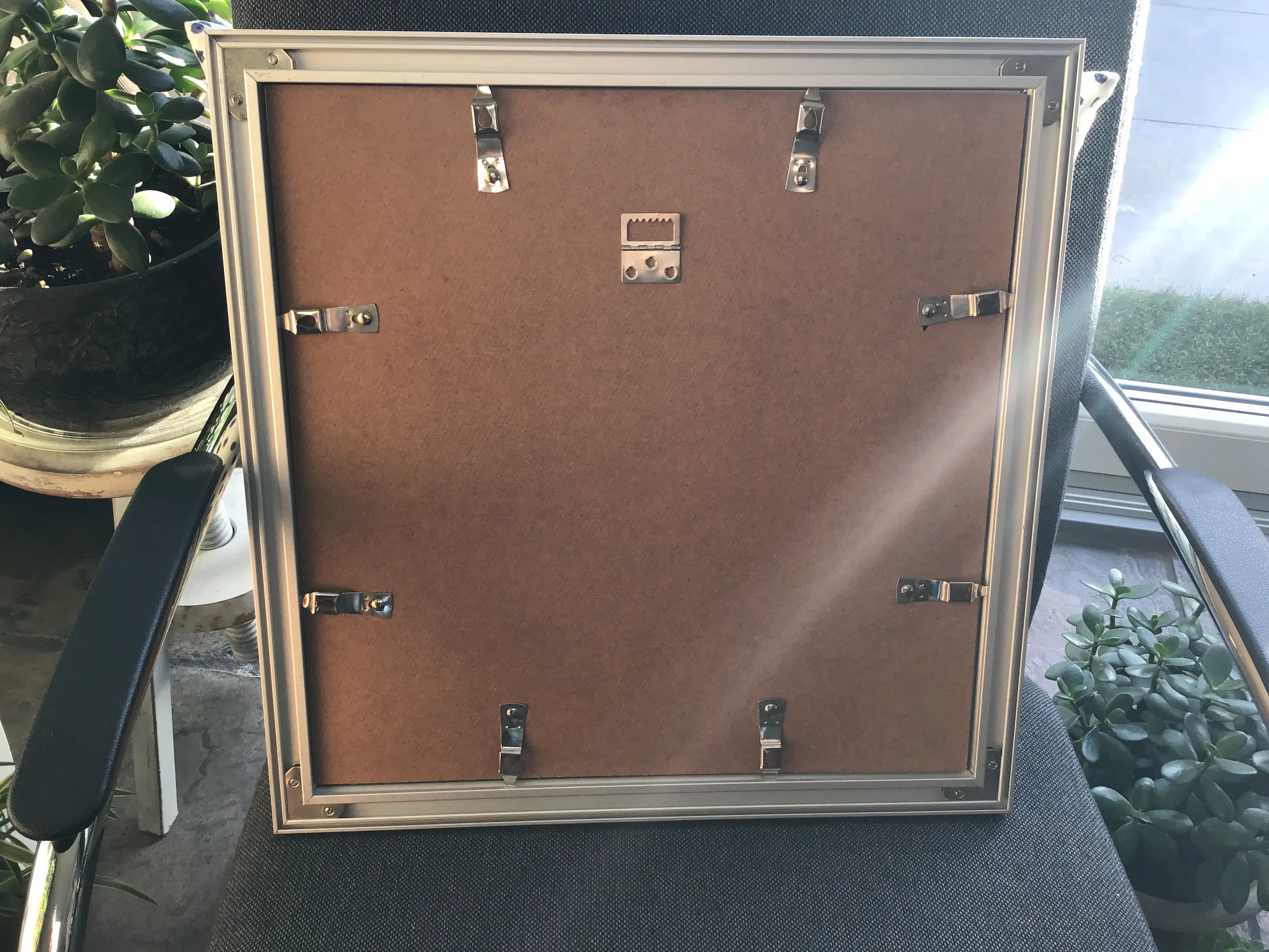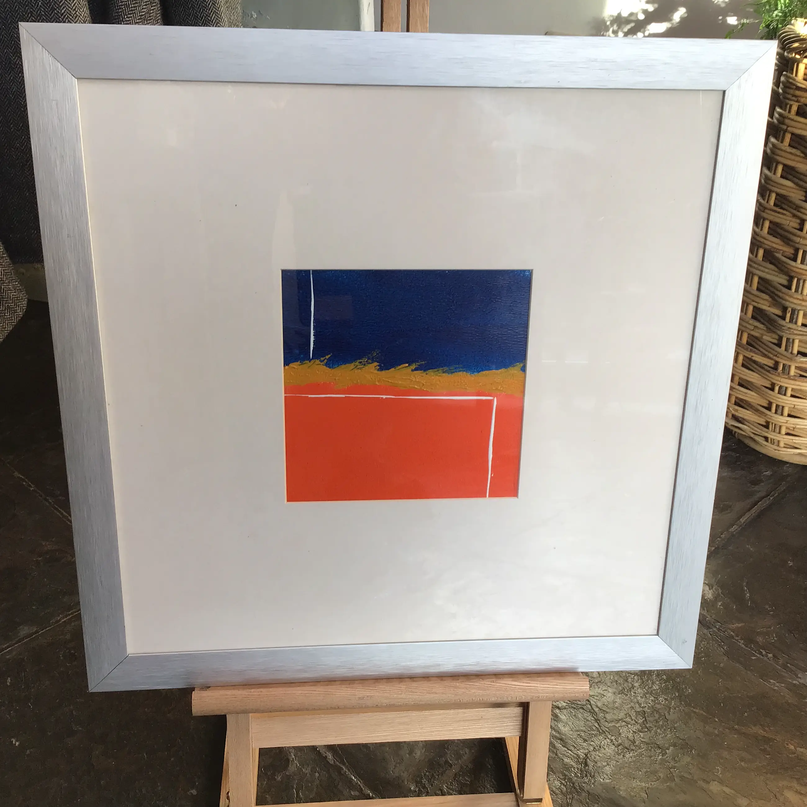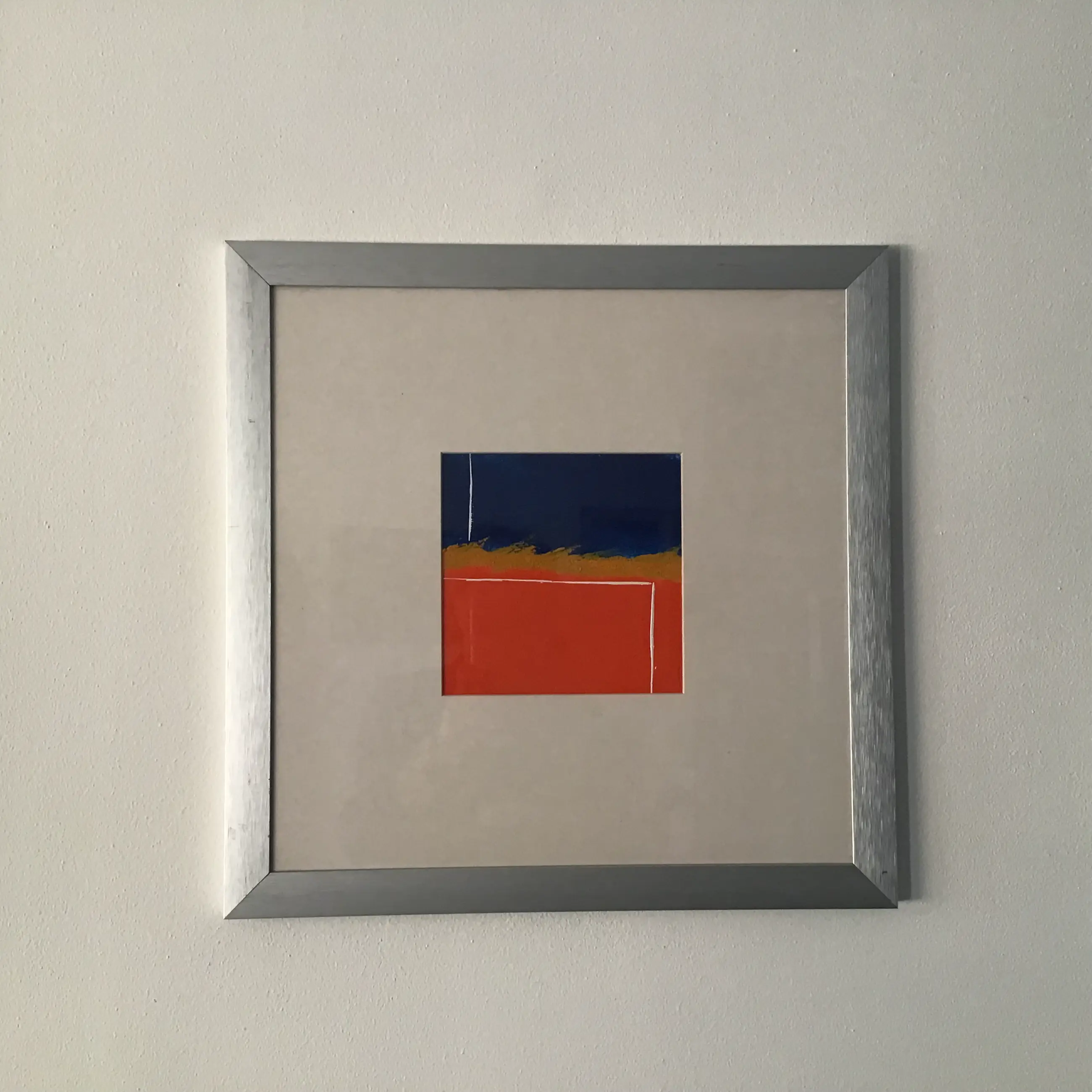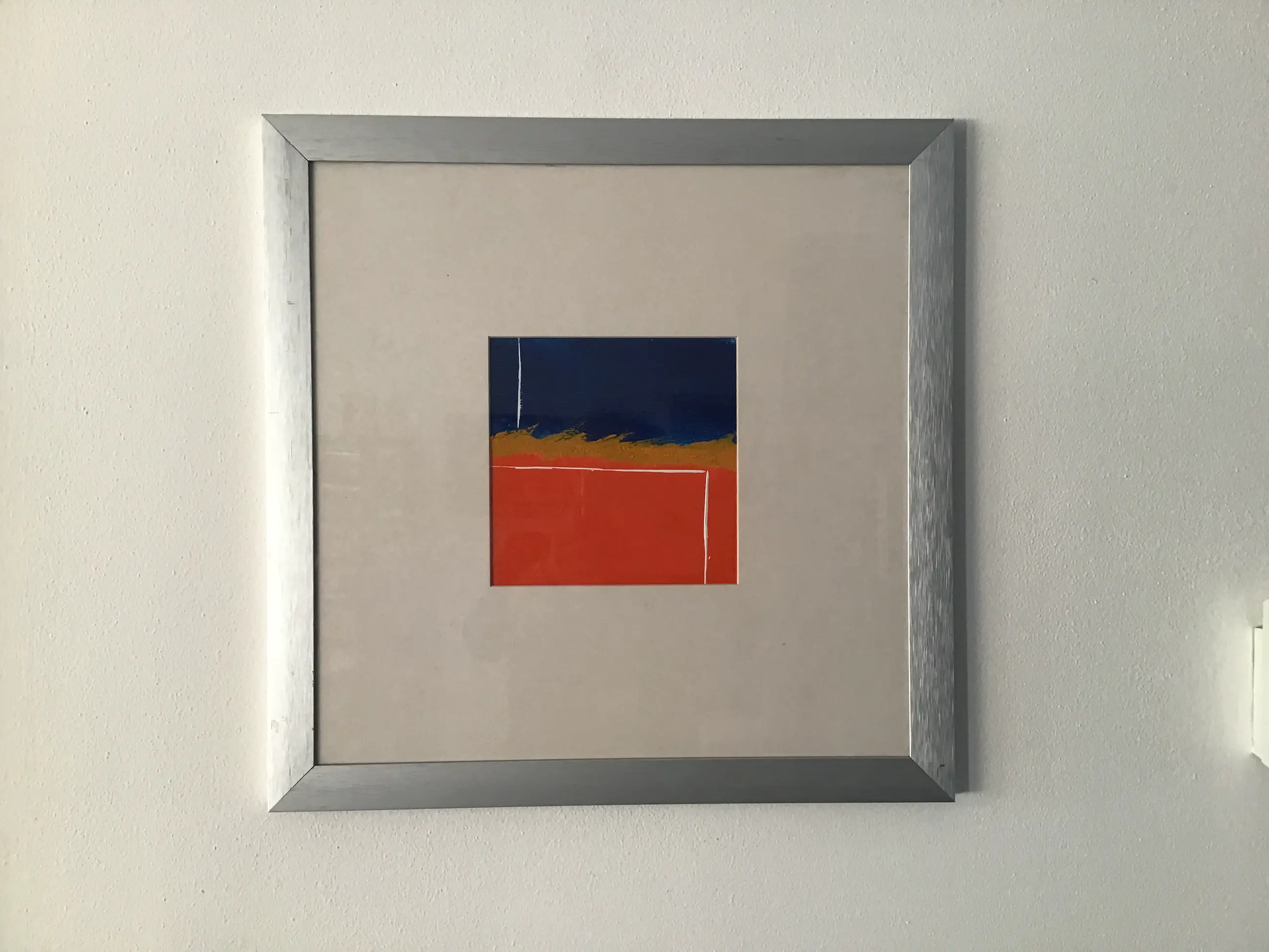 Gemengde techniek. Strak ingelijst in aluminium wissellijst. Perfect in orde.