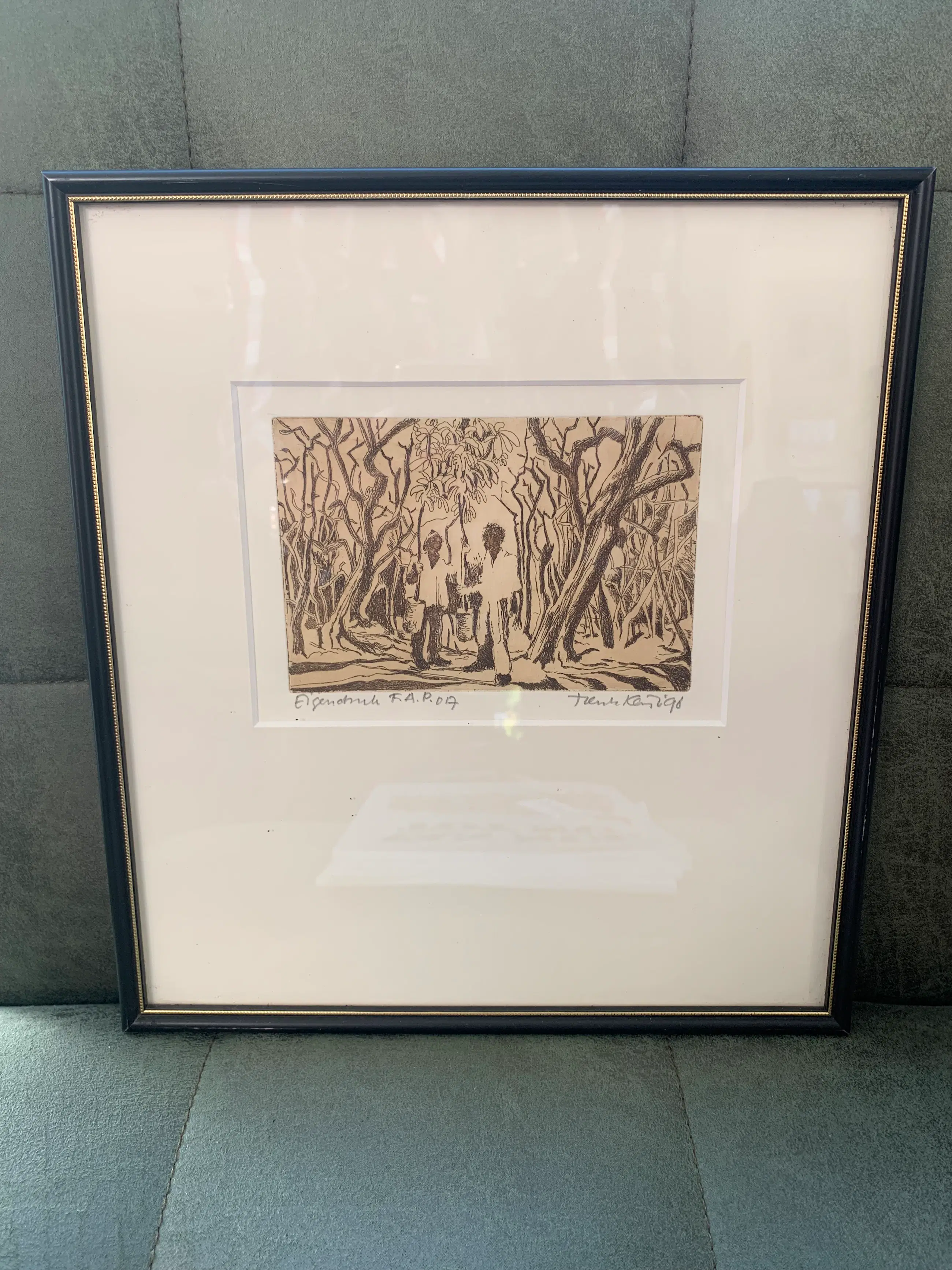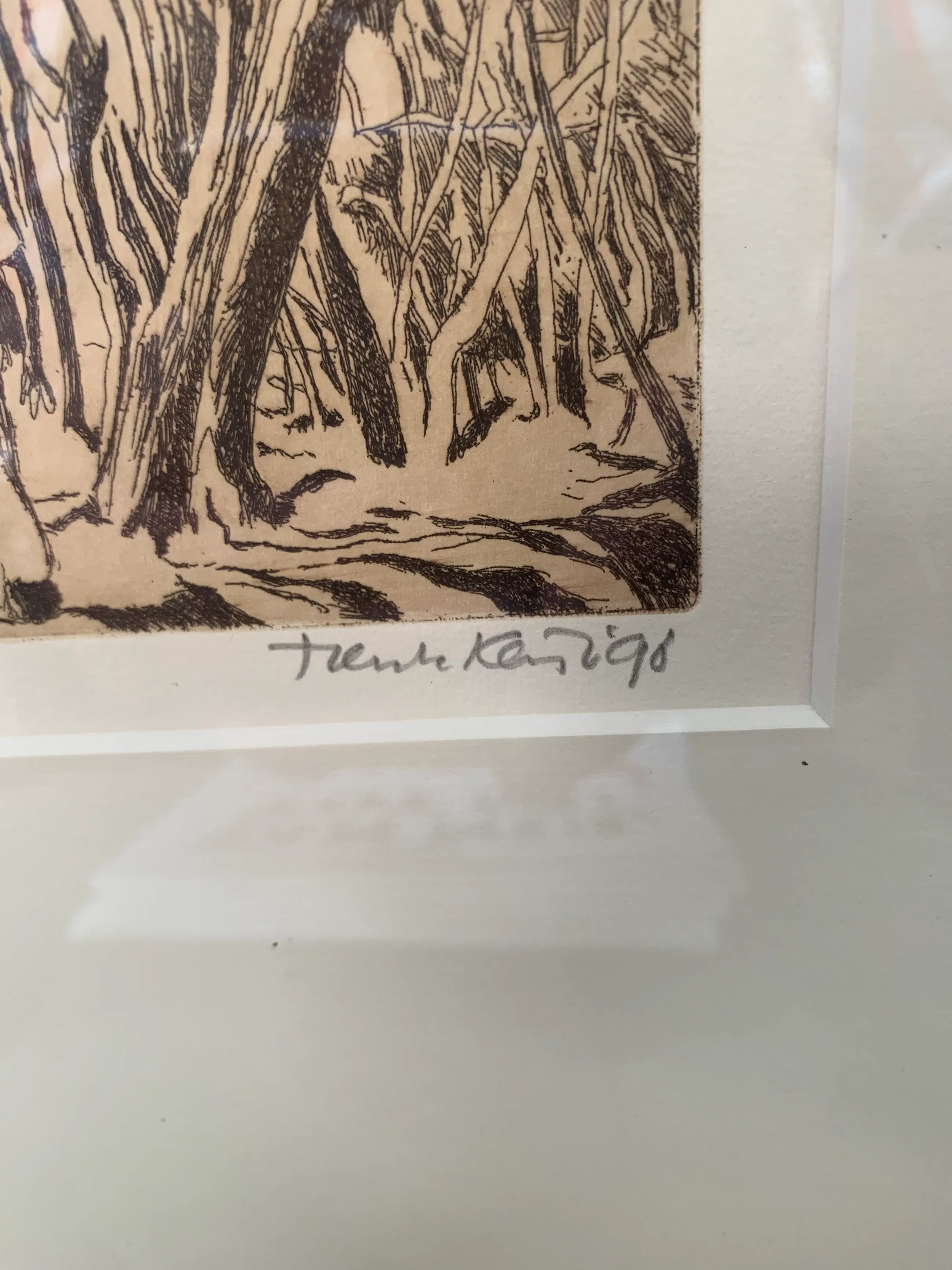 Keurige ets, keurig ingelijst maar niet leesbaar gesigneerde eigen druk. Waarschijnlijk staat er rechtsonder bij de signering ook het jaartal ‘96.