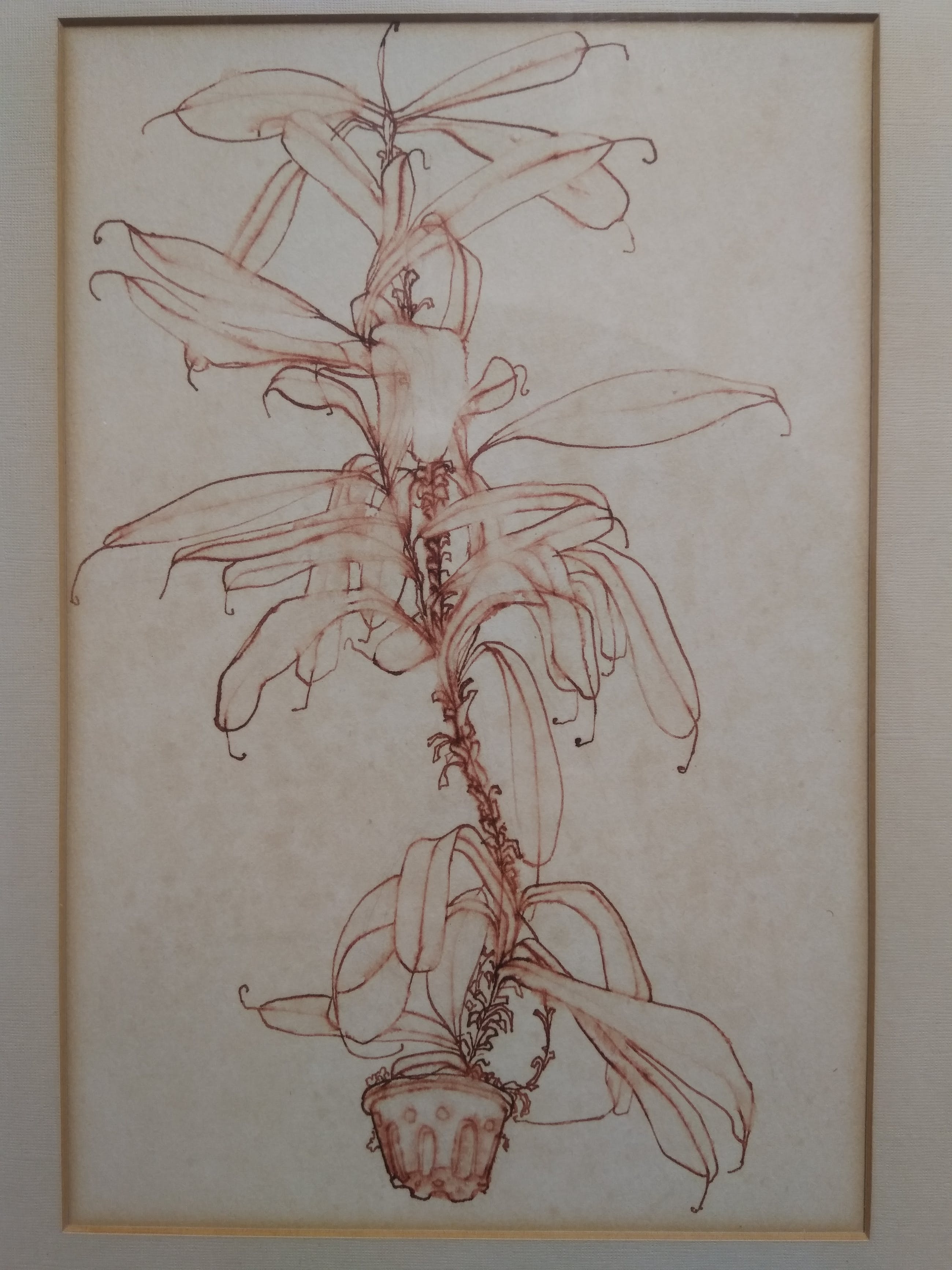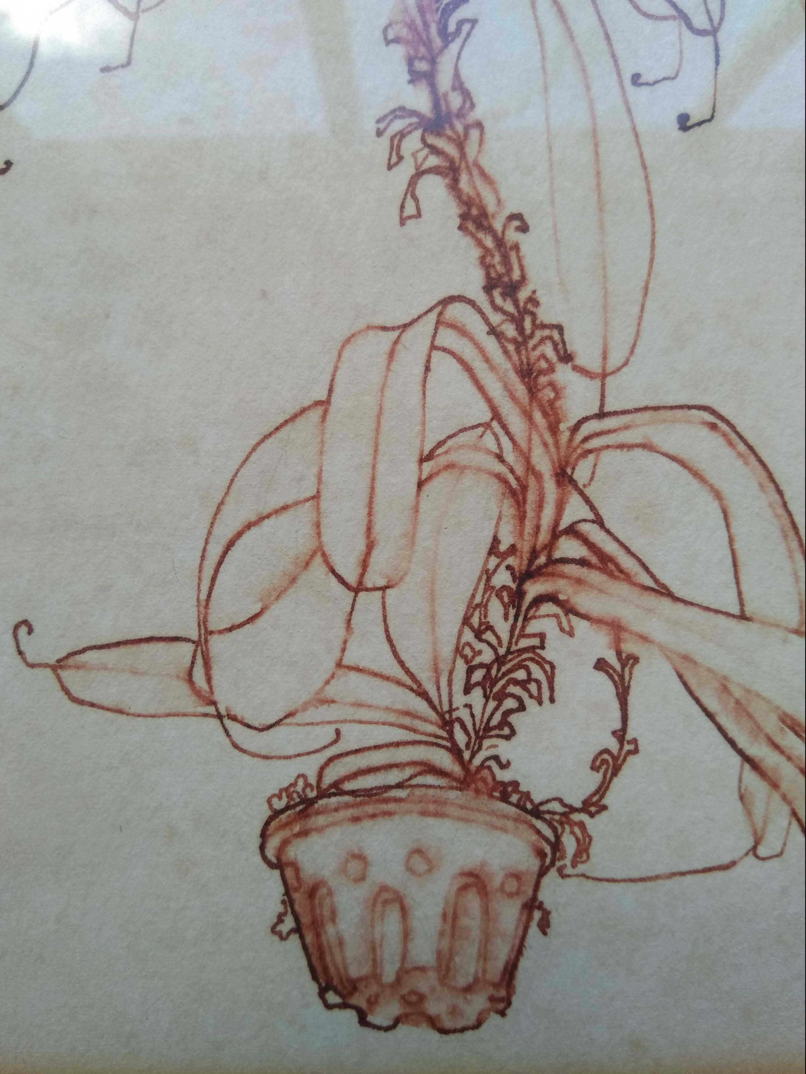 Onbekend - Z.T. ''Botanische tekening, in rode inkt.'' Gallerie Oud Ambacht, Muck Douma. - Verkocht