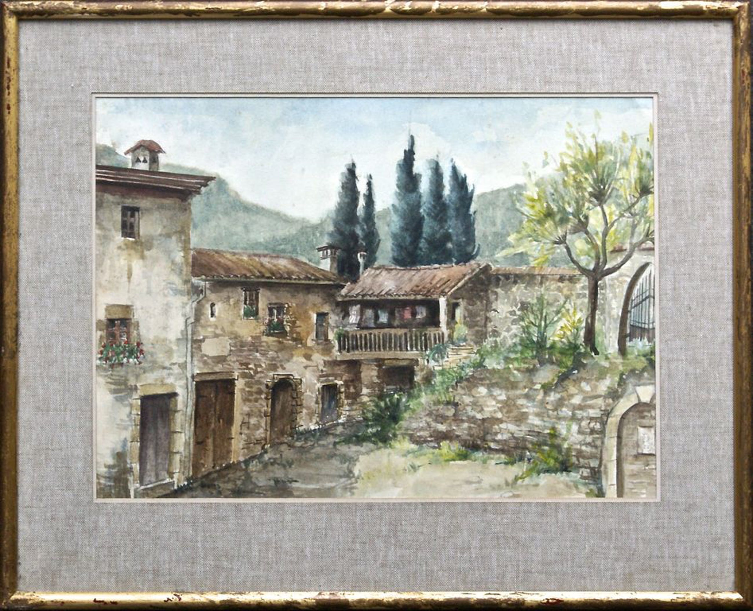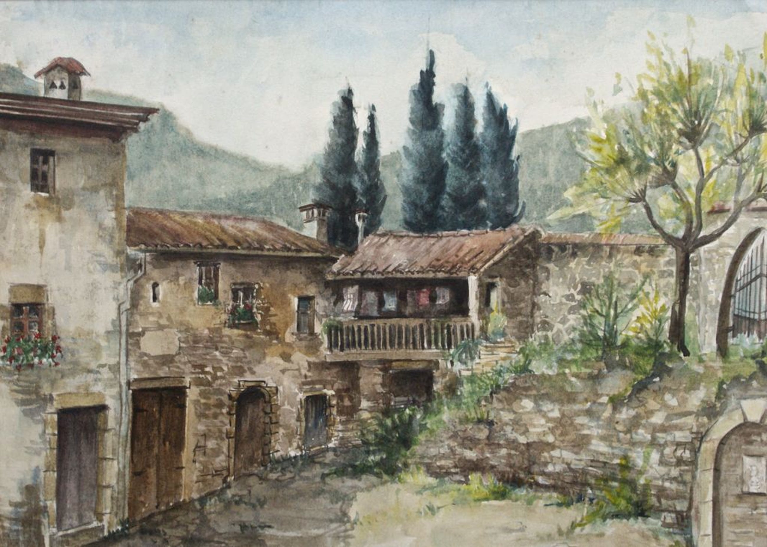 Onbekend - "Zuidfranse Court (Binnenhof) met Cypressen" - Verkocht