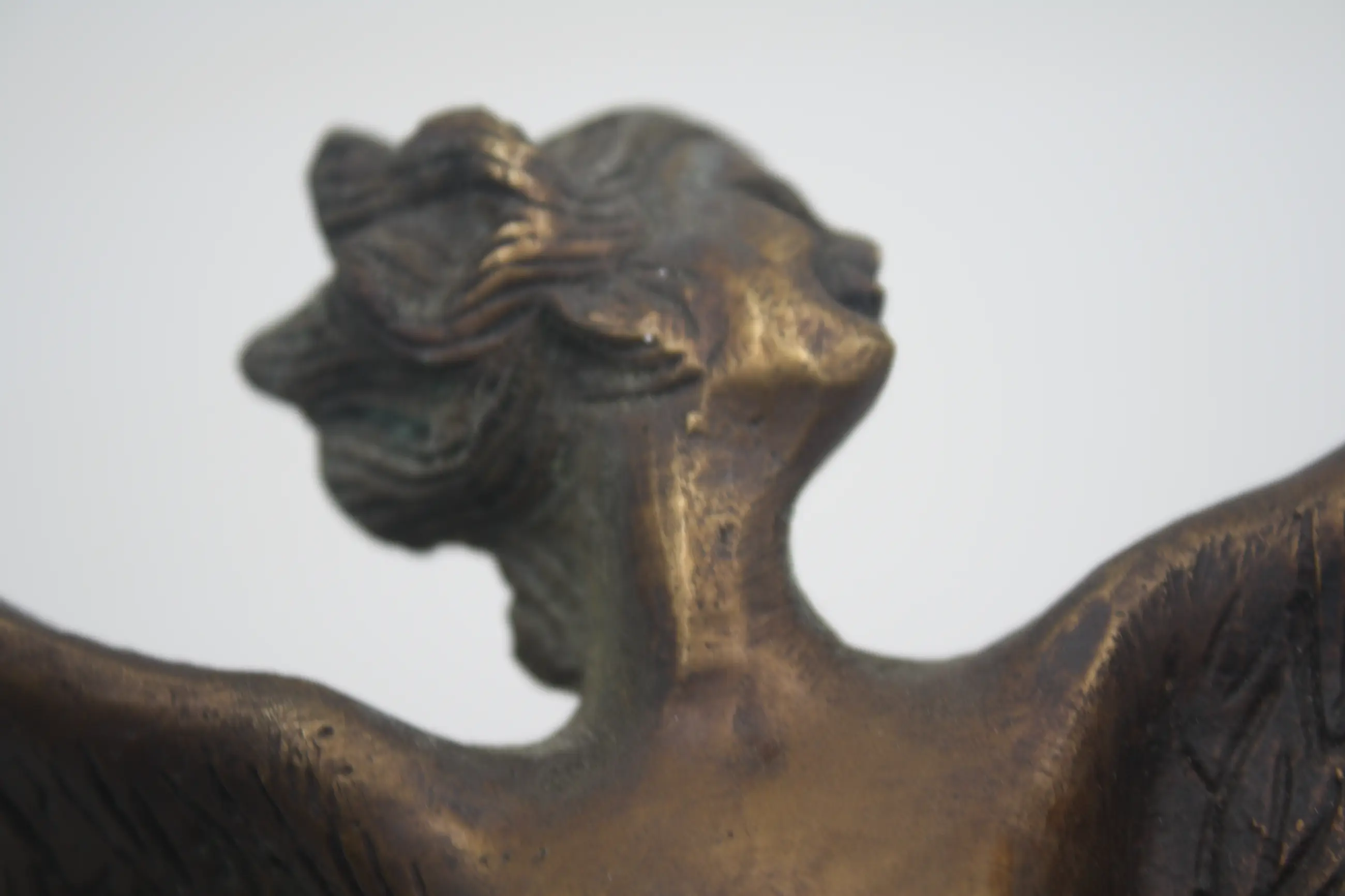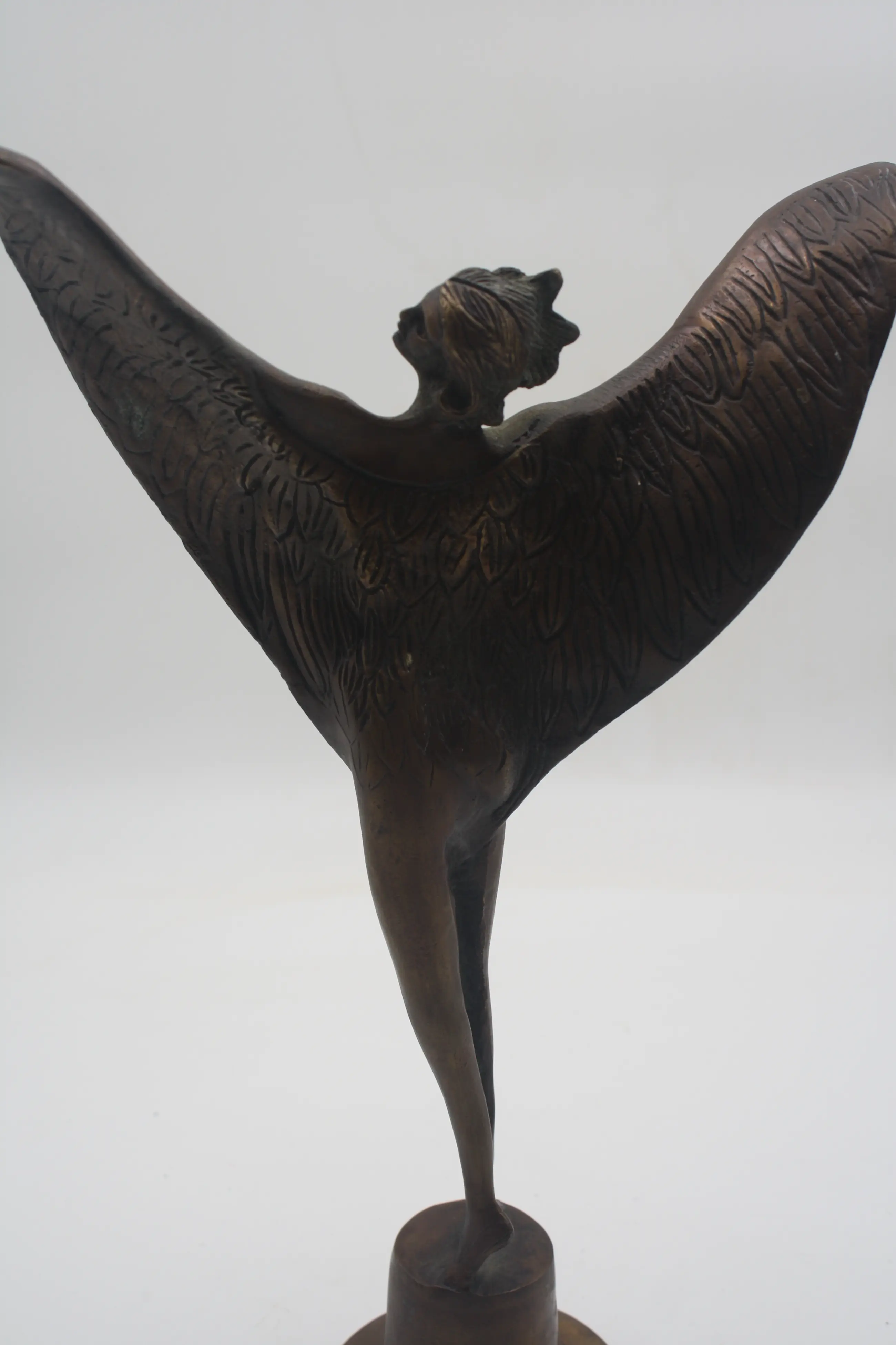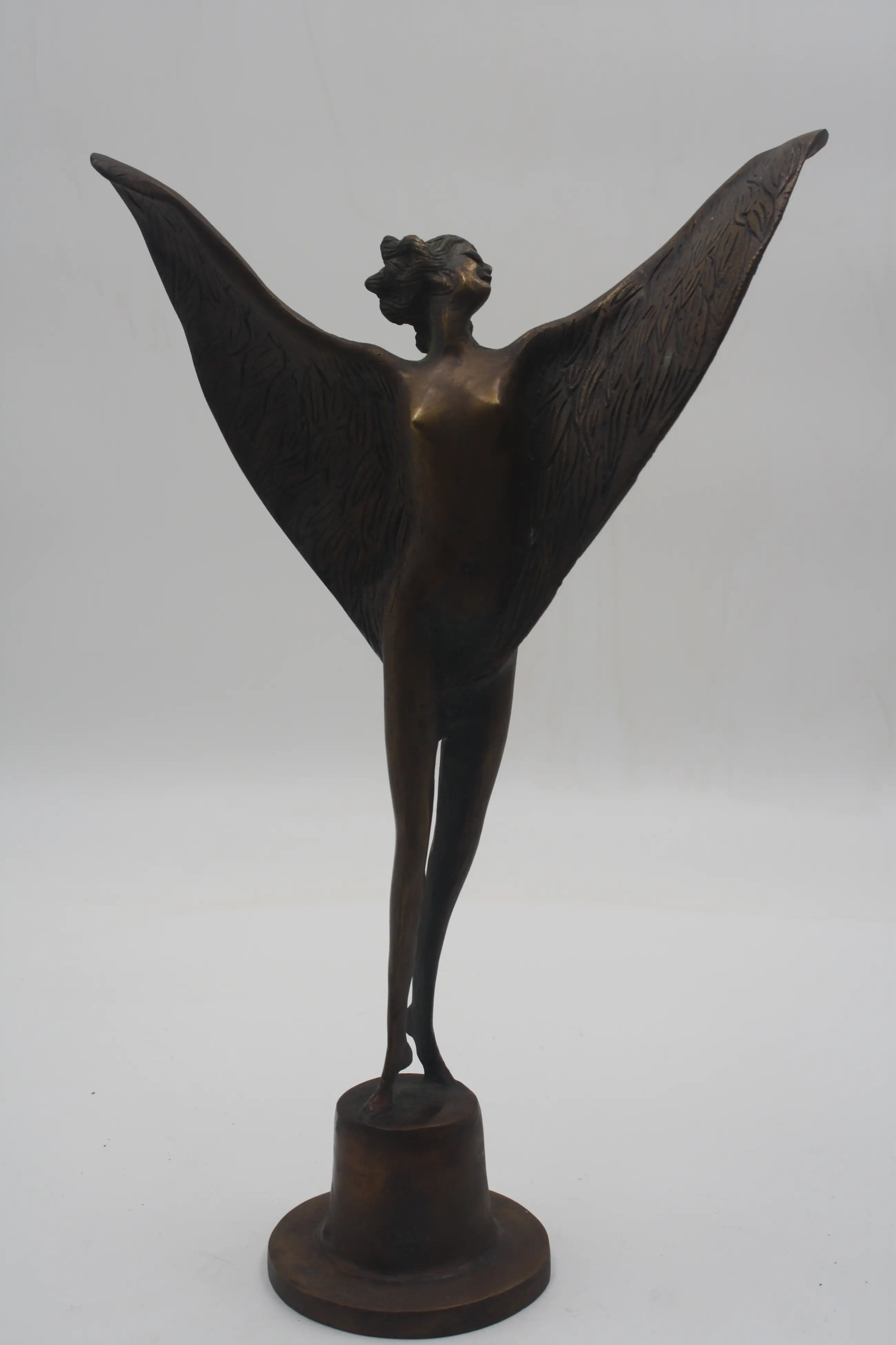 Prachtig Groot Zwaar Antiek Zeldzaam Bronzen Beeld van een Bescherm Engel in de vorm van Spirit Of Extace.