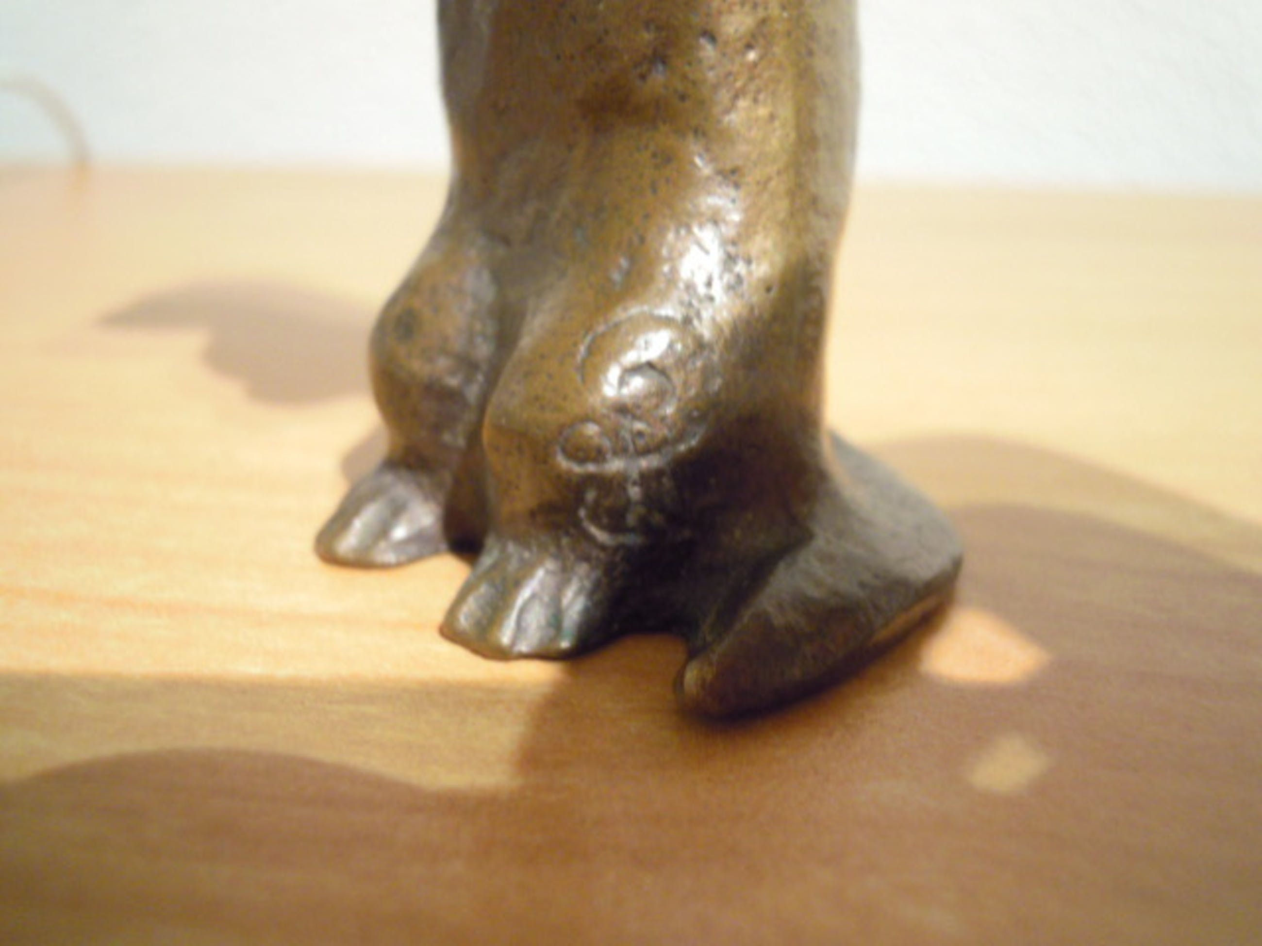 Het beeldje is gesigneerd op de rechter poot.- zie foto.