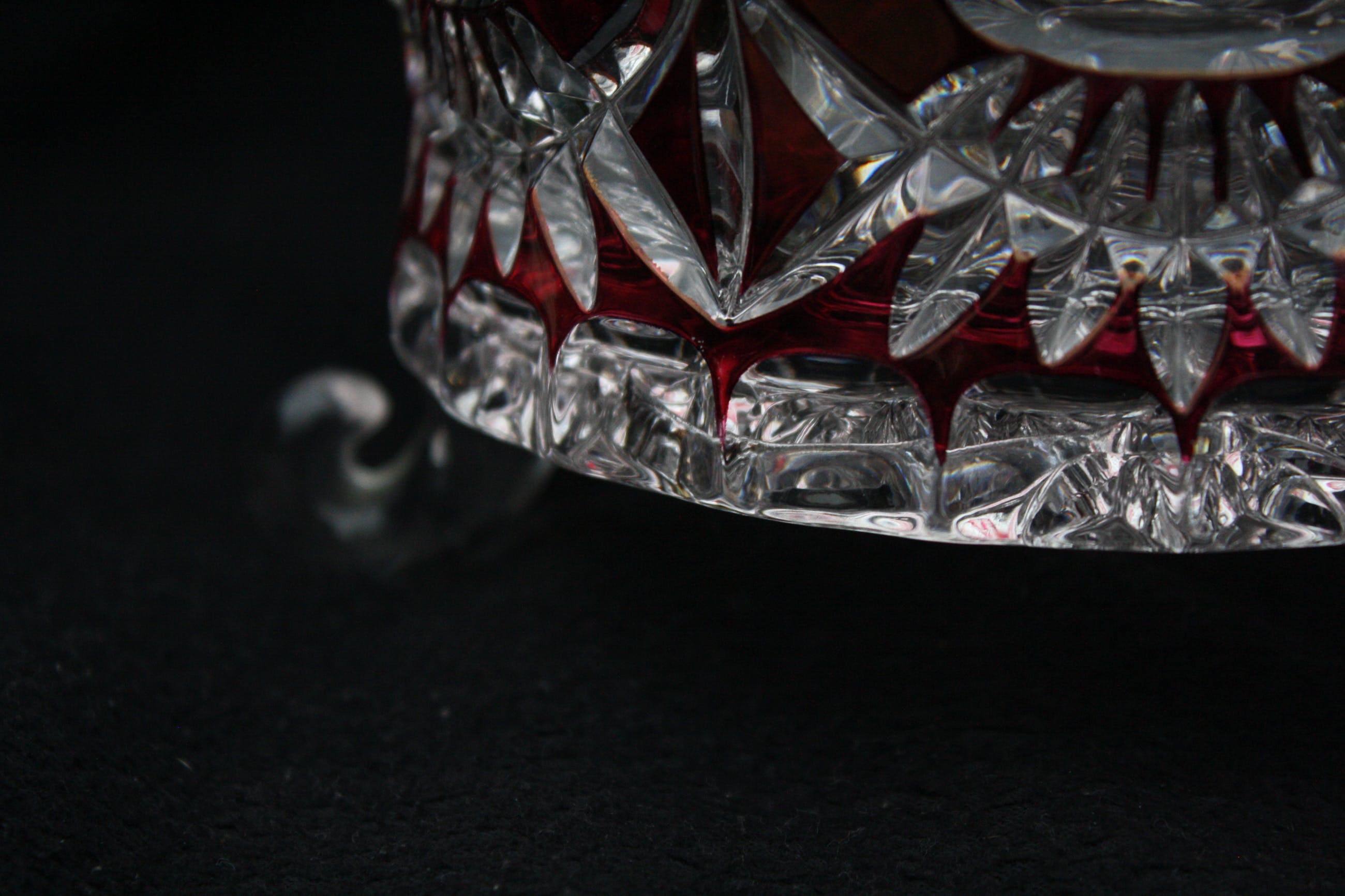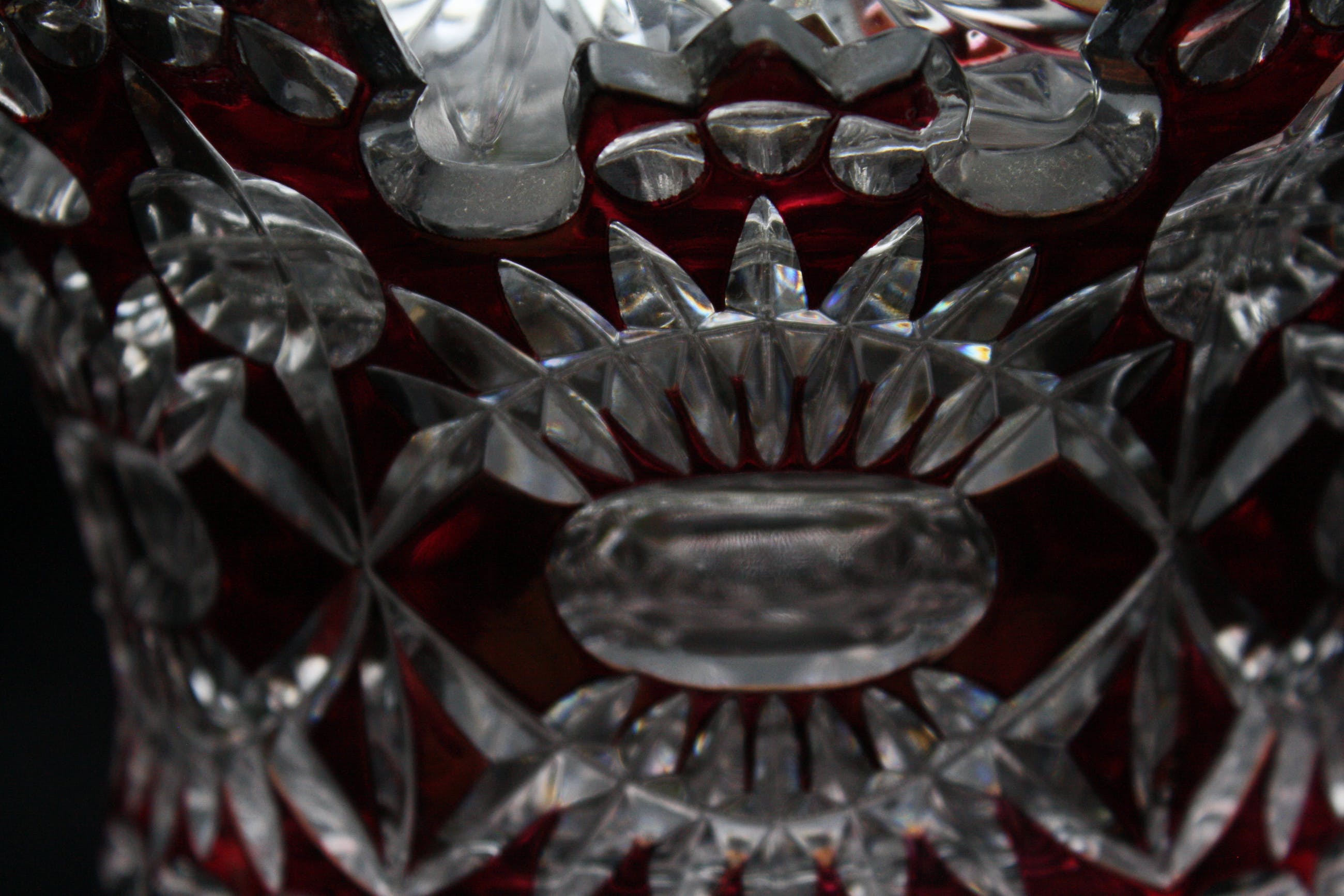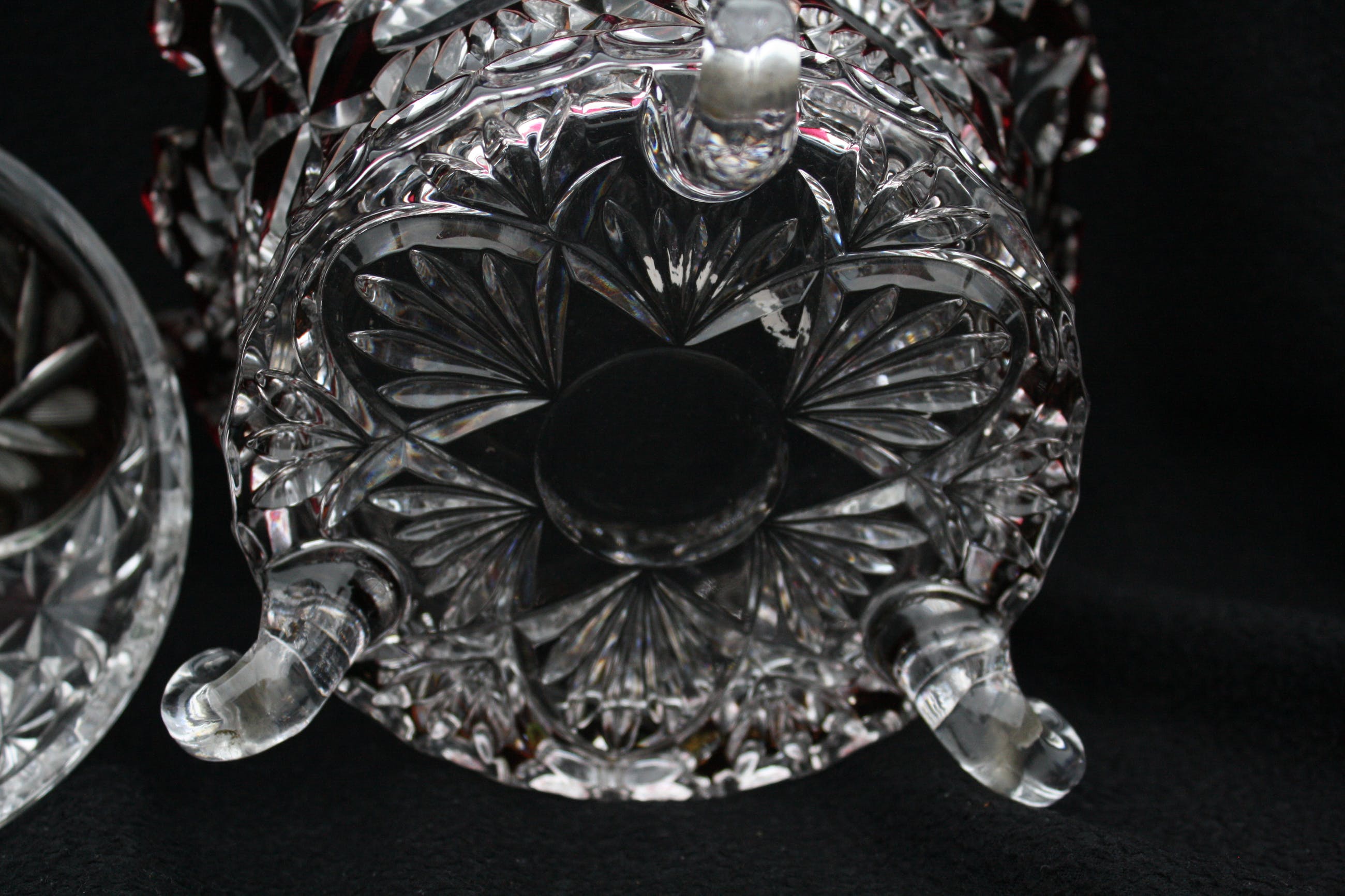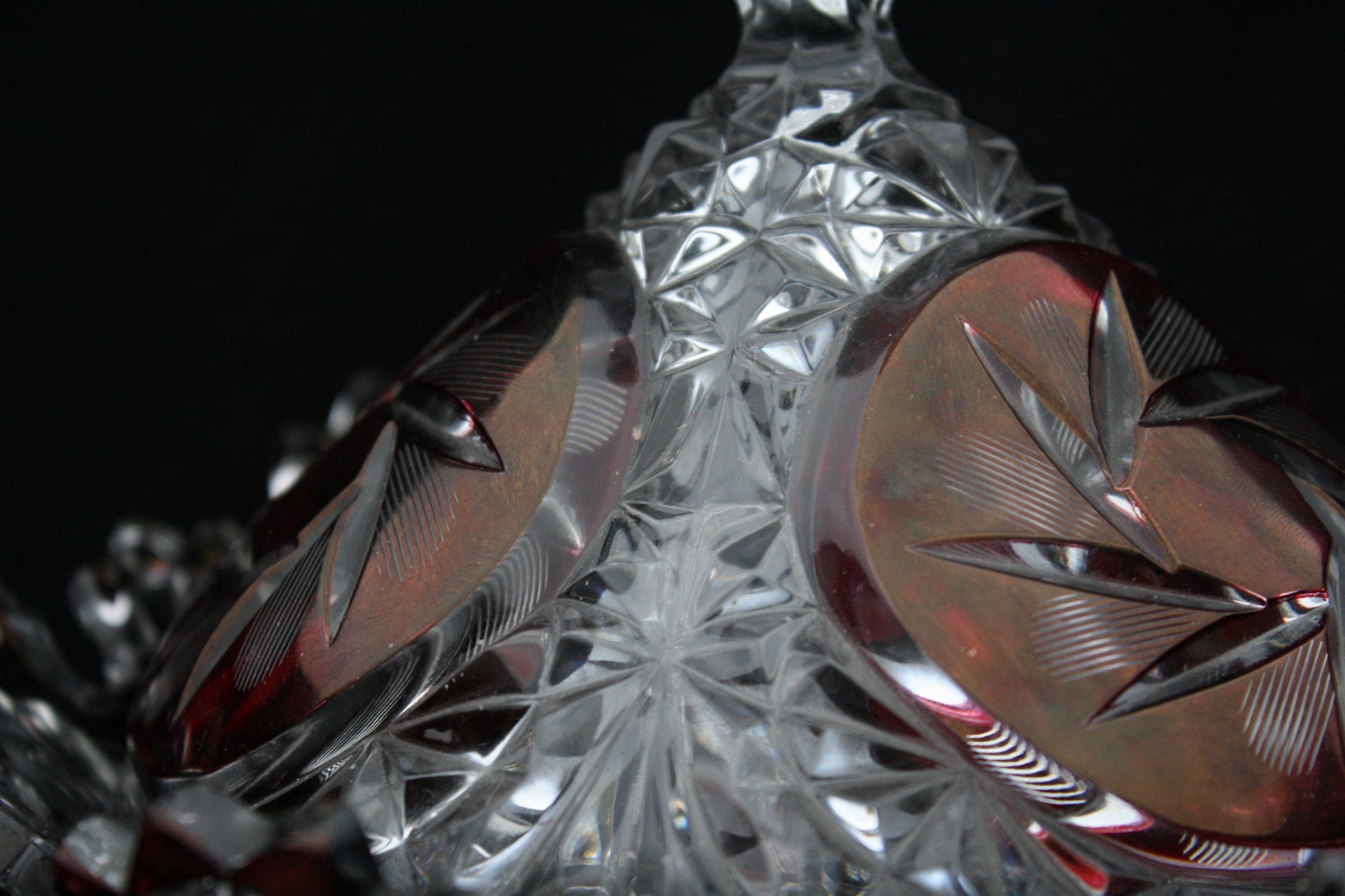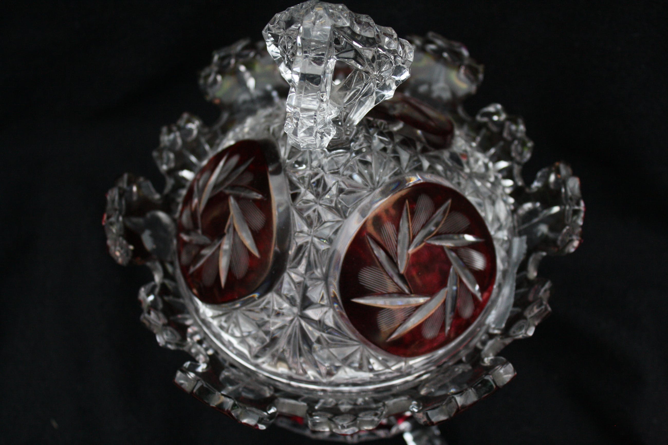 TSJECHISCHE KUNSTGLAS - Een Grote Boheemse Kristalen cranberry gesneden tot doorzichtige Bonbonniere volledig handgeblazen,een pronkstuk,en is al jarenlang in de Familie. (20e eeuw) Verkeerd in perfecte conditie geen scheuren of chips. Bonbonniere Afmeting Hoog 27cm en Breed 23cm. Gewicht is 2400 Gram.