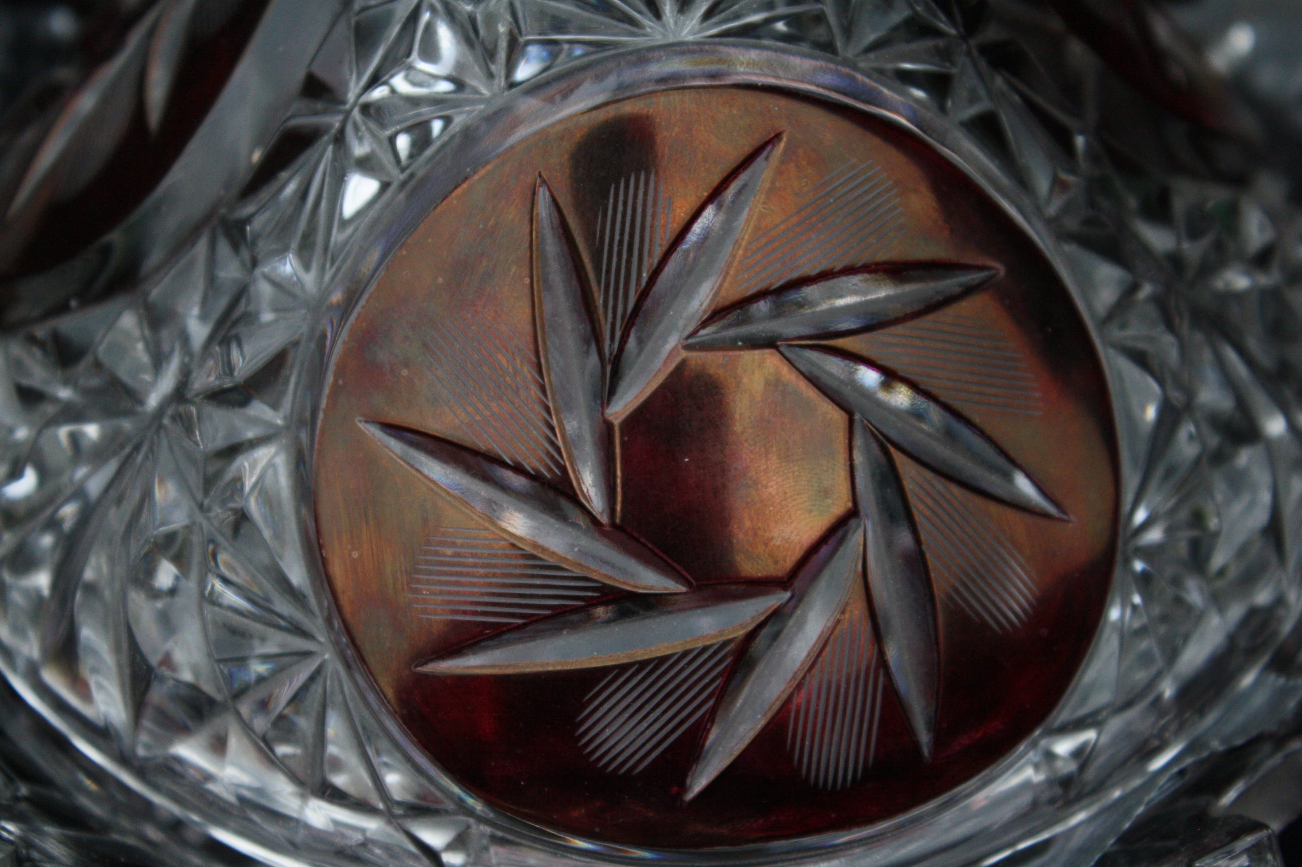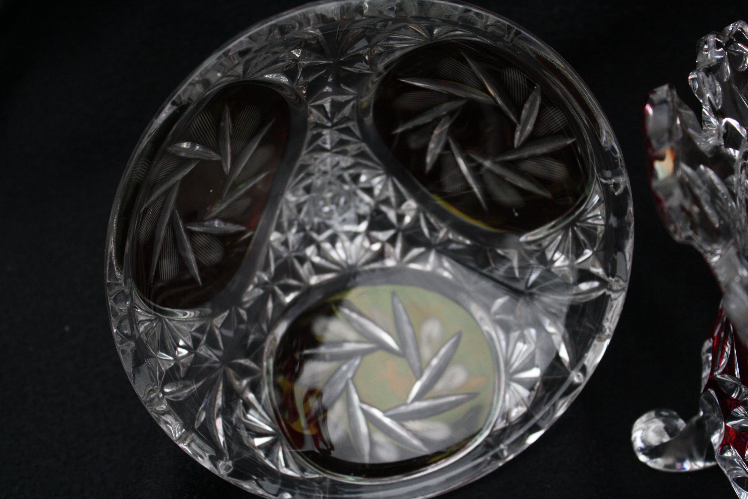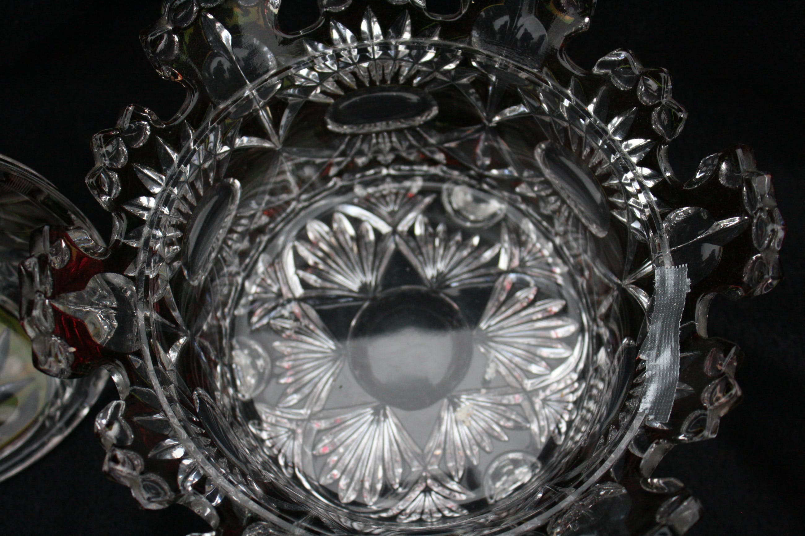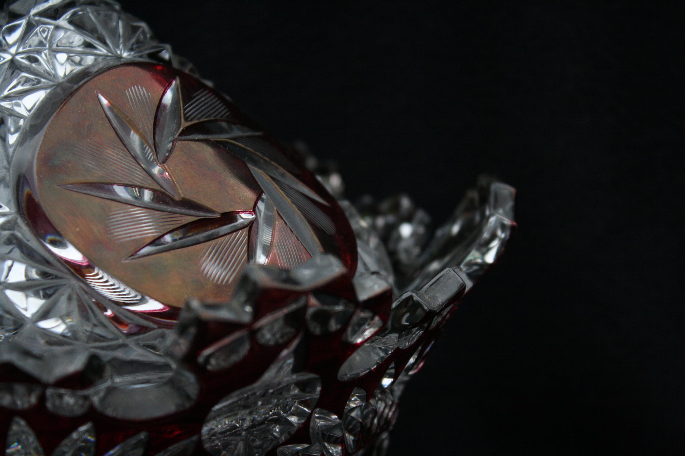 TSJECHISCHE KUNSTGLAS - Een Grote Boheemse Kristalen cranberry gesneden tot doorzichtige Bonbonniere volledig handgeblazen,een pronkstuk,en is al jarenlang in de Familie. (20e eeuw) Verkeerd in perfecte conditie geen scheuren of chips. Bonbonniere Afmeting Hoog 27cm en Breed 23cm. Gewicht is 2400 Gram.