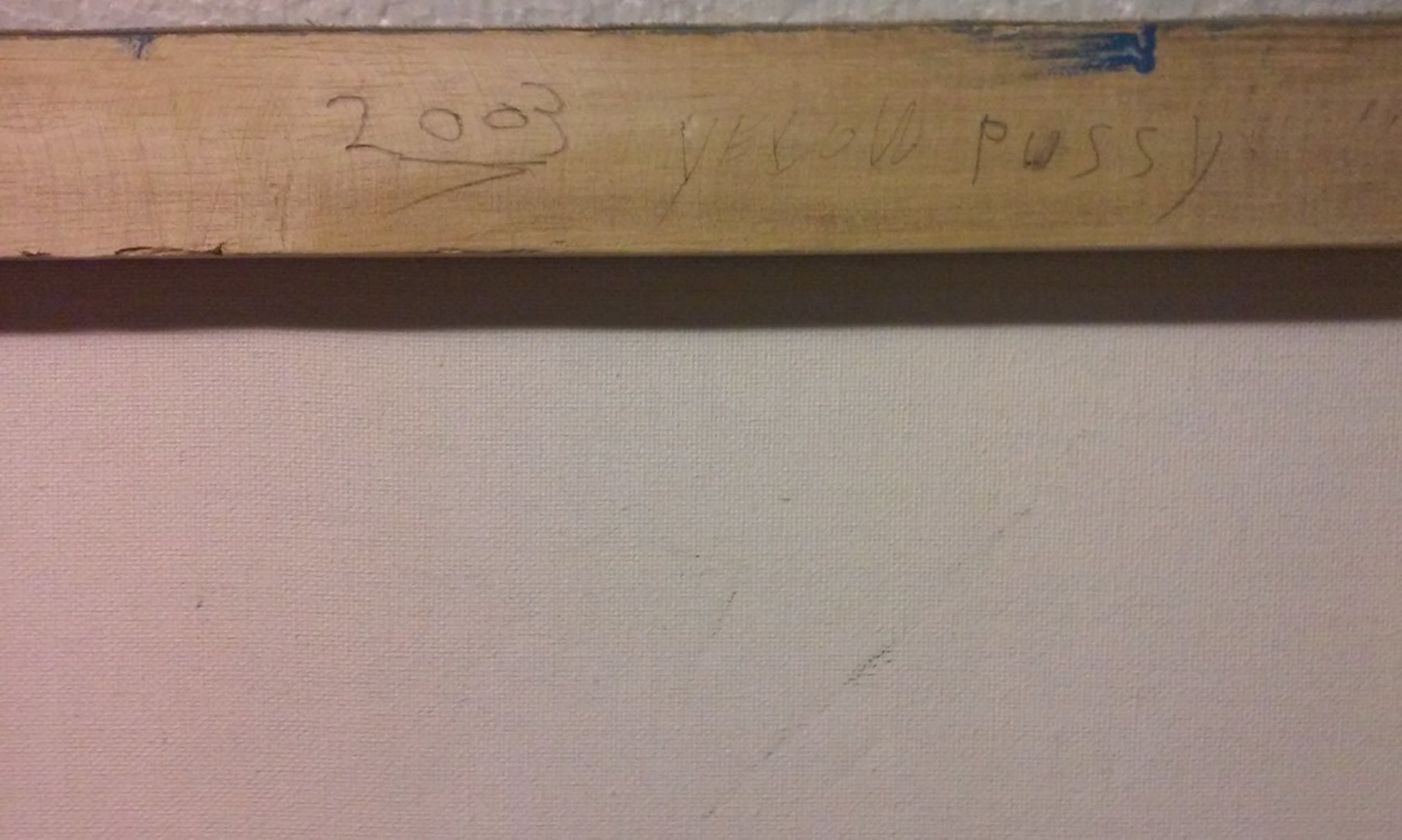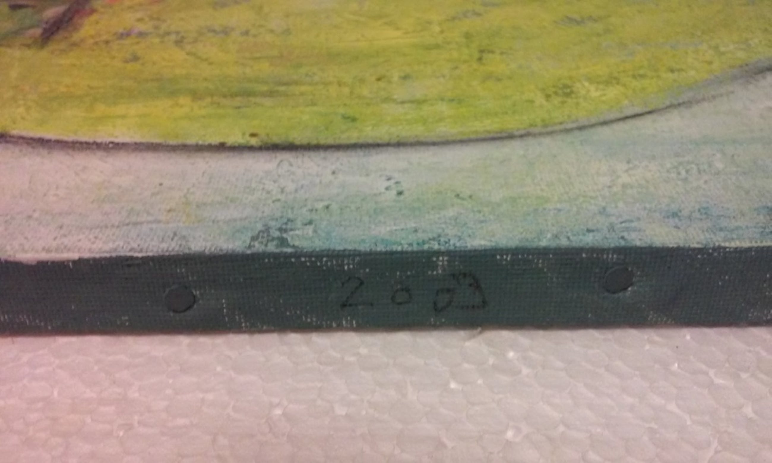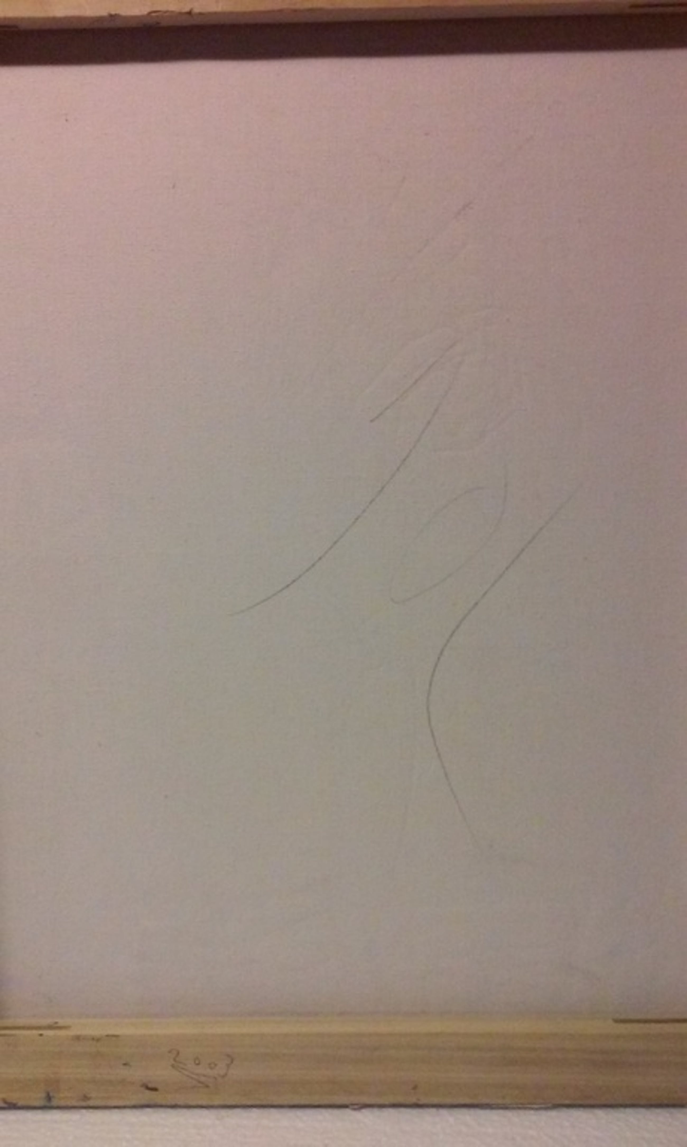 onbekende kunstenaar acryl op doek achterkant onleesbaar signatuur