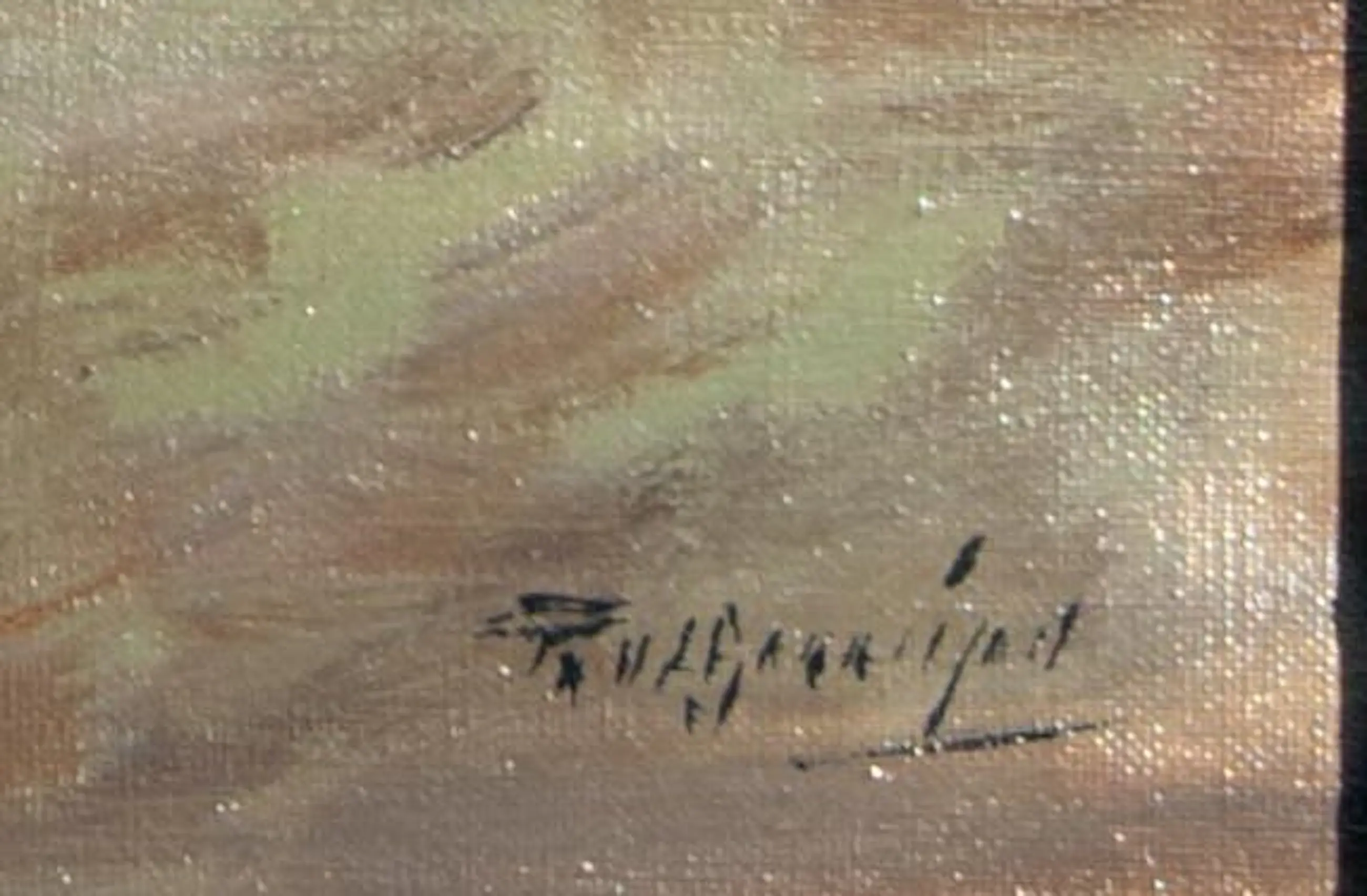 Het schilderij is gesigneerd, maar de handtekening is onvoldoende leesbaar om tot een definitieve toewijzing van de kunstenaar te komen. De lijst en achterzijde zijn origineel. Op basis van de voorstelling, de lijst en de constructie aan de achterzijde (het spieraam met spieën en de 'overhoekse' lijst) kan worden afgeleid dat het het schilderij rond het midden van de 20e eeuw (ca. 1930-1960) gemaakt is.