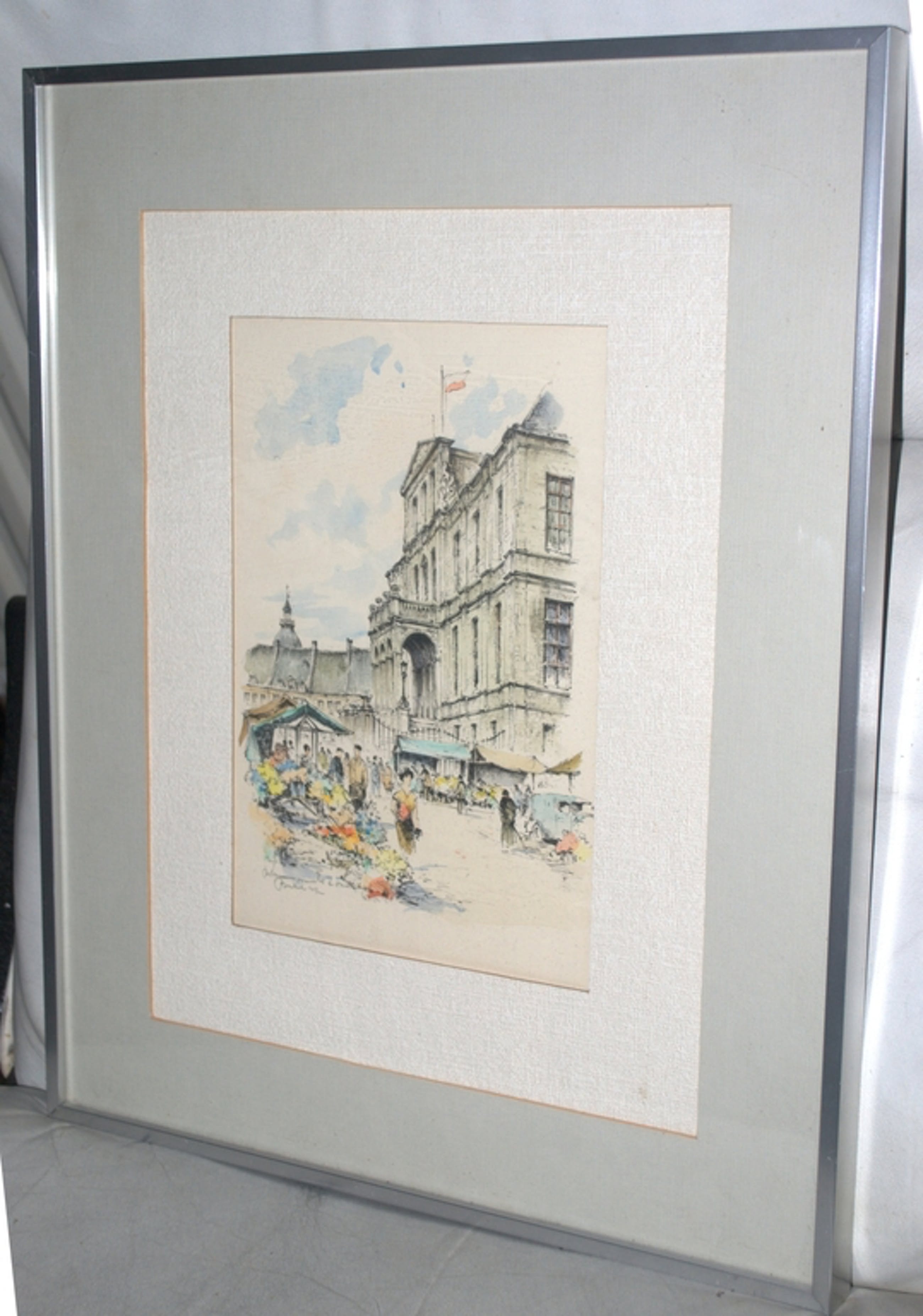 Litho met aquarel uit 1942. Maat ca. 28x18 cm, achter 2 passepartouts en glas, in een mooie alu lijst, 50x40 cm.Potloodgesigneerd l.o.