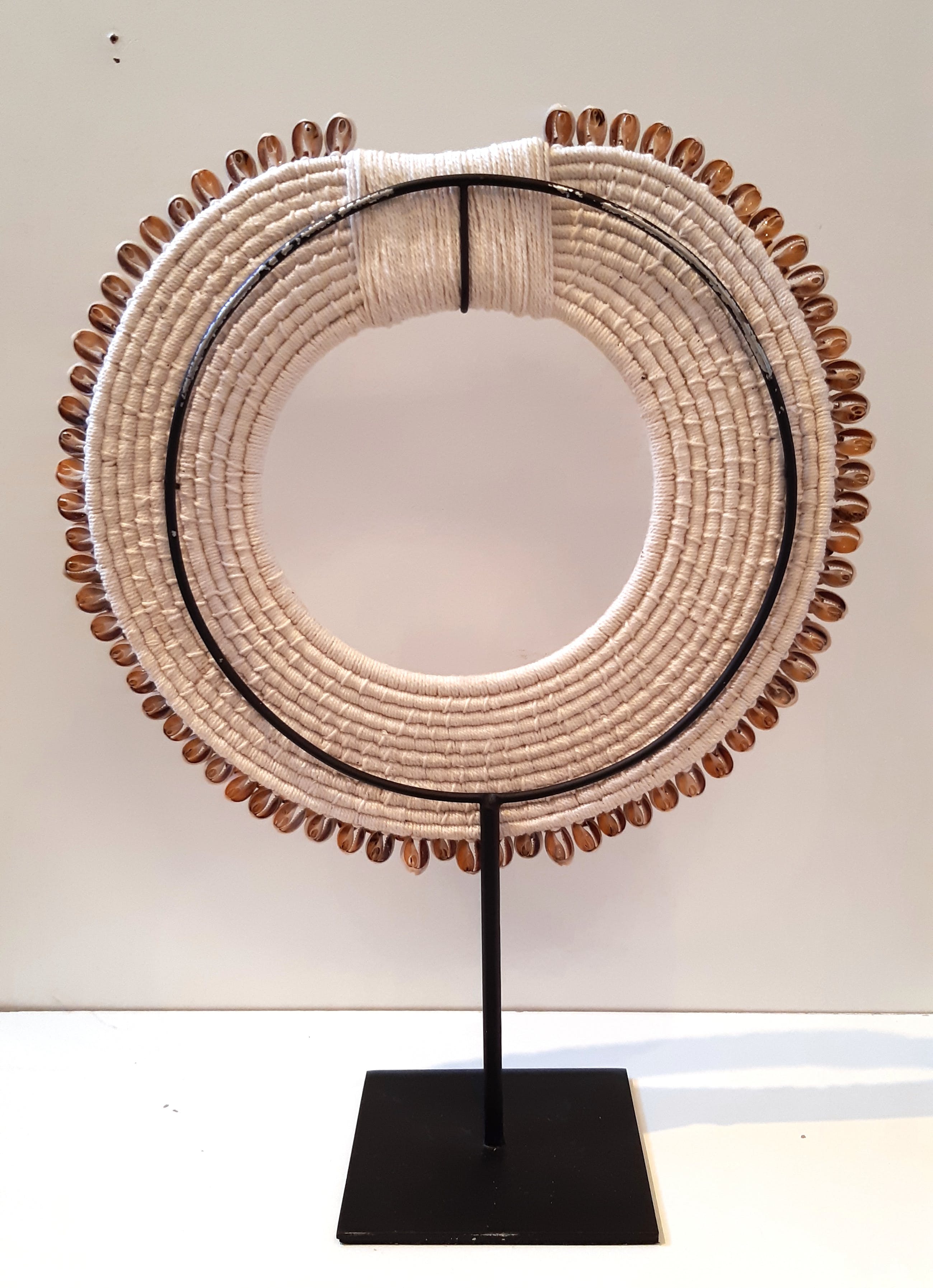 Schelpenketting van de Tolai stam, Papua Nieuw Guinea, gemaakt van nassa schelpen. Wordt geleverd incl houder