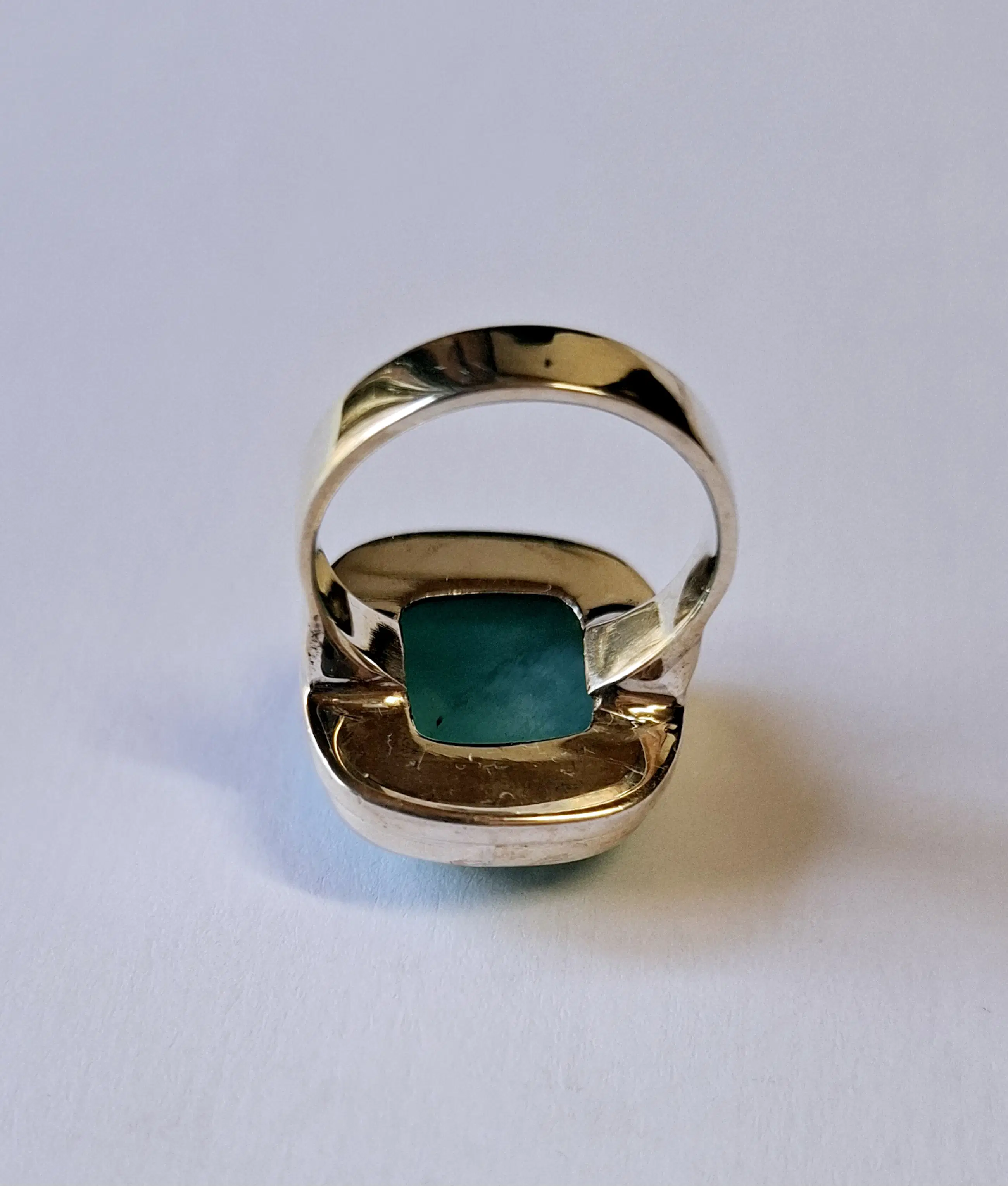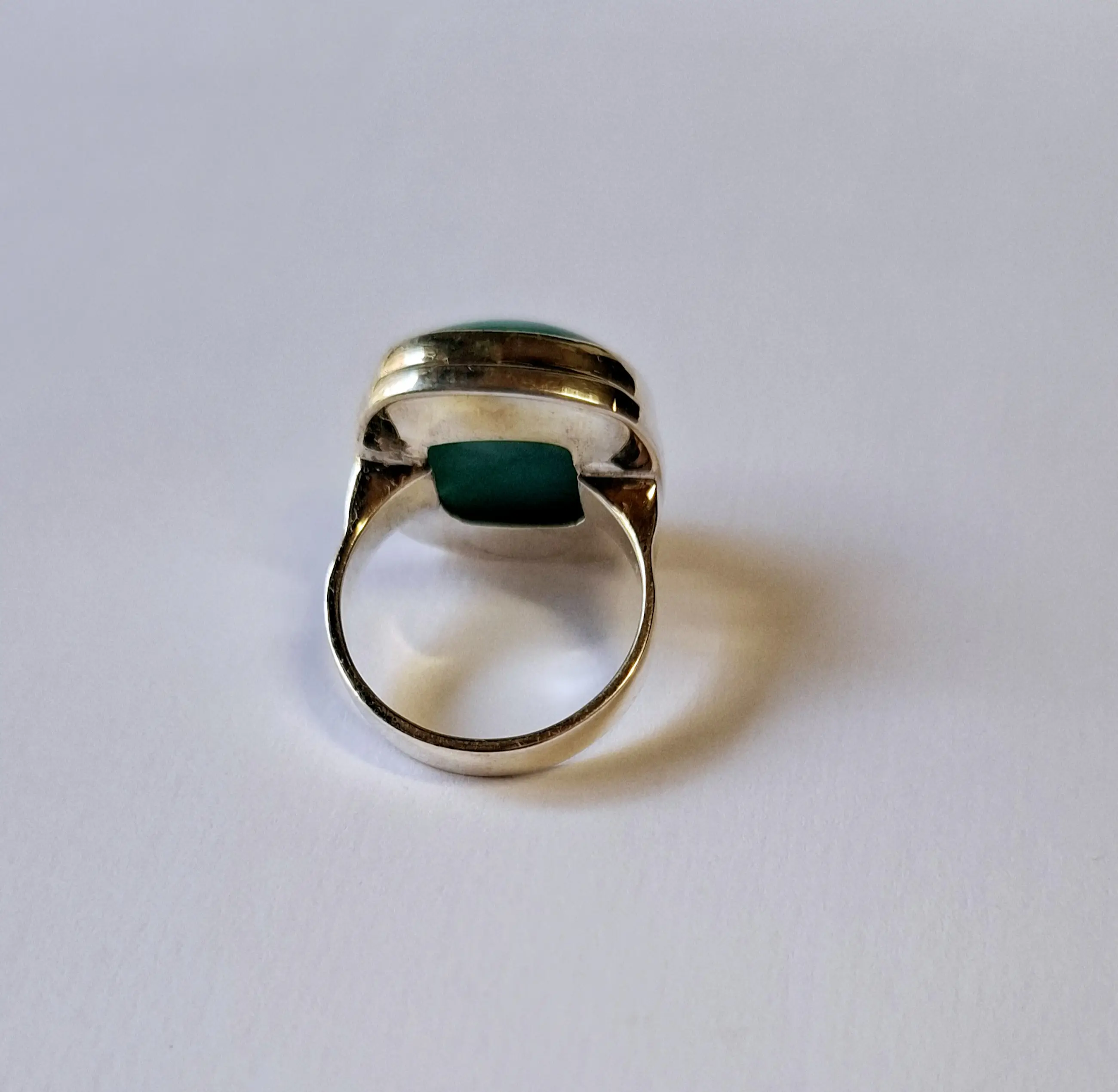 Nieuw Vintage handgemaakte sterlingzilveren turkooizen ring, gepolijste steen groen turkoois ringen, maat 19. Deze rechthoekige ring met turquoise heeft in doorsnede De maten van 2 x 2 cm. Gemaakt in 1980 . Nog nooit gedragen eigenlijk is hij nog nieuw voor een ring uit 1980. Heeft altijd in een vitrine bak gelegen. Komt uit een prive Collectie . Word goed verpakt en verzekerd verzonden met track en trace .
